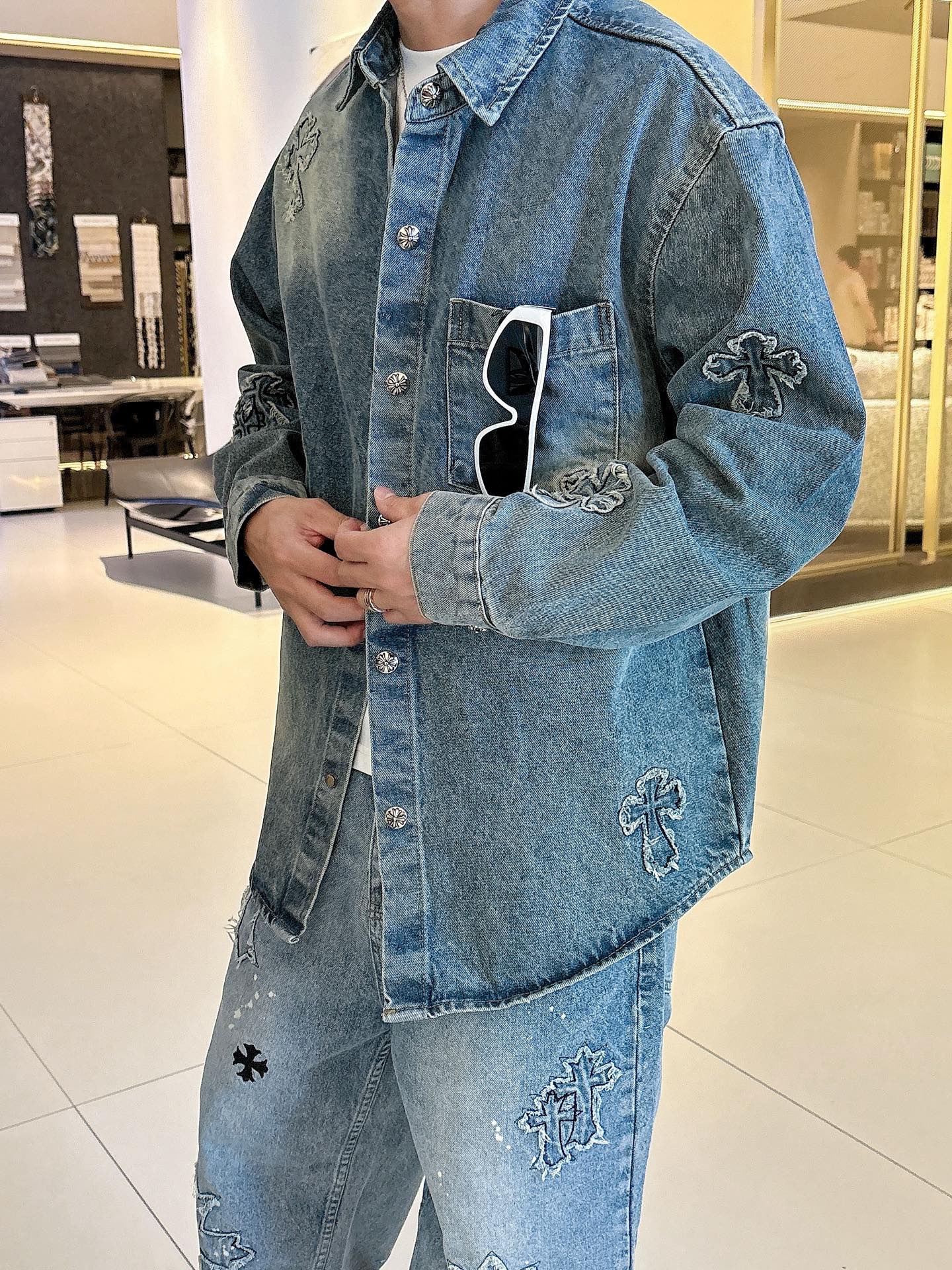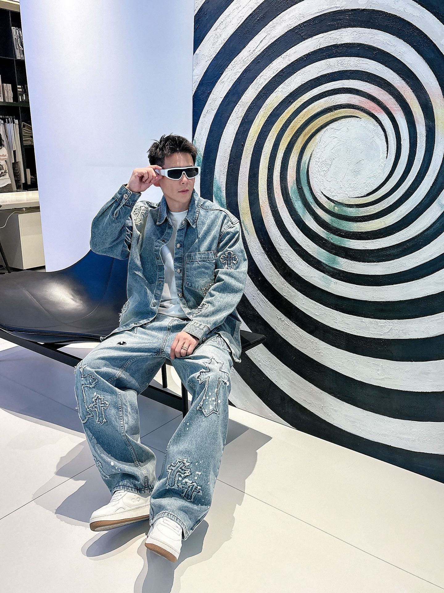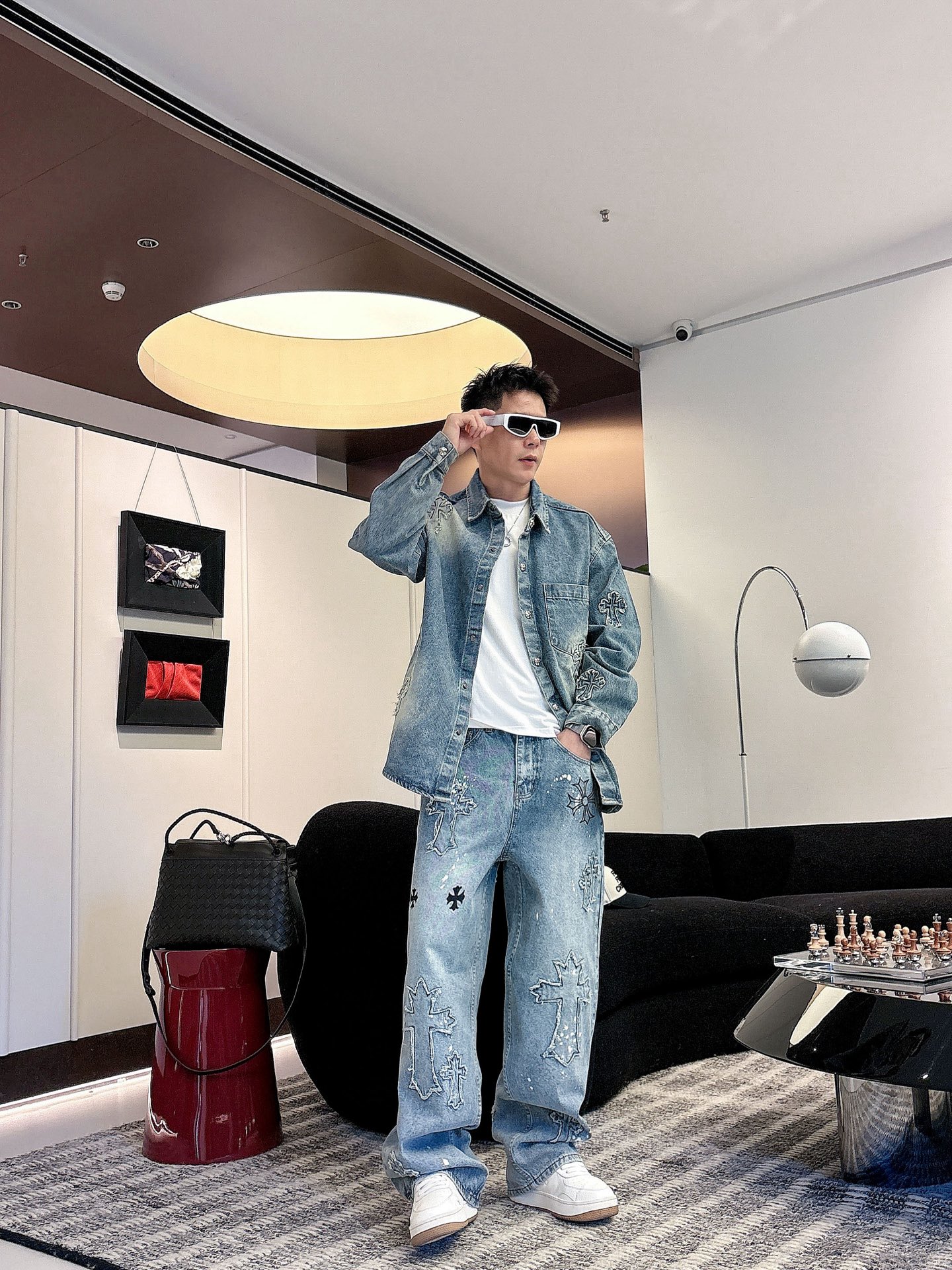 这款衣服是AAAAA 1:1 质量 (非常棒). 使用了和原版一模一样的材料. 商标部分也保持了和克罗心/Chrome Hearts一样. 图片拍摄是实物衣服拍摄, 您所收到的实物保证和我们图片一模一样.
