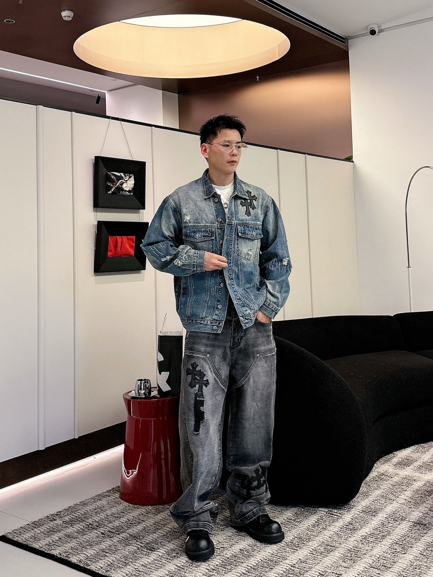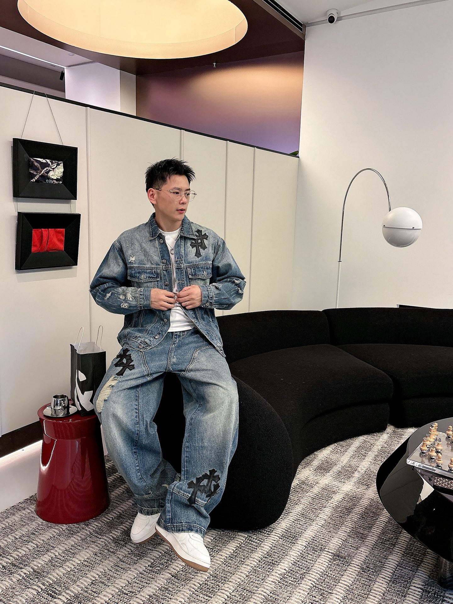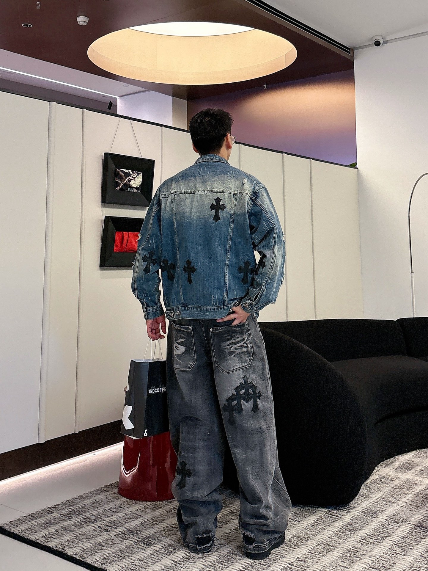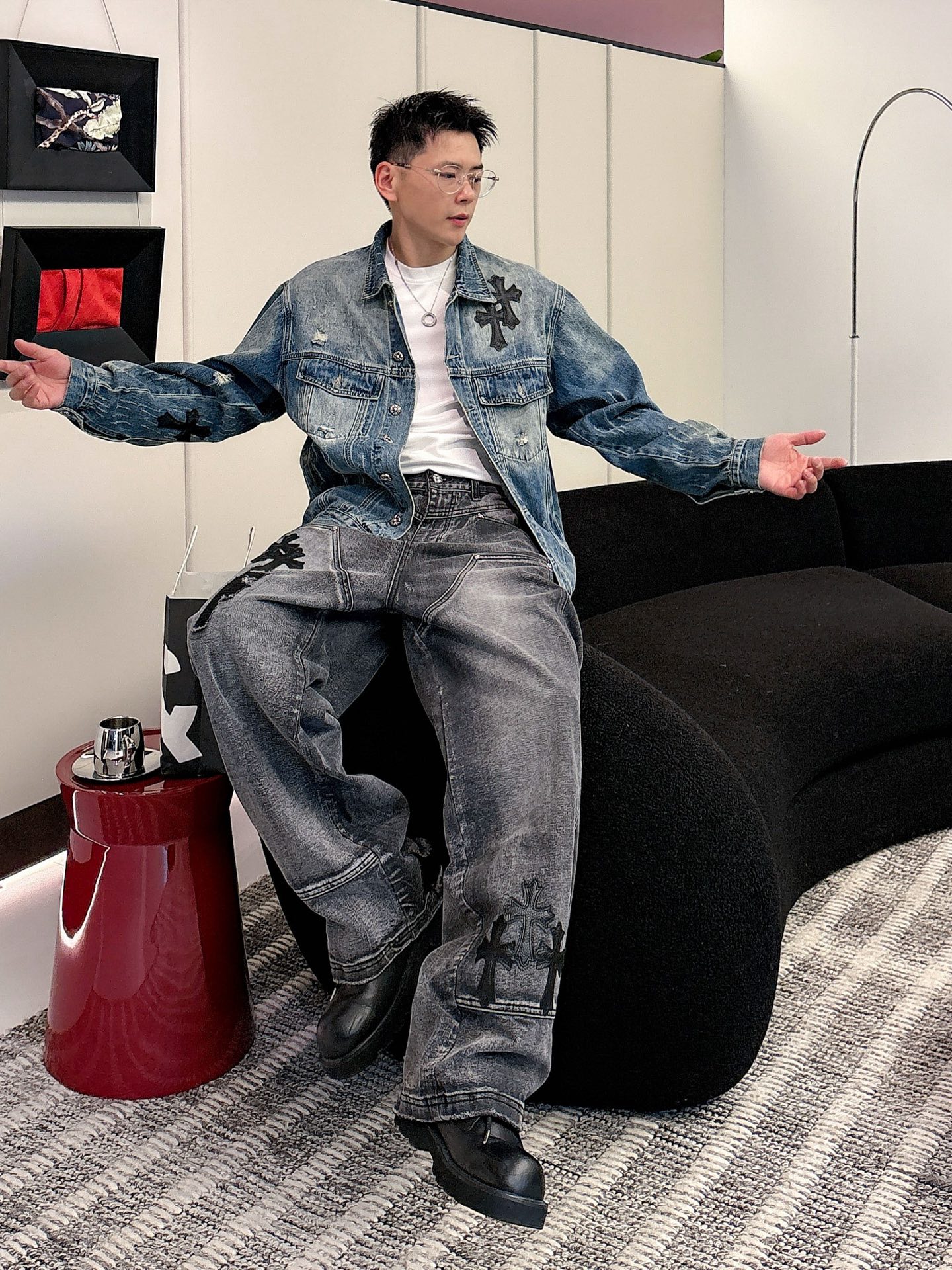 这款衣服是AAAAA 1:1 质量 (非常棒). 使用了和原版一模一样的材料. 商标部分也保持了和克罗心/Chrome Hearts一样. 图片拍摄是实物衣服拍摄, 您所收到的实物保证和我们图片一模一样.
