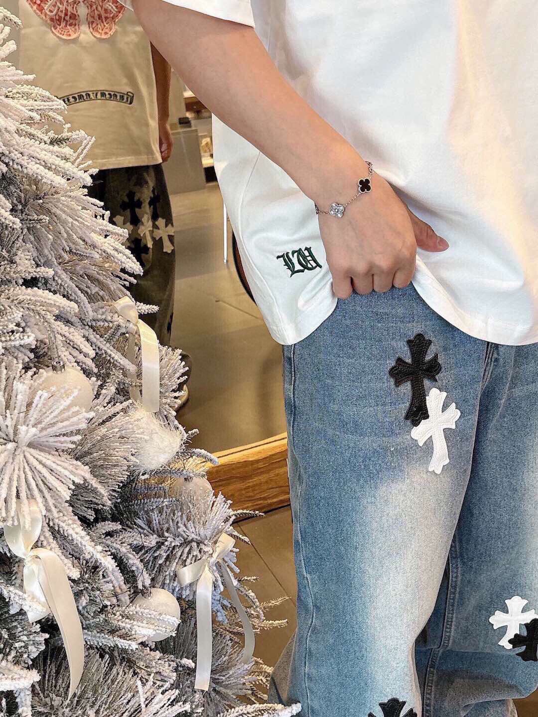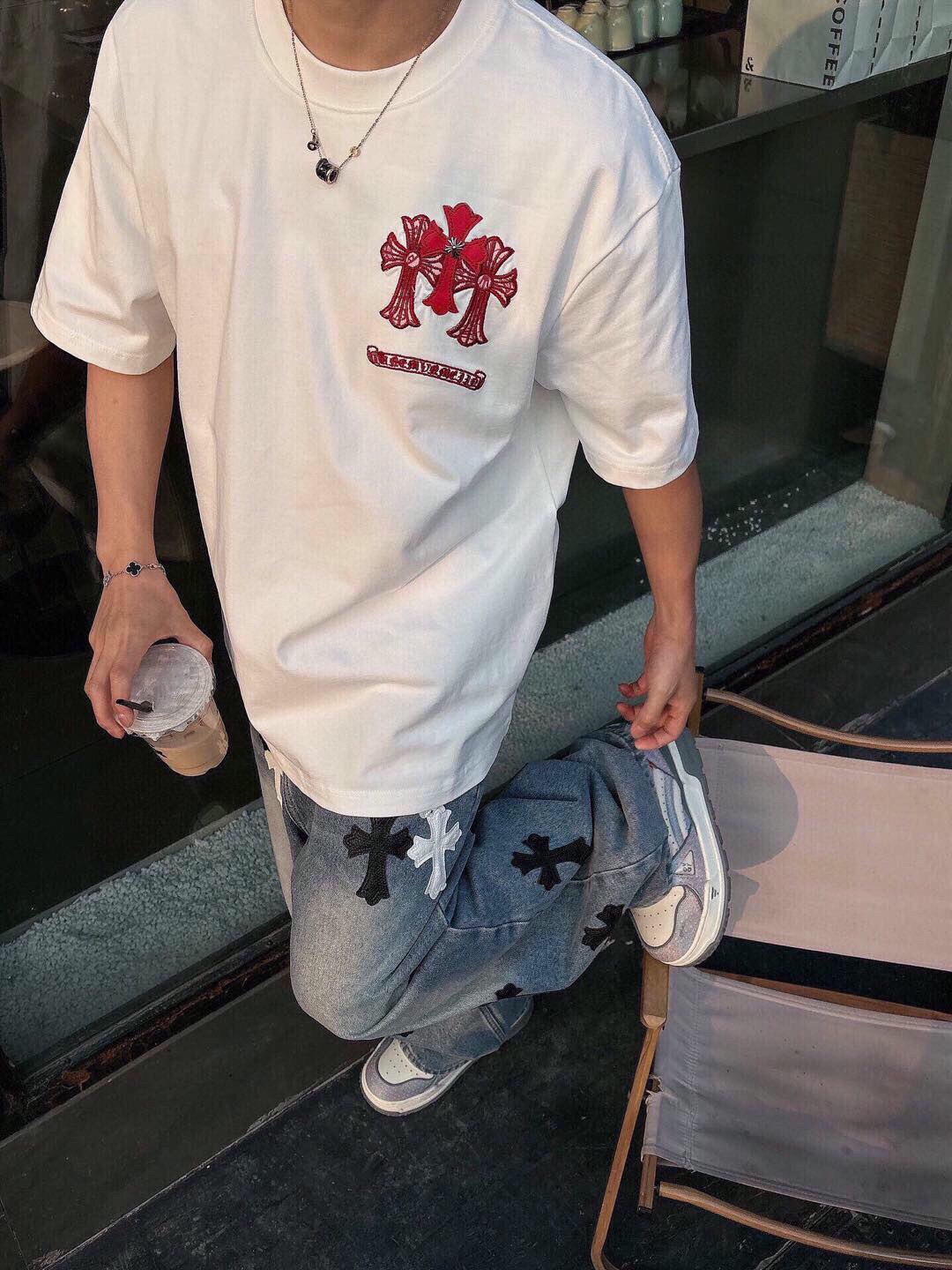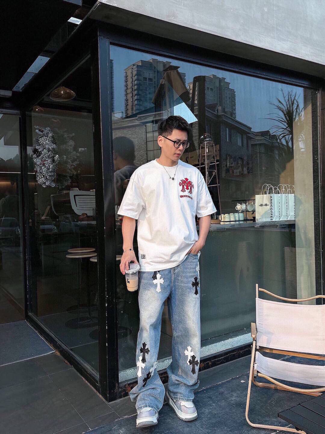 这款衣服是AAAAA 1:1 质量 (非常棒). 使用了和原版一模一样的材料. 商标部分也保持了和克罗心/Chrome Hearts一样. 图片拍摄是实物衣服拍摄, 您所收到的实物保证和我们图片一模一样.