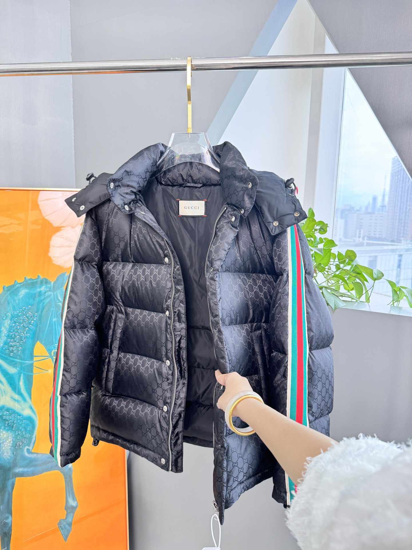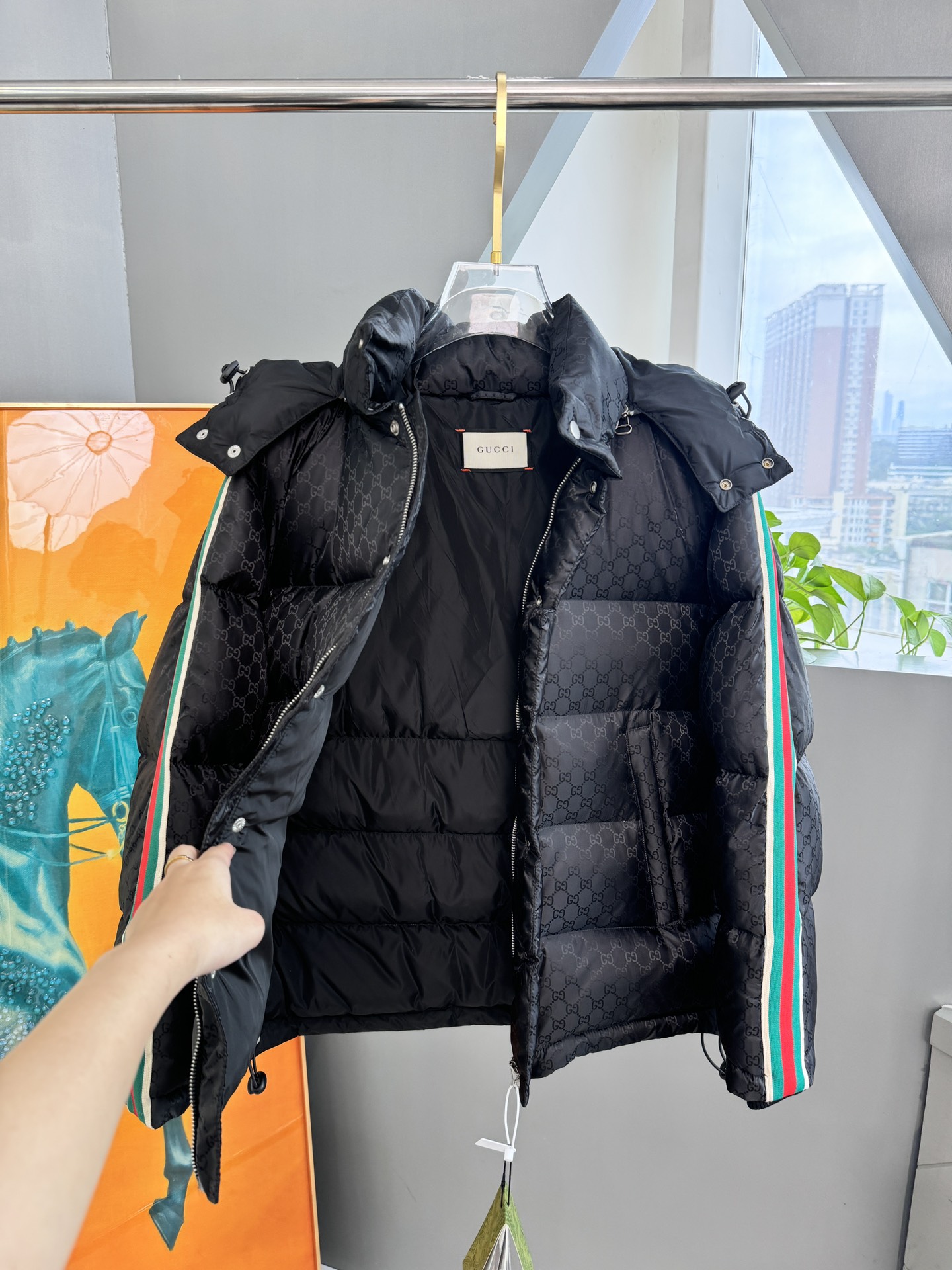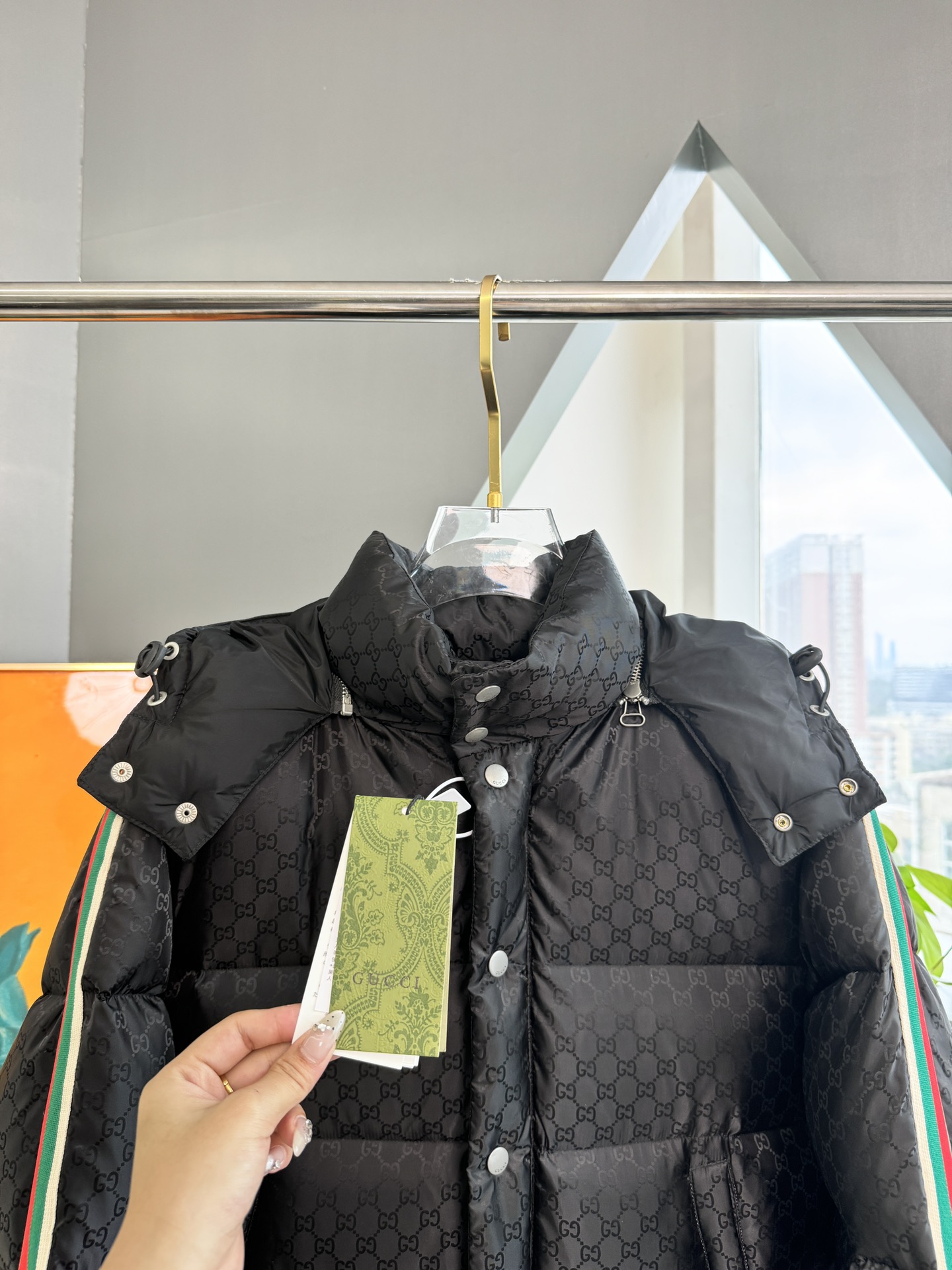 这款衣服是AAAAA 1:1 质量 (非常棒). 使用了和原版一模一样的材料. 商标部分也保持了和古奇/Gucci一样. 图片拍摄是实物衣服拍摄, 您所收到的实物保证和我们图片一模一样.
