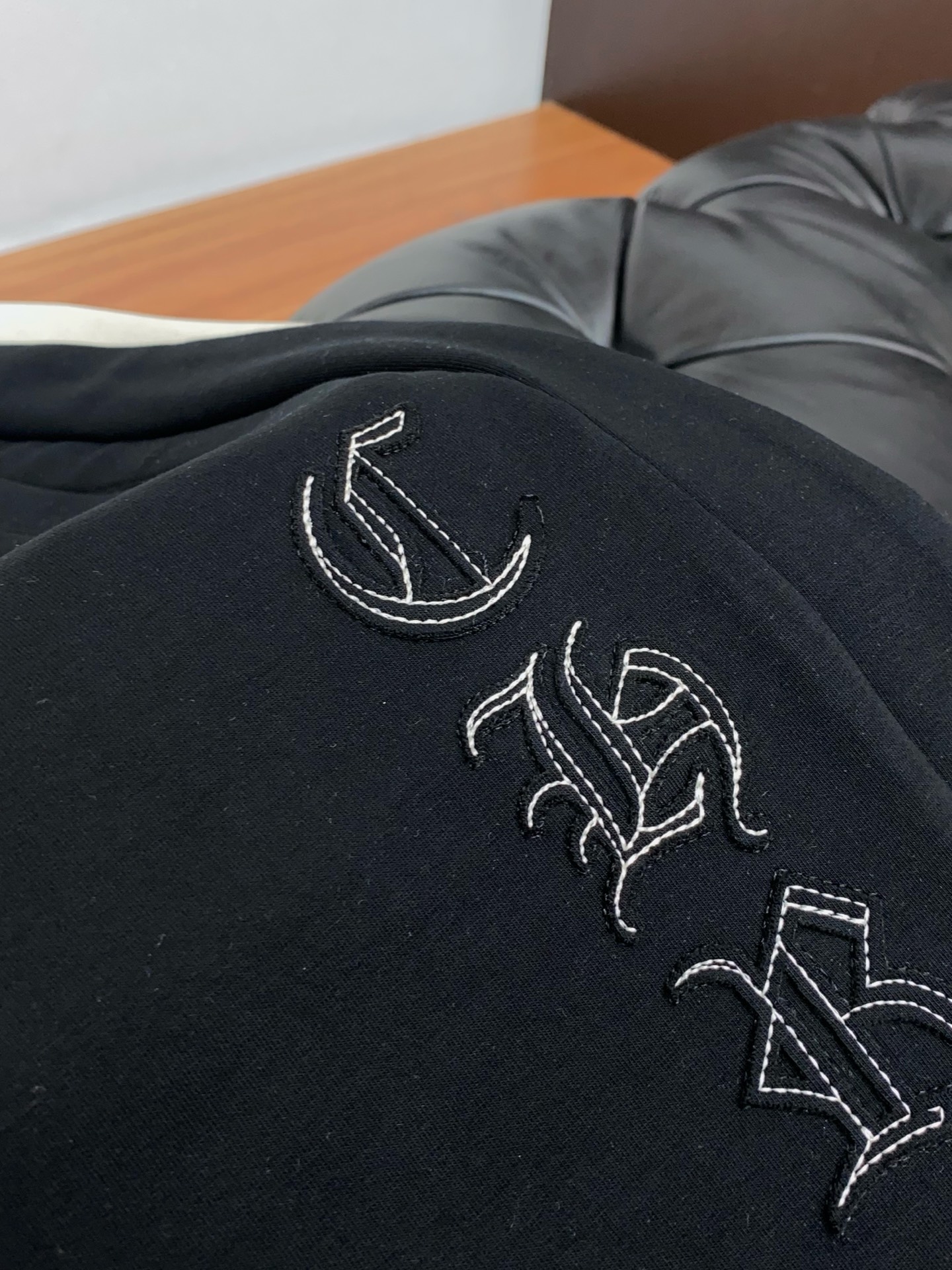 这款衣服是AAAAA 1:1 质量 (非常棒). 使用了和原版一模一样的材料. 商标部分也保持了和克罗心/Chrome Hearts一样. 图片拍摄是实物衣服拍摄, 您所收到的实物保证和我们图片一模一样.