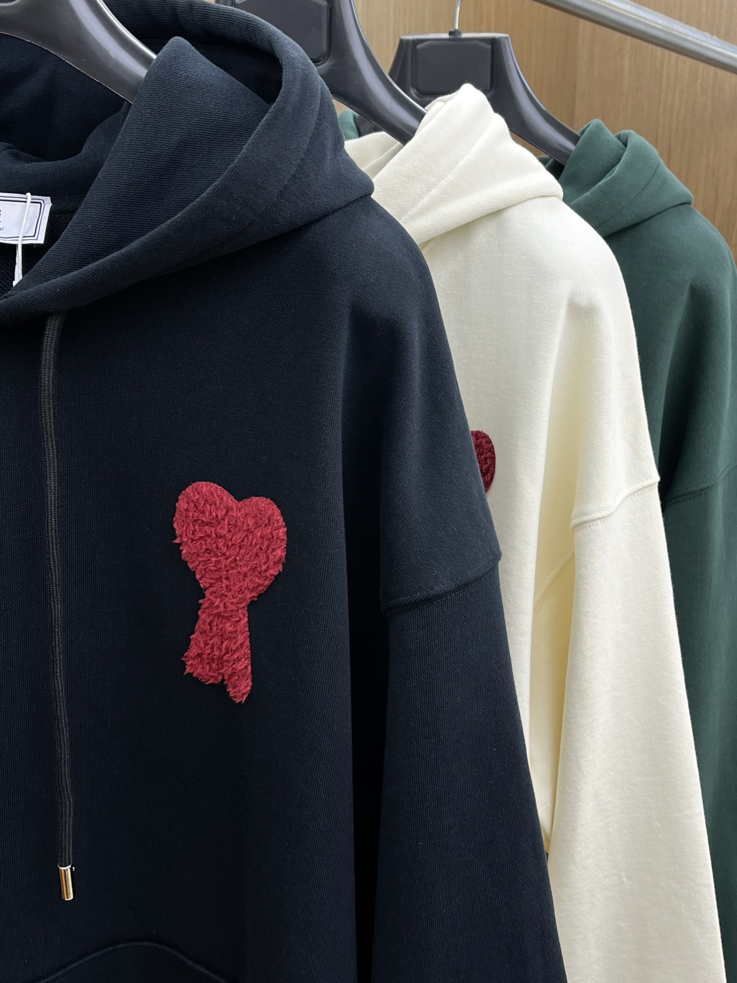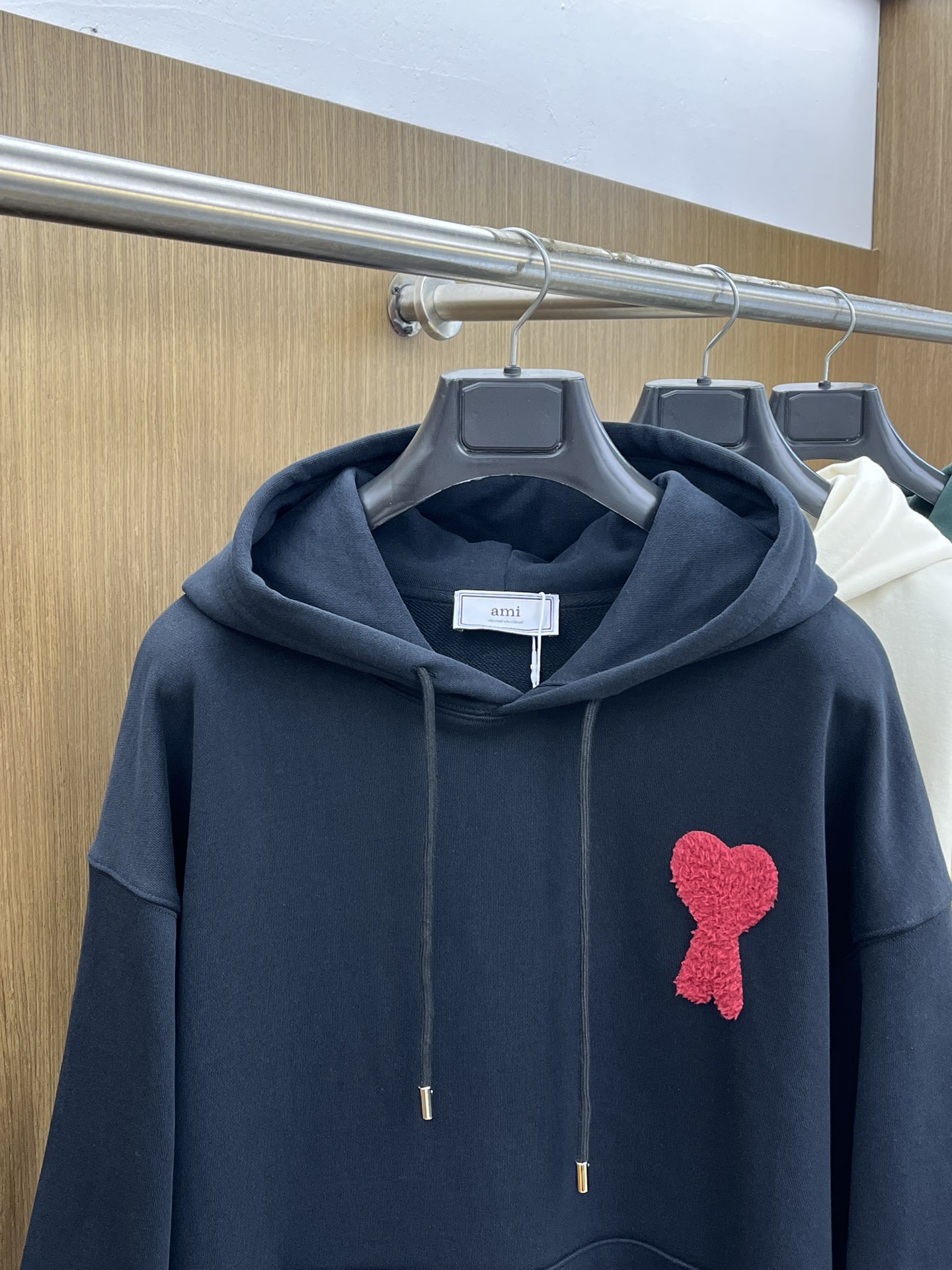 这款衣服是AAAAA 1:1 质量 (非常棒). 使用了和原版一模一样的材料. 商标部分也保持了和Ami一样. 图片拍摄是实物衣服拍摄, 您所收到的实物保证和我们图片一模一样.