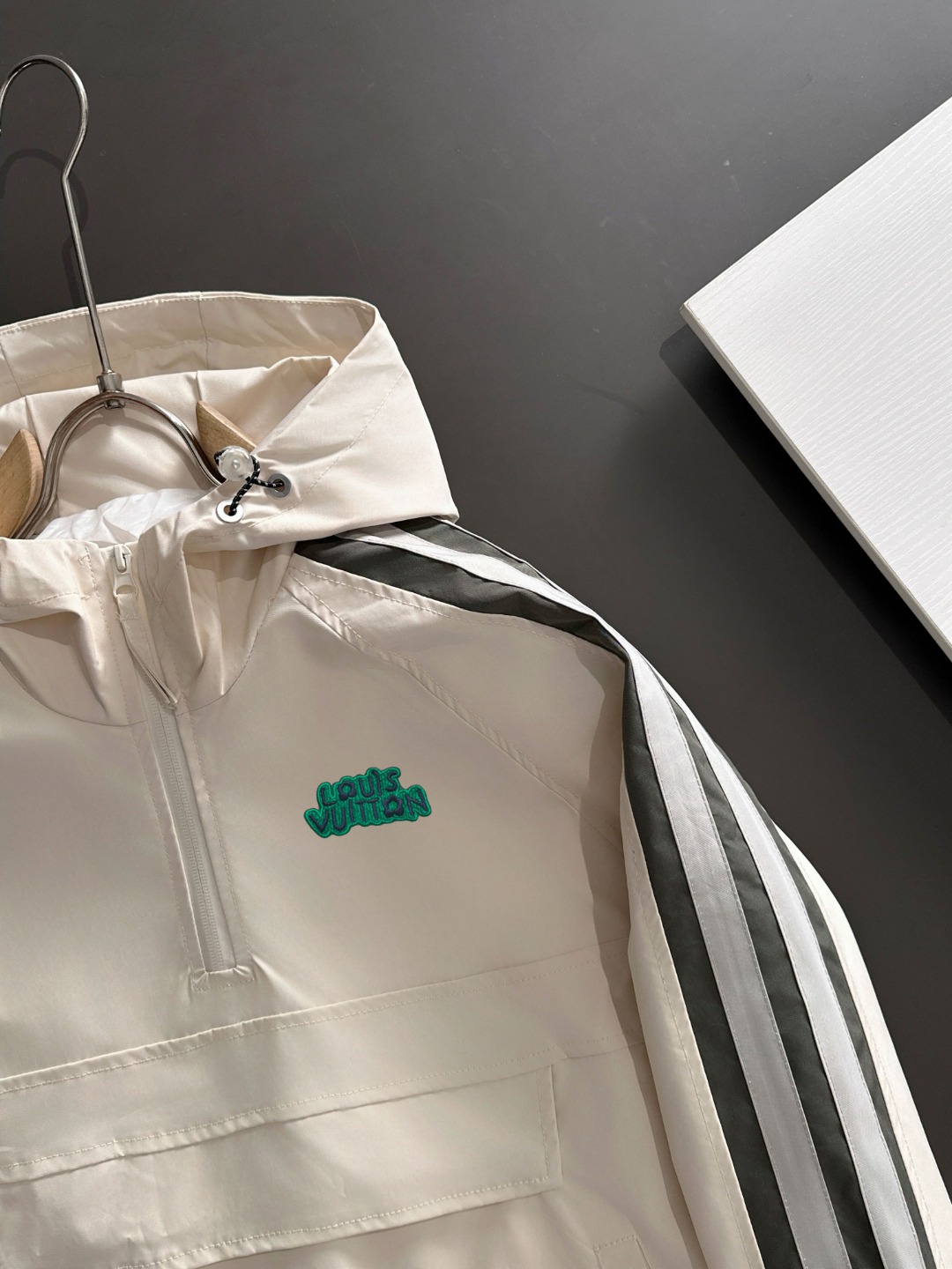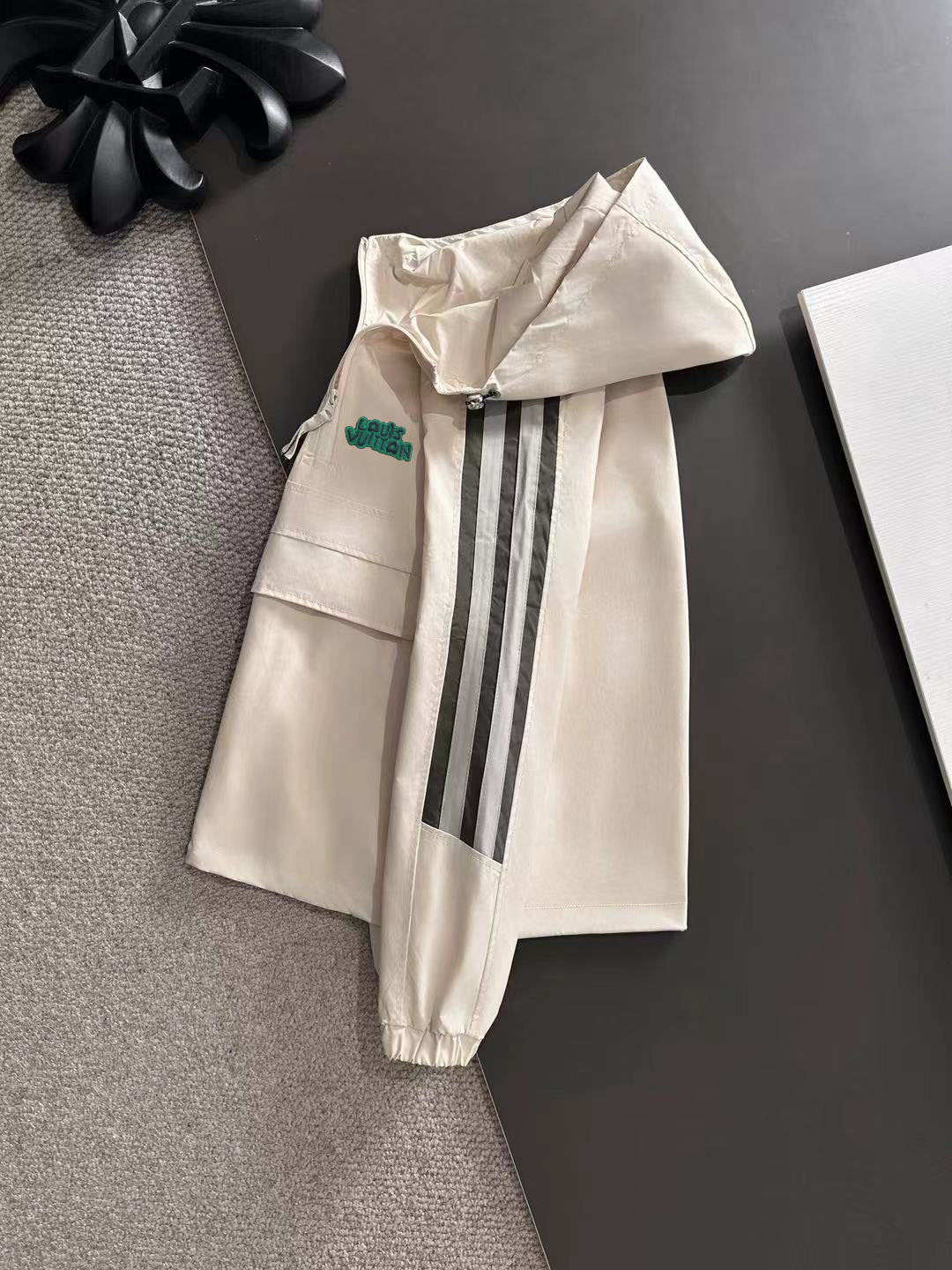 这款衣服是AAAAA 1:1 质量 (非常棒). 使用了和原版一模一样的材料. 商标部分也保持了和路易威登/Louis Vuitton一样. 图片拍摄是实物衣服拍摄, 您所收到的实物保证和我们图片一模一样.
