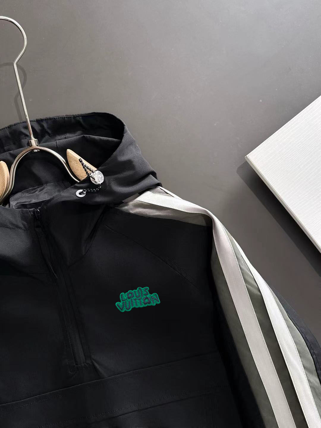这款衣服是AAAAA 1:1 质量 (非常棒). 使用了和原版一模一样的材料. 商标部分也保持了和路易威登/Louis Vuitton一样. 图片拍摄是实物衣服拍摄, 您所收到的实物保证和我们图片一模一样.