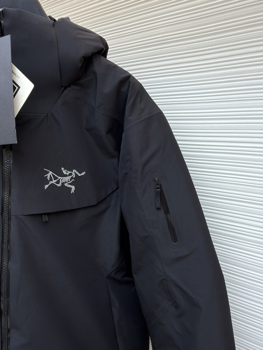 这款衣服是AAAAA 1:1 质量 (非常棒). 使用了和原版一模一样的材料. 商标部分也保持了和ARC'TERYX一样. 图片拍摄是实物衣服拍摄, 您所收到的实物保证和我们图片一模一样.