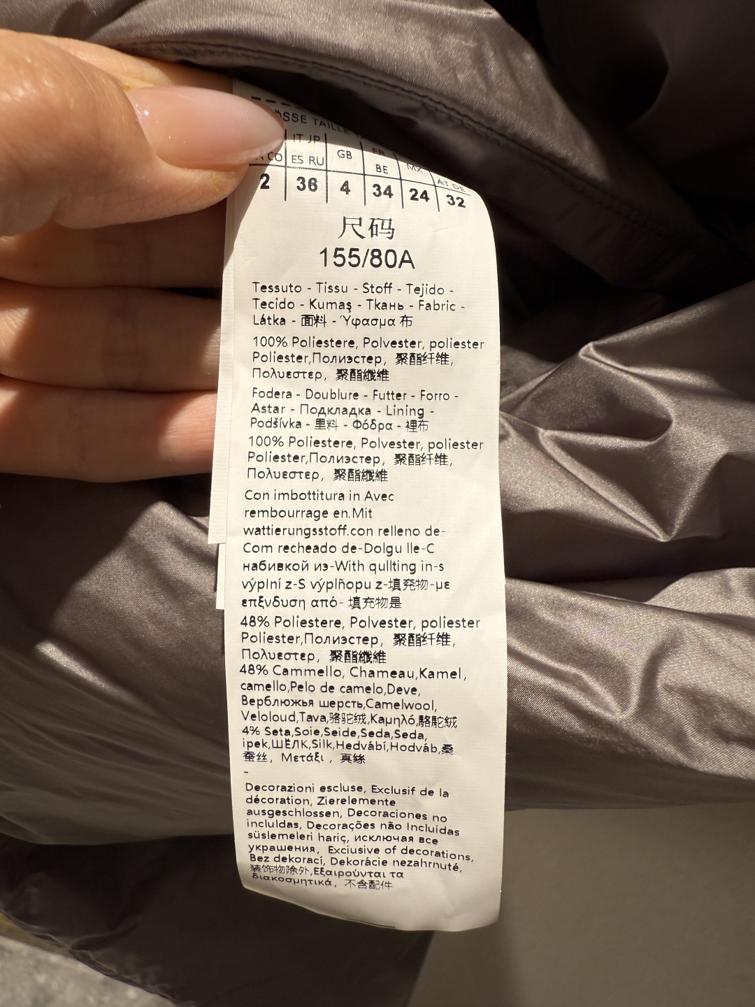 这款衣服是AAAAA 1:1 质量 (非常棒). 使用了和原版一模一样的材料. 商标部分也保持了和Max Mara一样. 图片拍摄是实物衣服拍摄, 您所收到的实物保证和我们图片一模一样.