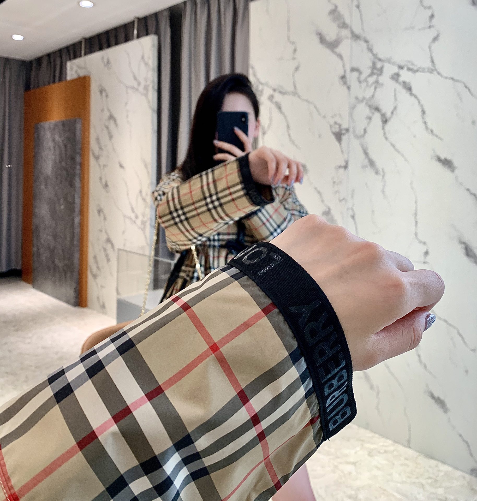 这款衣服是AAAAA 1:1 质量 (非常棒). 使用了和原版一模一样的材料. 商标部分也保持了和巴宝莉/Burberry一样. 图片拍摄是实物衣服拍摄, 您所收到的实物保证和我们图片一模一样.