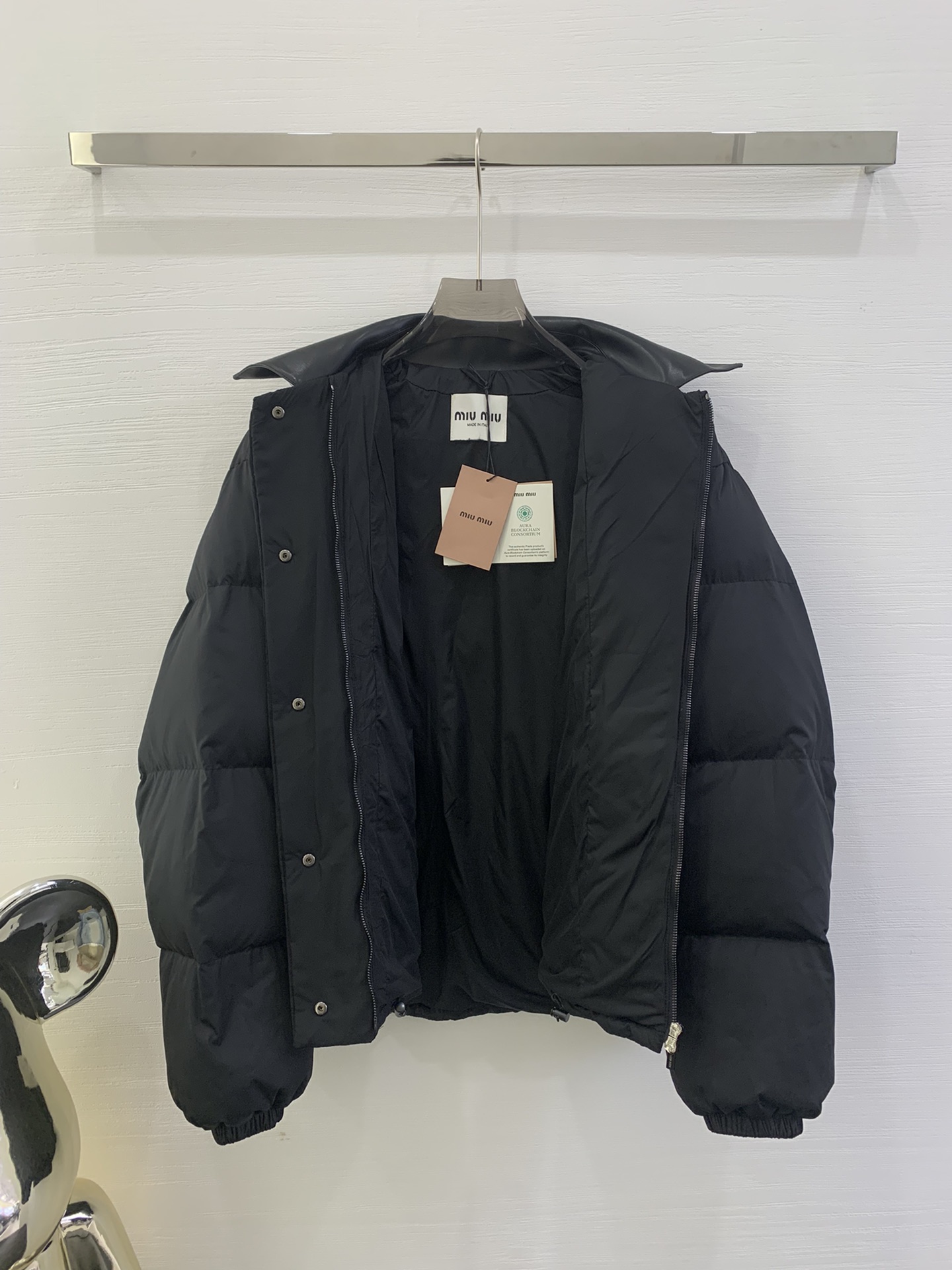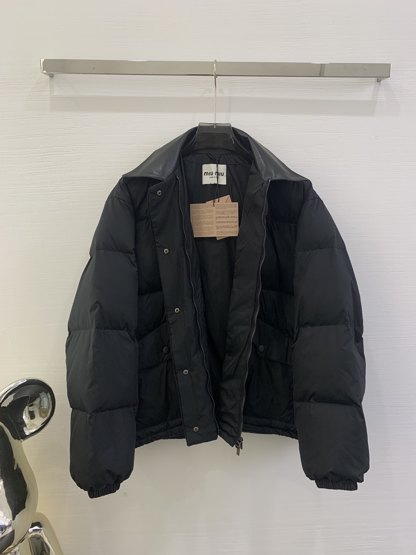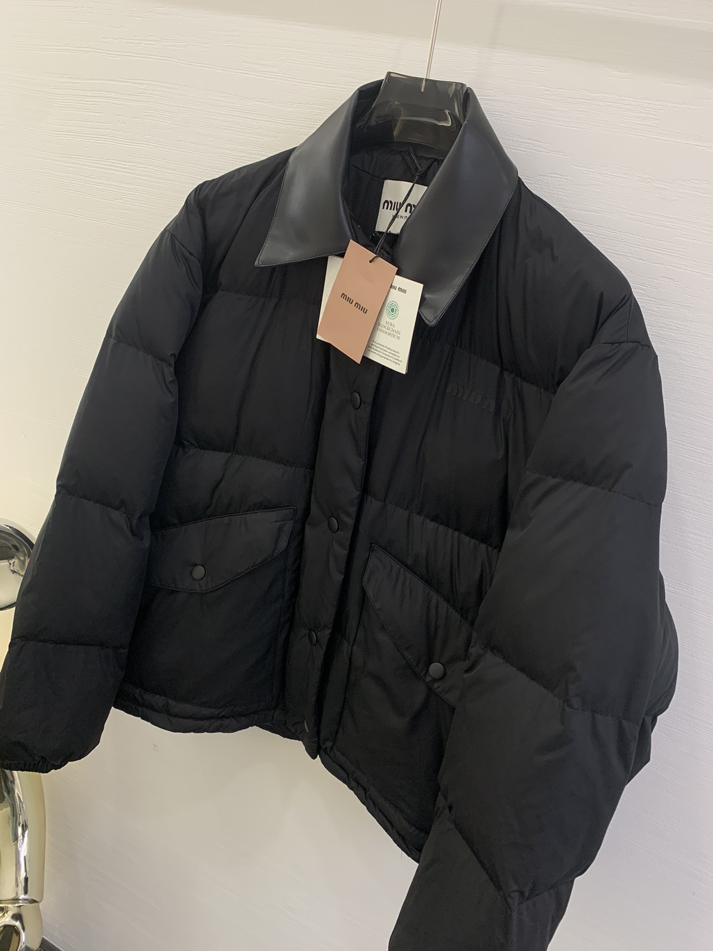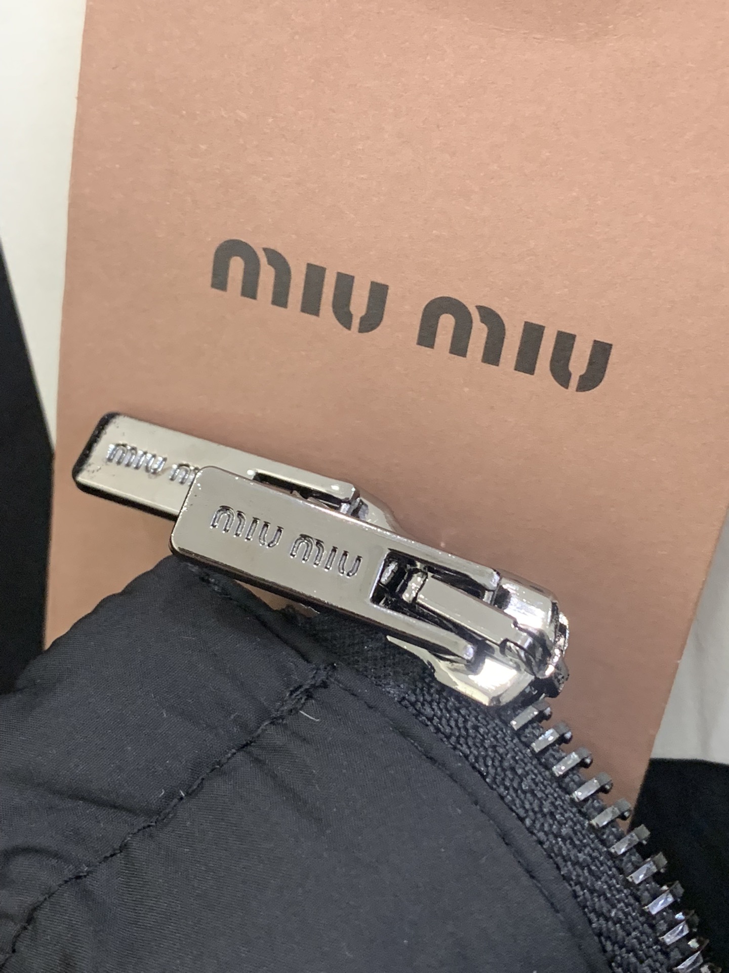 这款衣服是AAAAA 1:1 质量 (非常棒). 使用了和原版一模一样的材料. 商标部分也保持了和缪缪/Miu Miu一样. 图片拍摄是实物衣服拍摄, 您所收到的实物保证和我们图片一模一样.