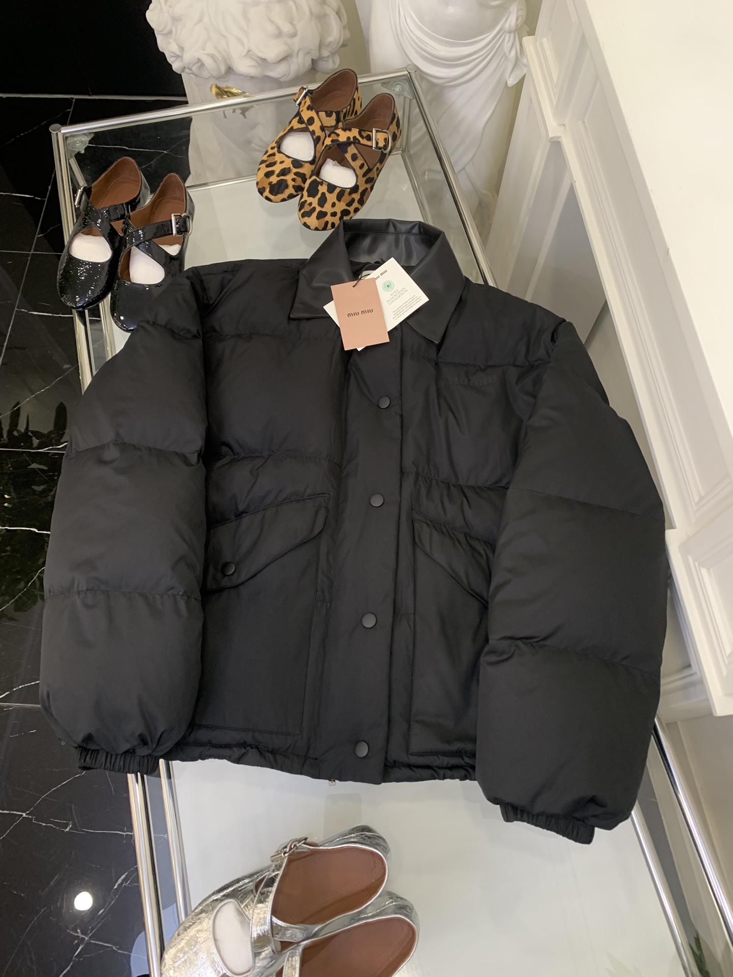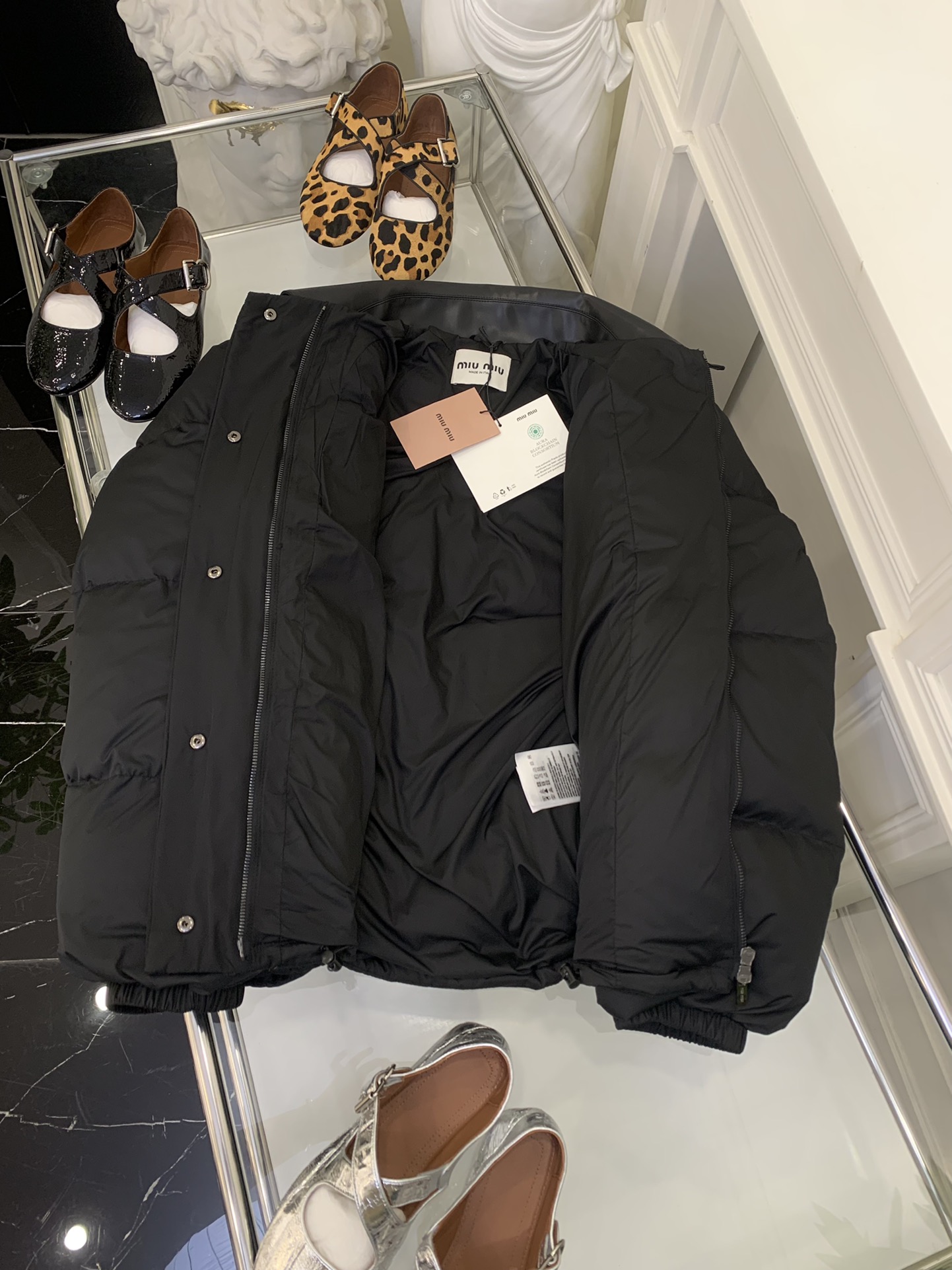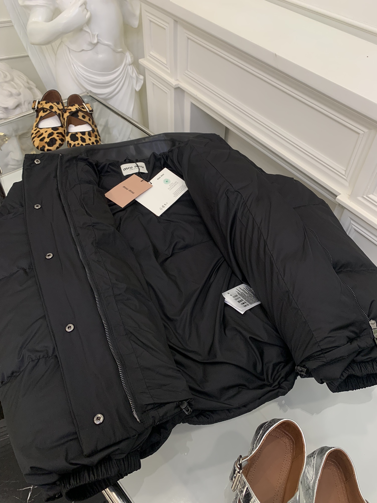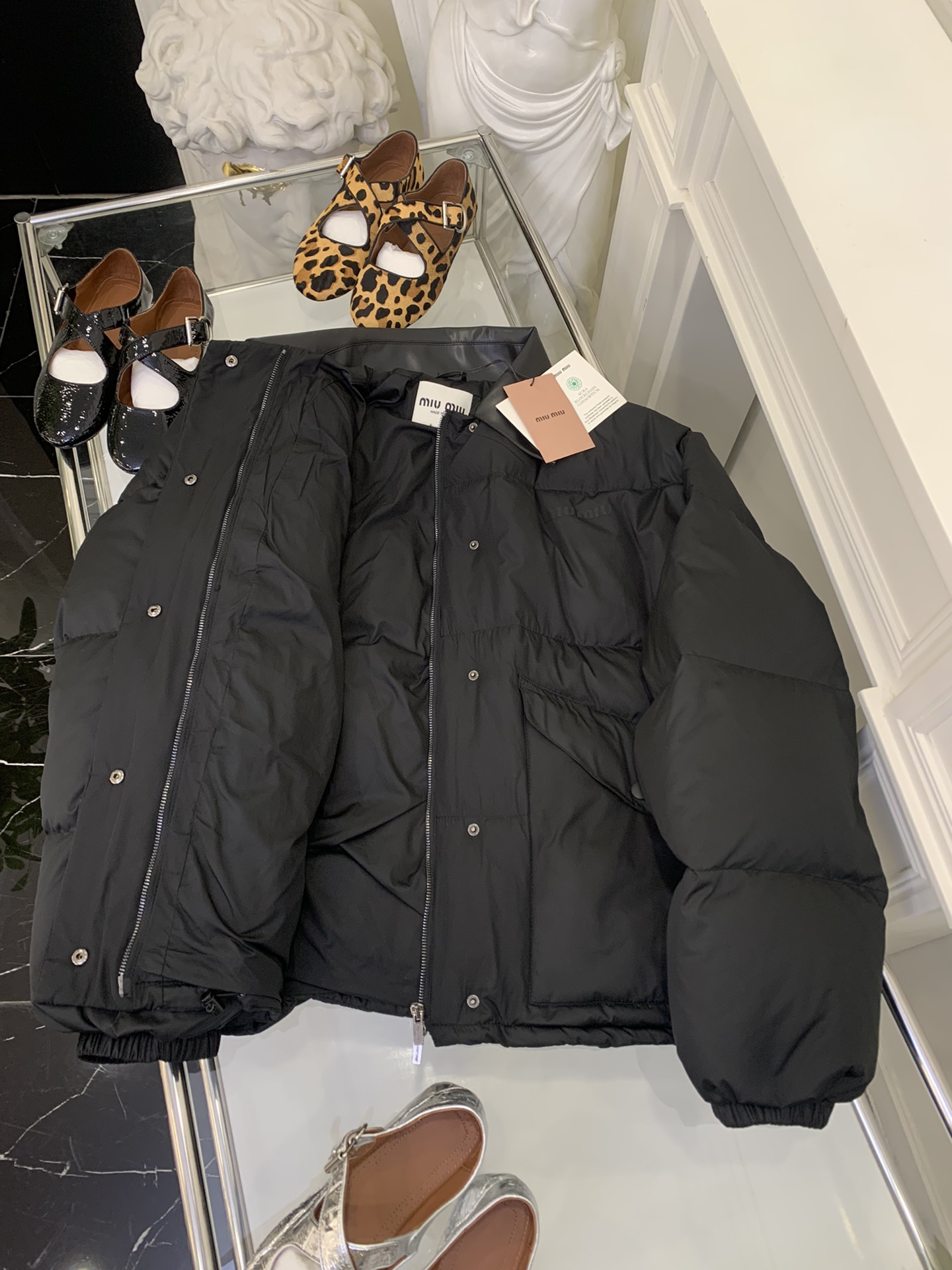 这款衣服是AAAAA 1:1 质量 (非常棒). 使用了和原版一模一样的材料. 商标部分也保持了和缪缪/Miu Miu一样. 图片拍摄是实物衣服拍摄, 您所收到的实物保证和我们图片一模一样.