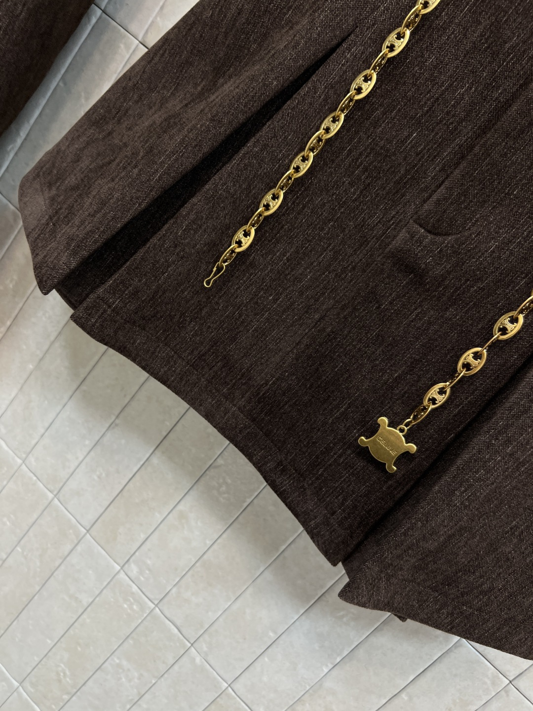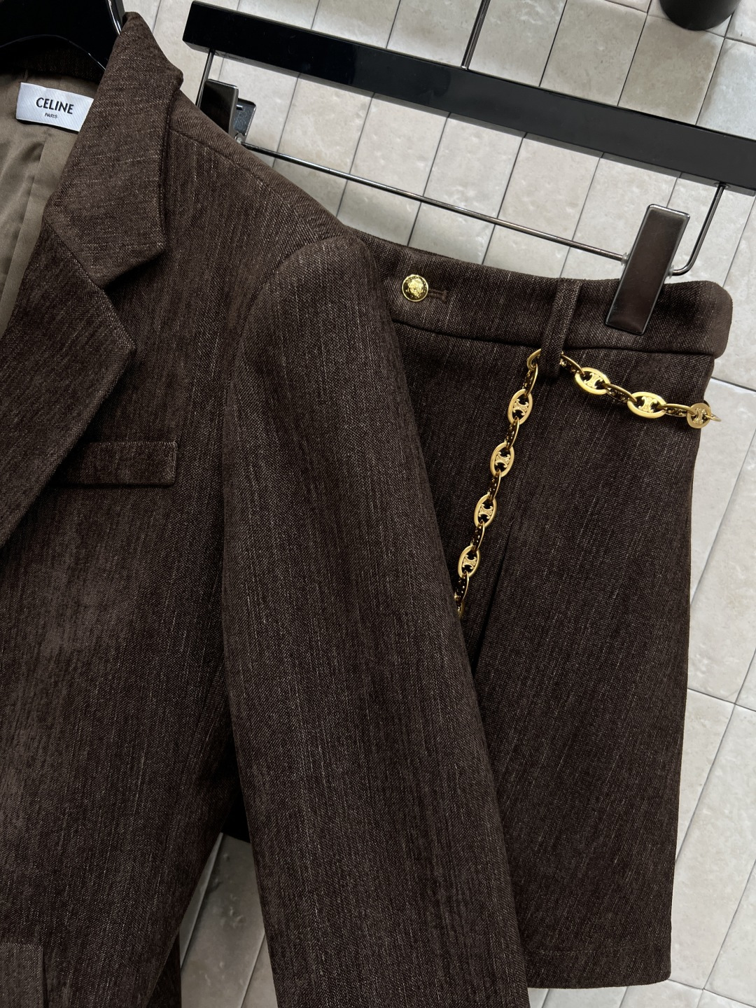 这款衣服是AAAAA 1:1 质量 (非常棒). 使用了和原版一模一样的材料. 商标部分也保持了和思琳/Celine一样. 图片拍摄是实物衣服拍摄, 您所收到的实物保证和我们图片一模一样.