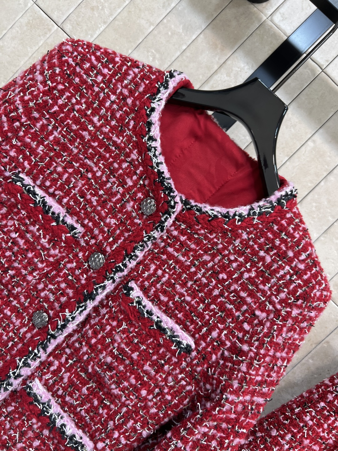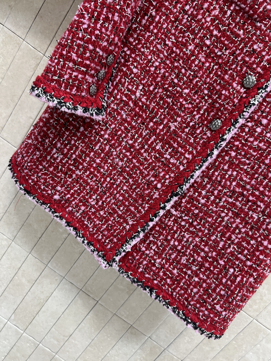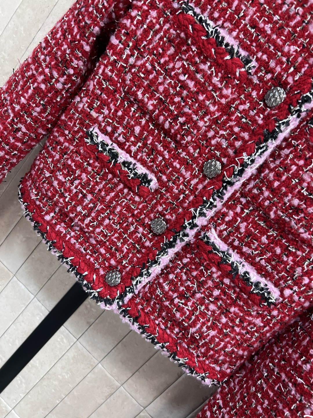 这款衣服是AAAAA 1:1 质量 (非常棒). 使用了和原版一模一样的材料. 商标部分也保持了和香奈儿/Chanel一样. 图片拍摄是实物衣服拍摄, 您所收到的实物保证和我们图片一模一样.