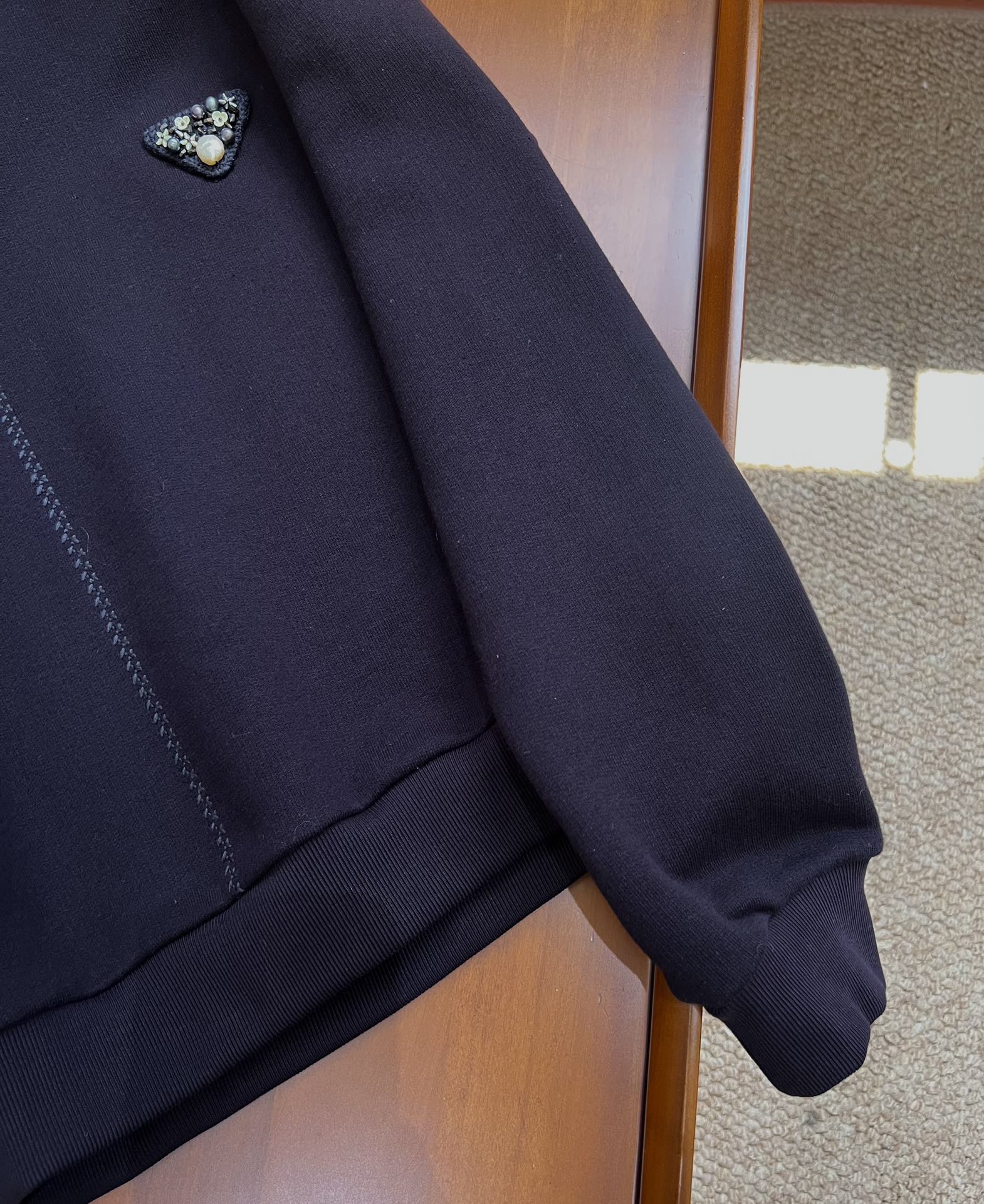 这款衣服是AAAAA 1:1 质量 (非常棒). 使用了和原版一模一样的材料. 商标部分也保持了和普拉达/Prada一样. 图片拍摄是实物衣服拍摄, 您所收到的实物保证和我们图片一模一样.