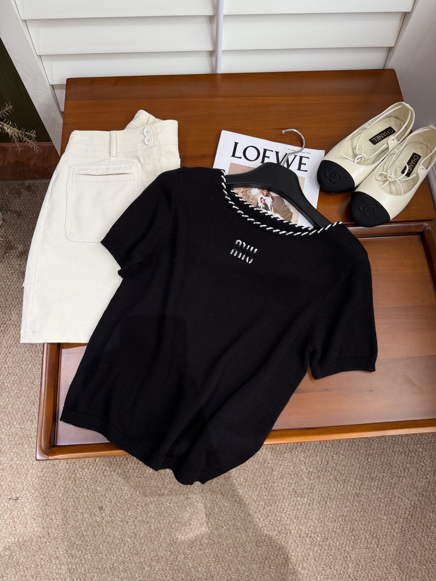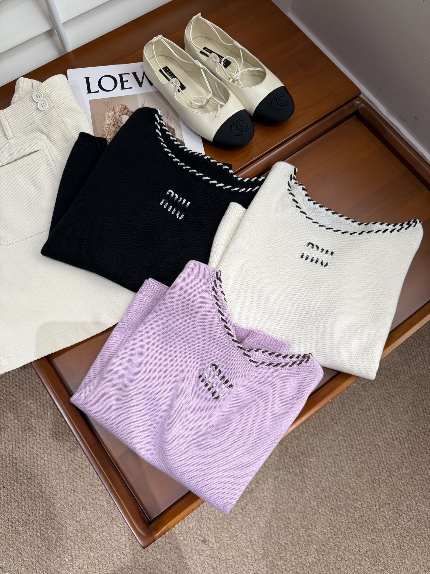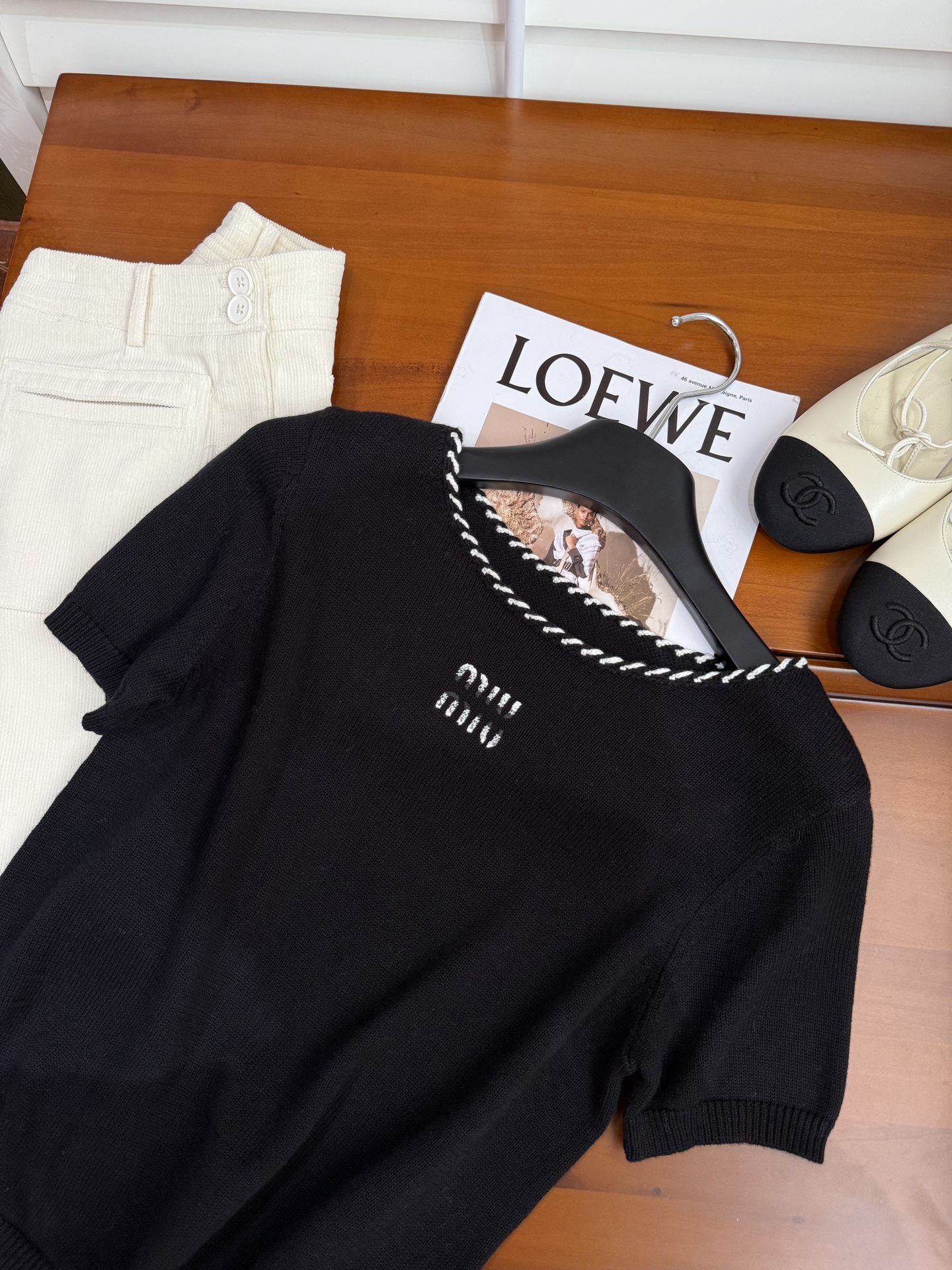 这款衣服是AAAAA 1:1 质量 (非常棒). 使用了和原版一模一样的材料. 商标部分也保持了和缪缪/Miu Miu一样. 图片拍摄是实物衣服拍摄, 您所收到的实物保证和我们图片一模一样.