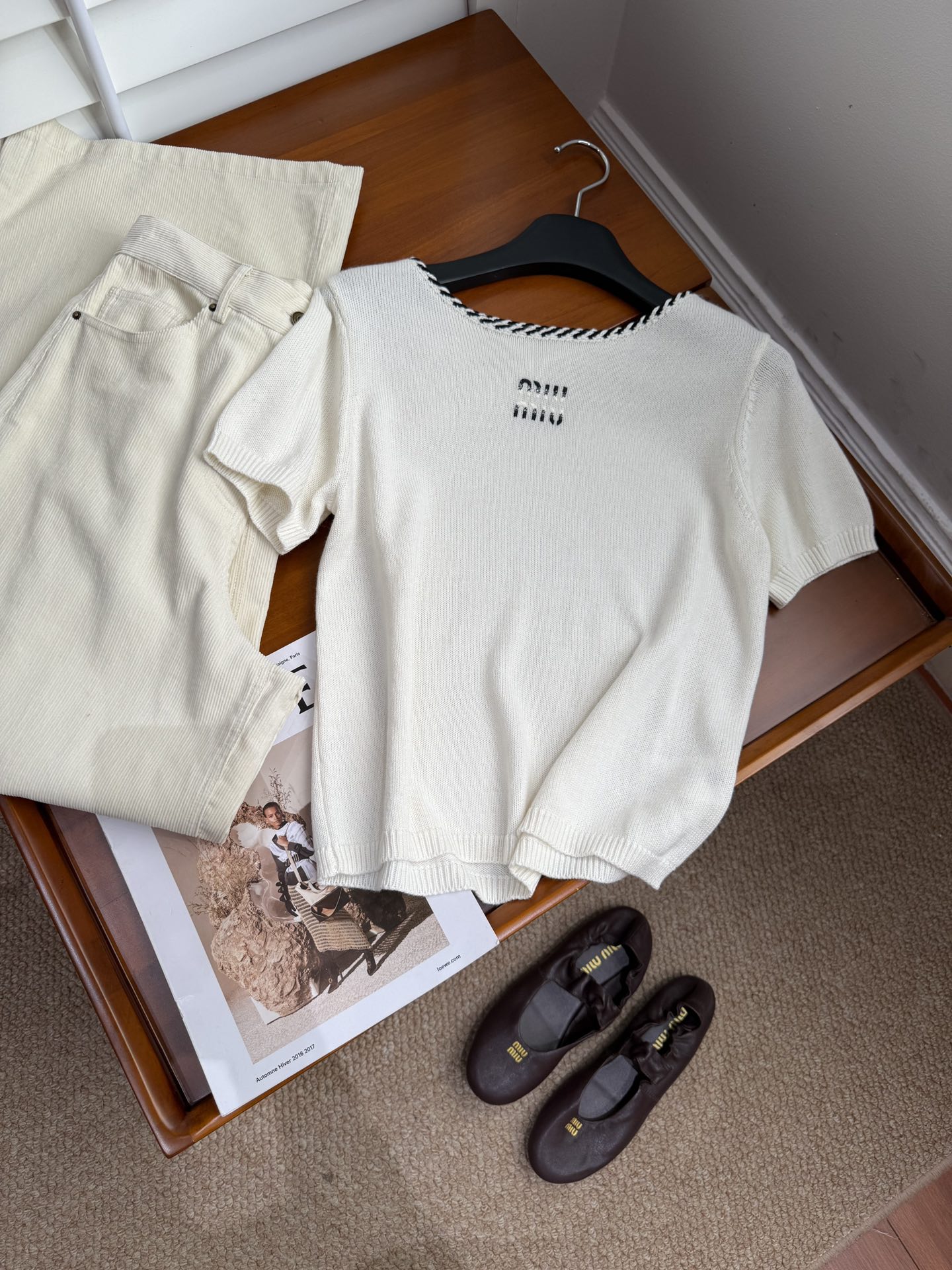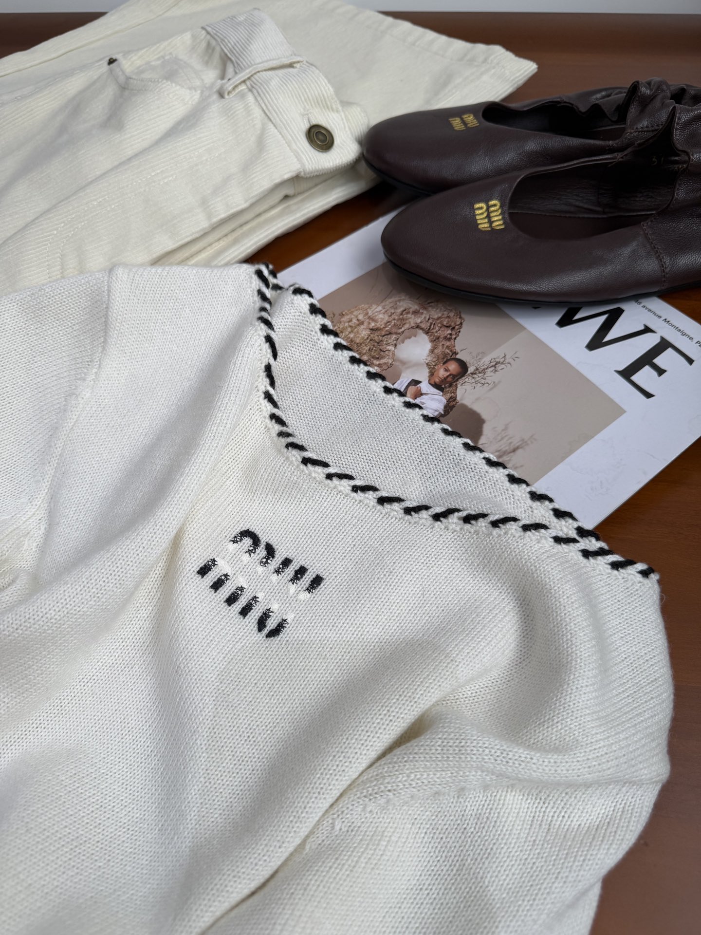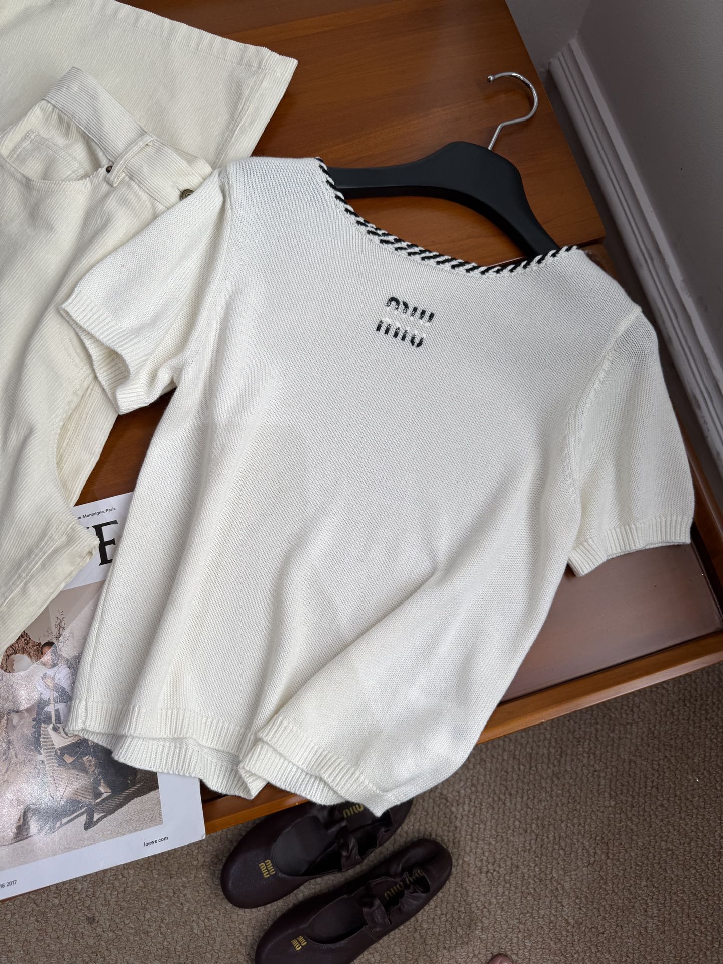 这款衣服是AAAAA 1:1 质量 (非常棒). 使用了和原版一模一样的材料. 商标部分也保持了和缪缪/Miu Miu一样. 图片拍摄是实物衣服拍摄, 您所收到的实物保证和我们图片一模一样.