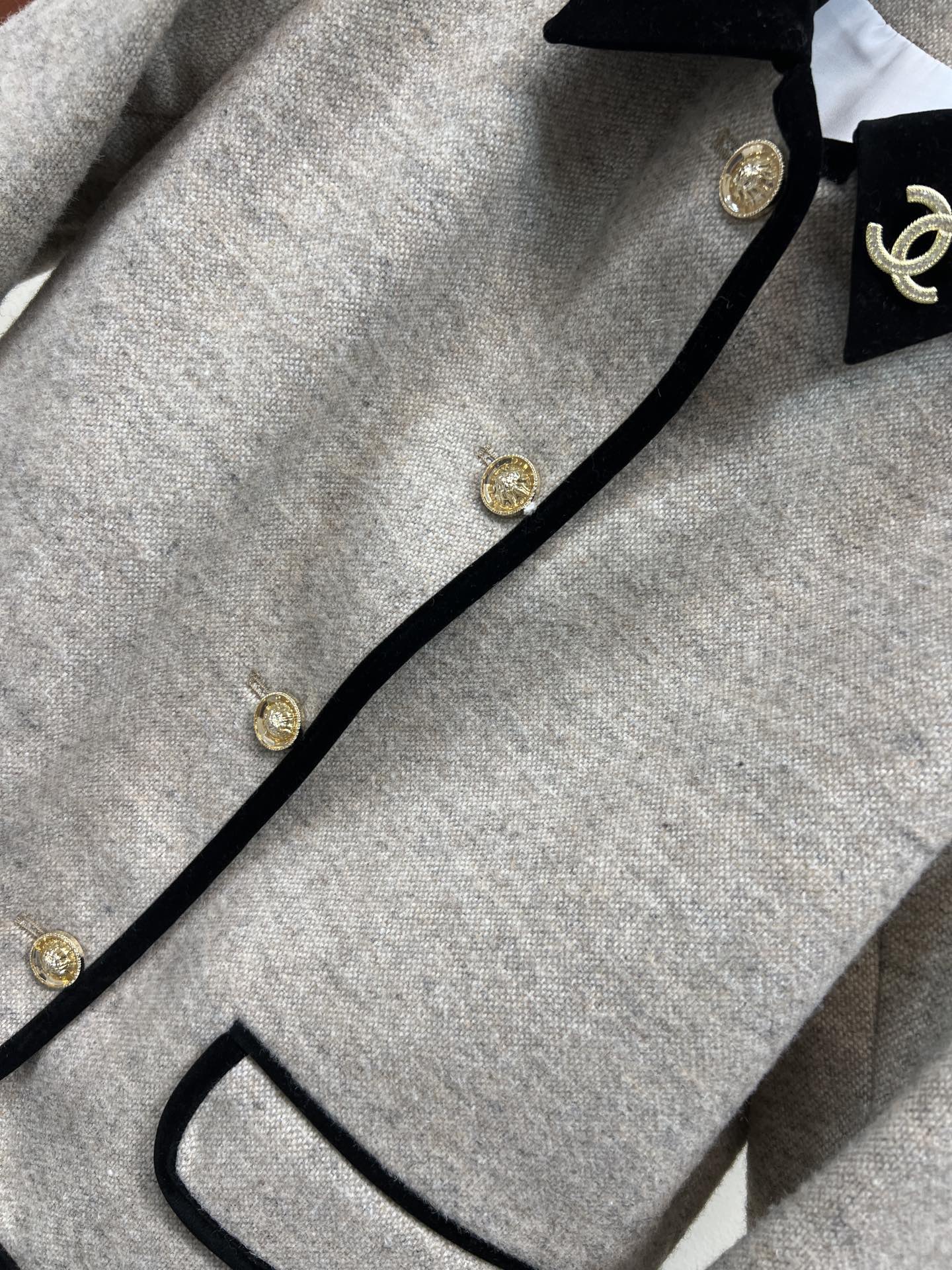 这款衣服是AAAAA 1:1 质量 (非常棒). 使用了和原版一模一样的材料. 商标部分也保持了和香奈儿/Chanel一样. 图片拍摄是实物衣服拍摄, 您所收到的实物保证和我们图片一模一样.