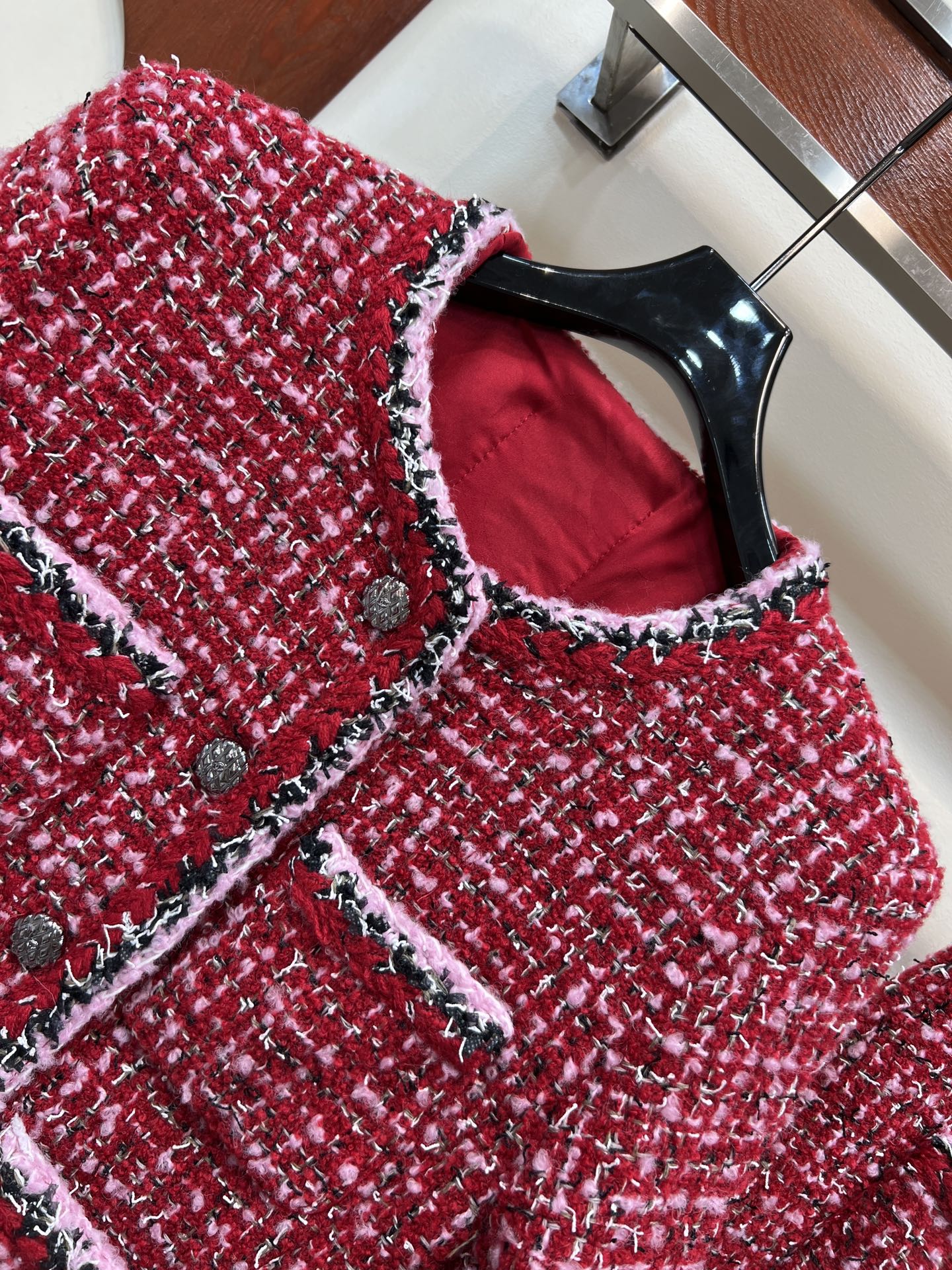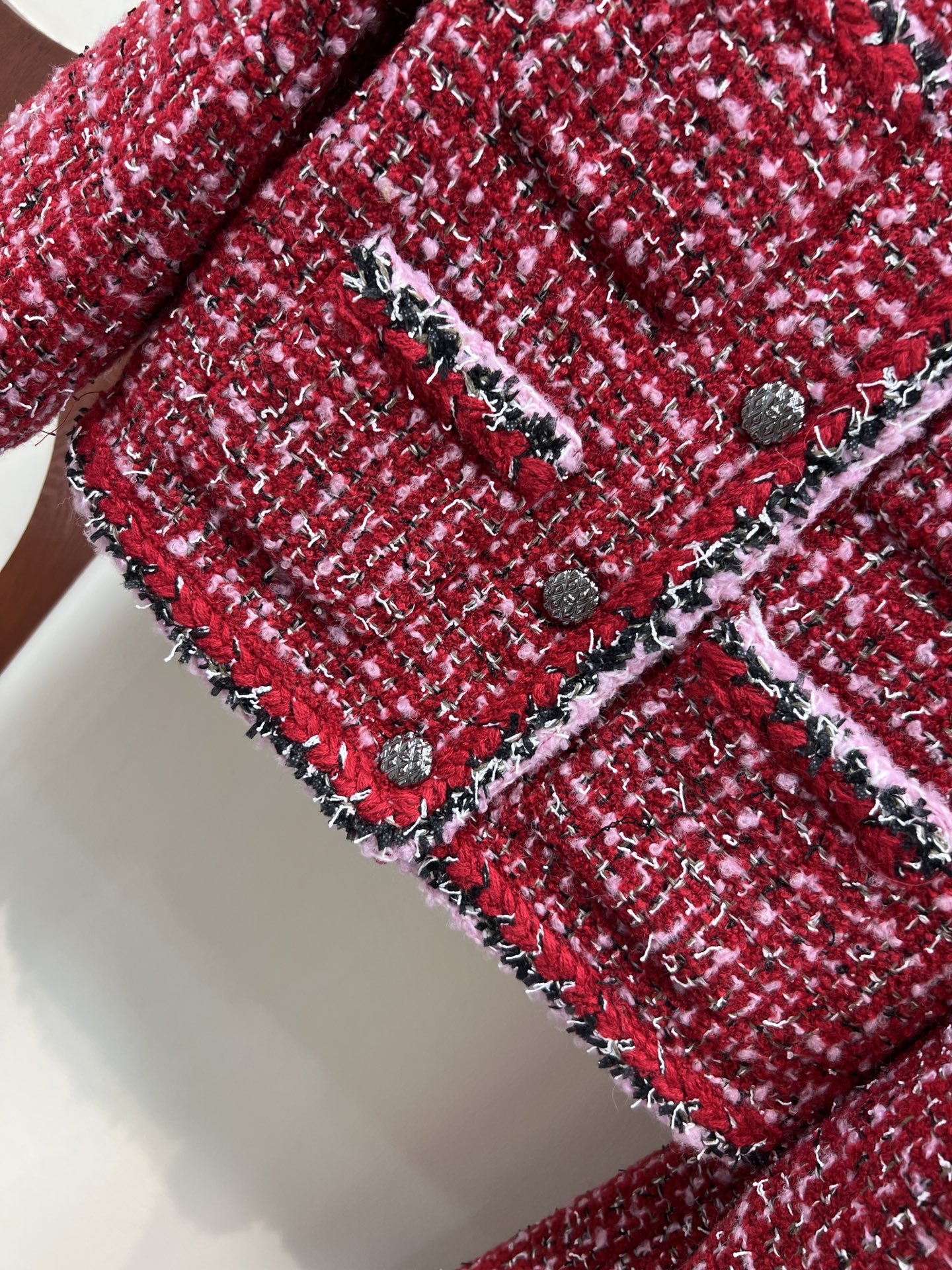 这款衣服是AAAAA 1:1 质量 (非常棒). 使用了和原版一模一样的材料. 商标部分也保持了和香奈儿/Chanel一样. 图片拍摄是实物衣服拍摄, 您所收到的实物保证和我们图片一模一样.