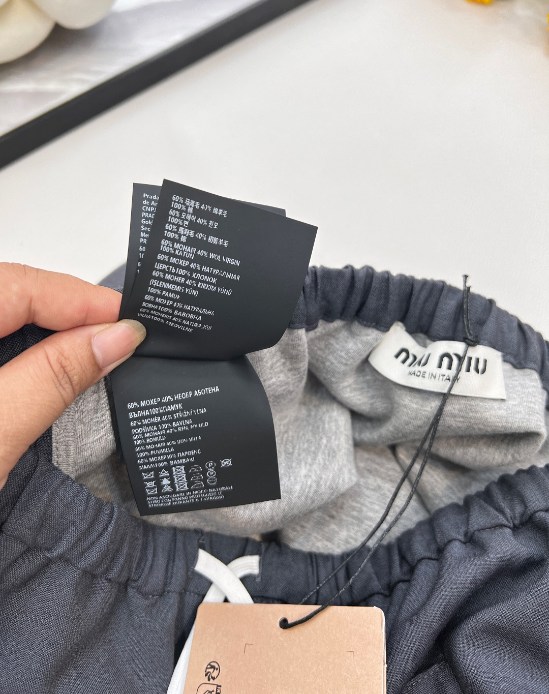 这款衣服是AAAAA 1:1 质量 (非常棒). 使用了和原版一模一样的材料. 商标部分也保持了和缪缪/Miu Miu一样. 图片拍摄是实物衣服拍摄, 您所收到的实物保证和我们图片一模一样.