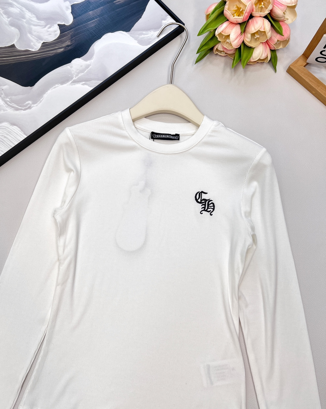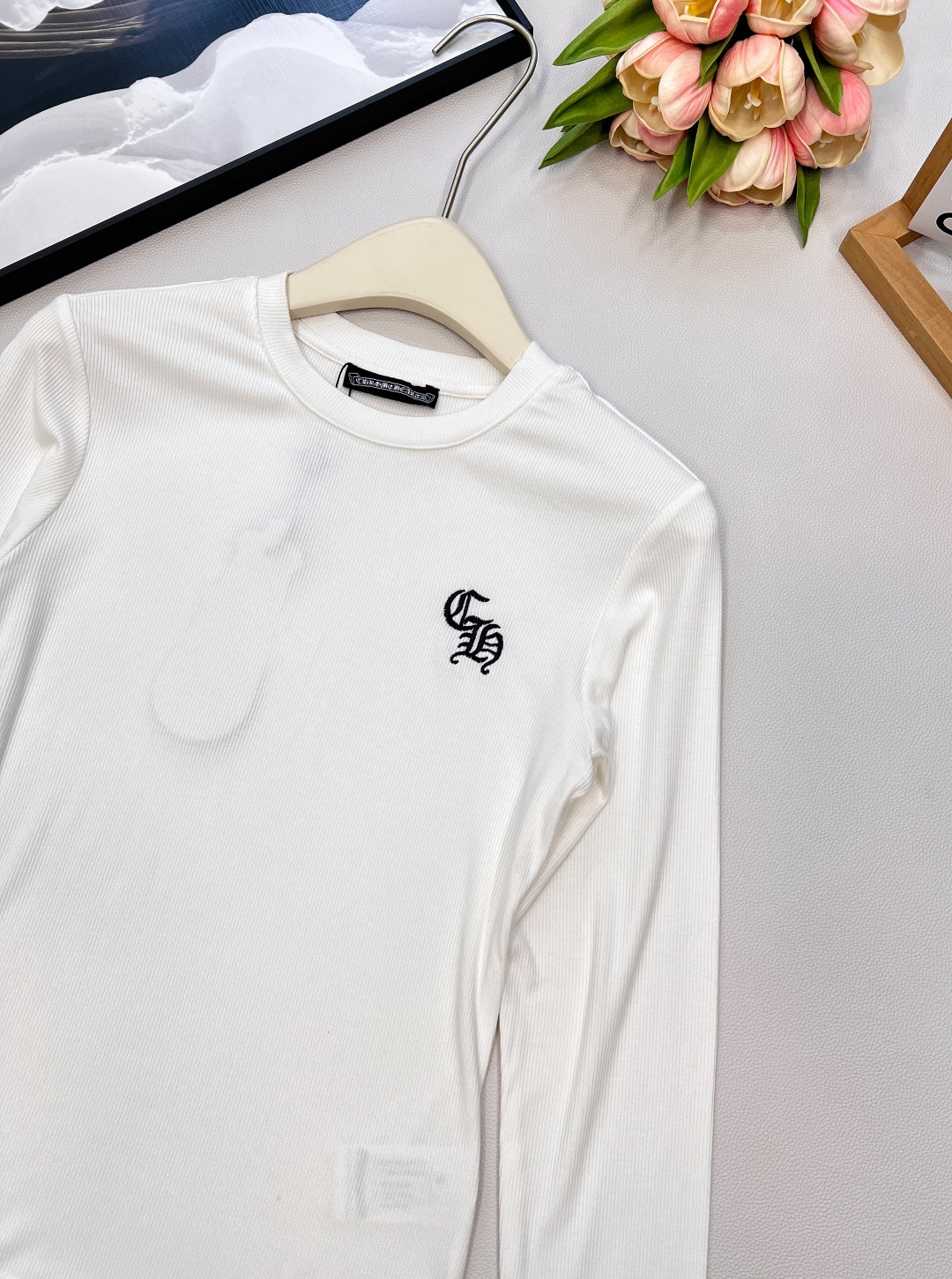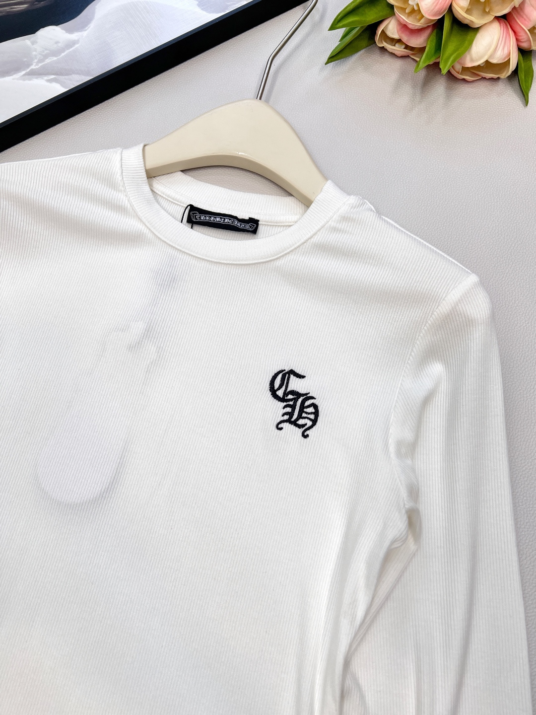 这款衣服是AAAAA 1:1 质量 (非常棒). 使用了和原版一模一样的材料. 商标部分也保持了和克罗心/Chrome Hearts一样. 图片拍摄是实物衣服拍摄, 您所收到的实物保证和我们图片一模一样.