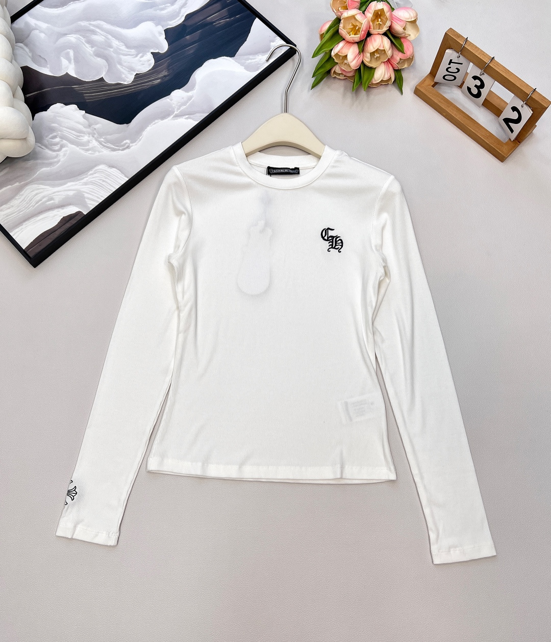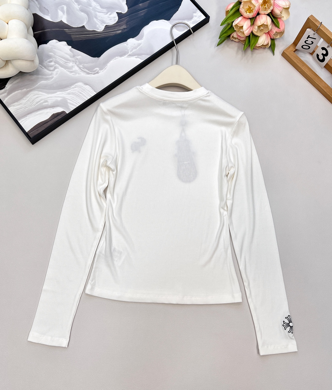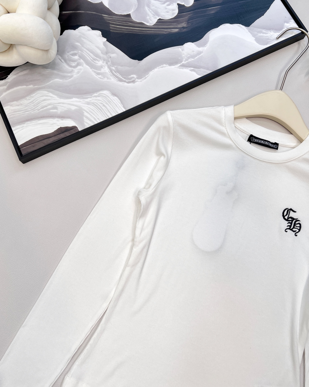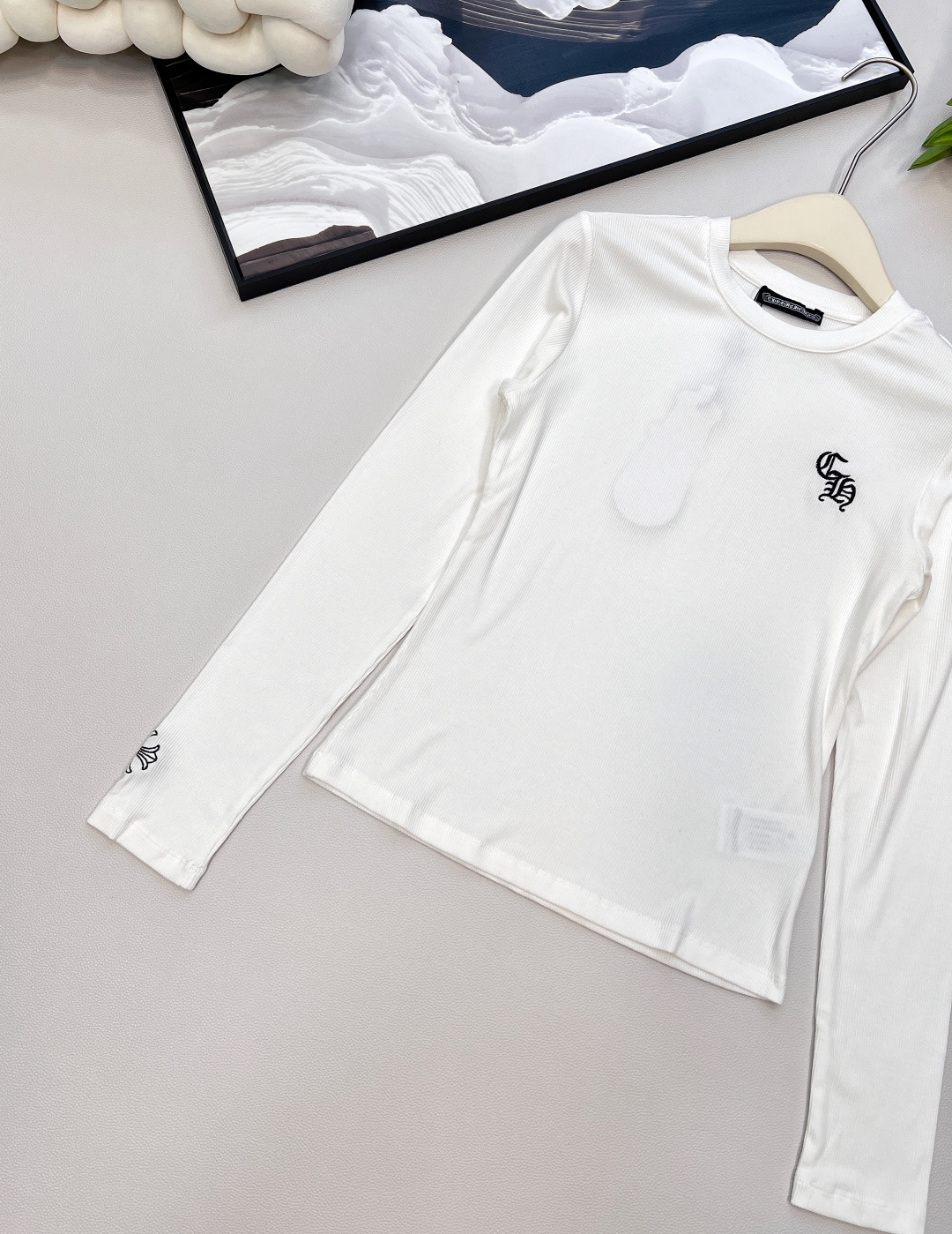 这款衣服是AAAAA 1:1 质量 (非常棒). 使用了和原版一模一样的材料. 商标部分也保持了和克罗心/Chrome Hearts一样. 图片拍摄是实物衣服拍摄, 您所收到的实物保证和我们图片一模一样.