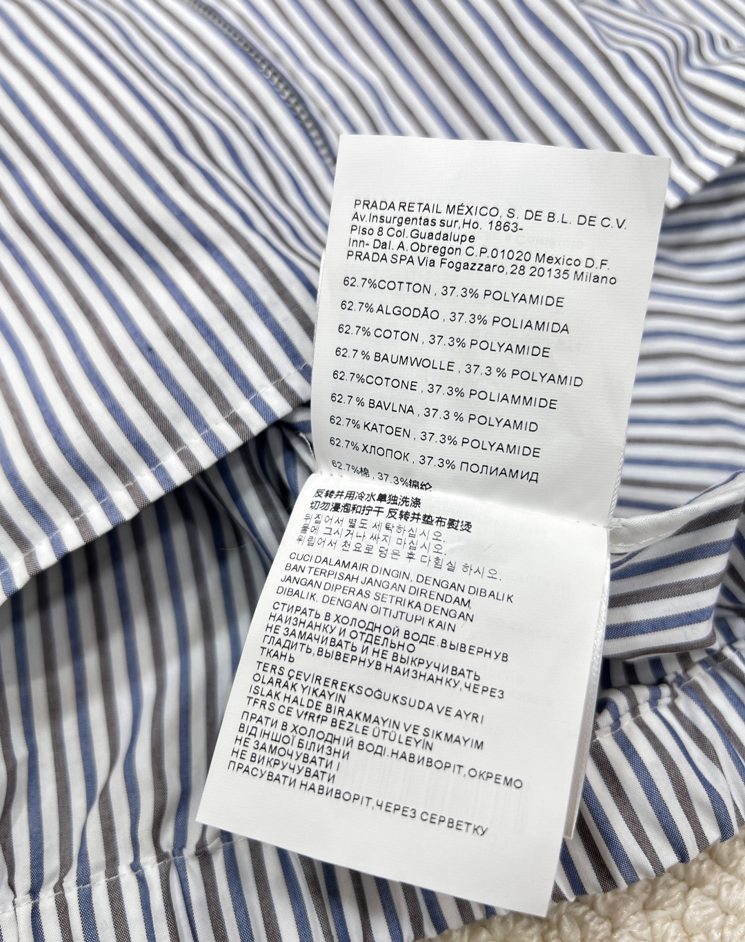 这款衣服是AAAAA 1:1 质量 (非常棒). 使用了和原版一模一样的材料. 商标部分也保持了和普拉达/Prada一样. 图片拍摄是实物衣服拍摄, 您所收到的实物保证和我们图片一模一样.