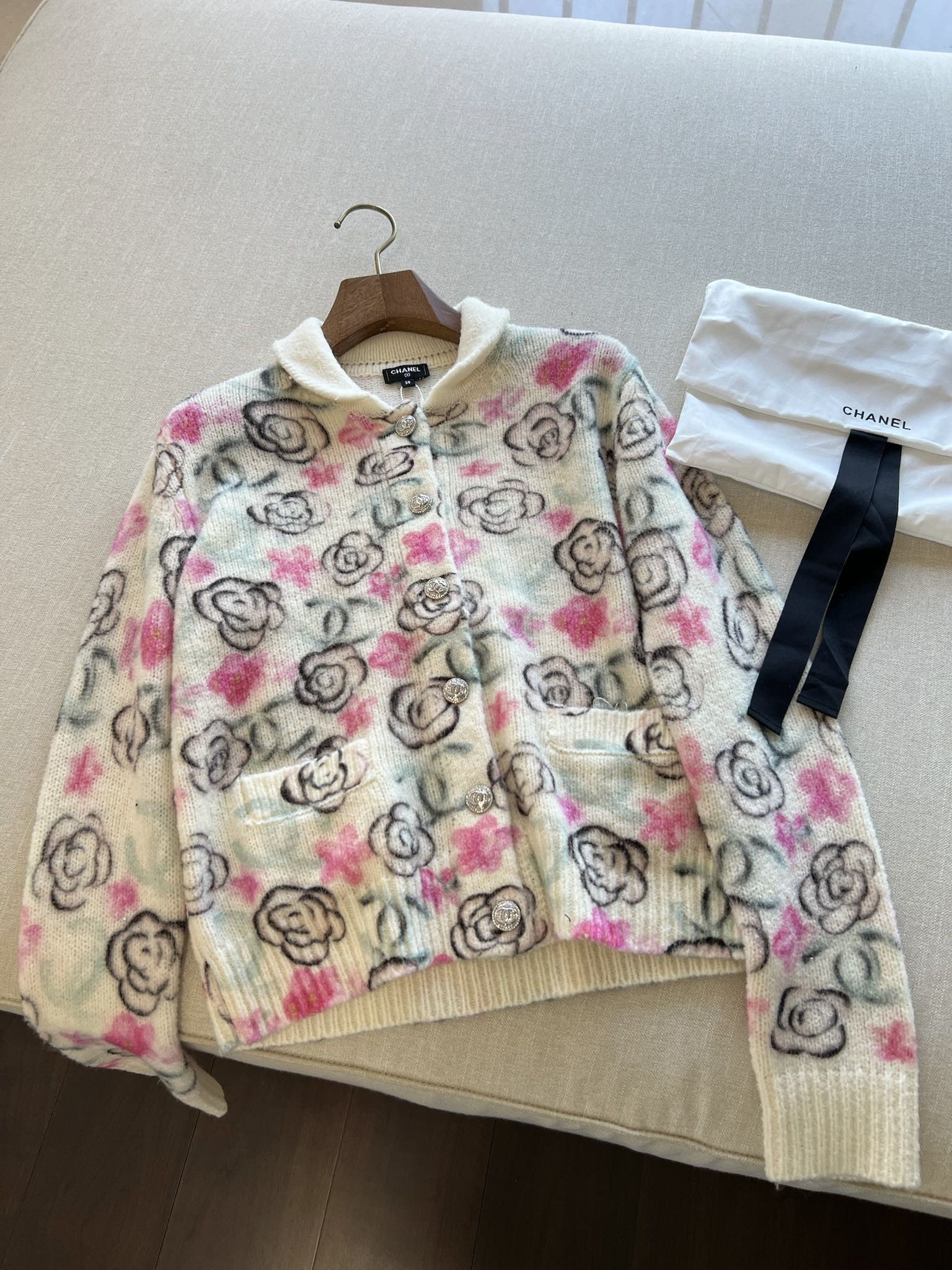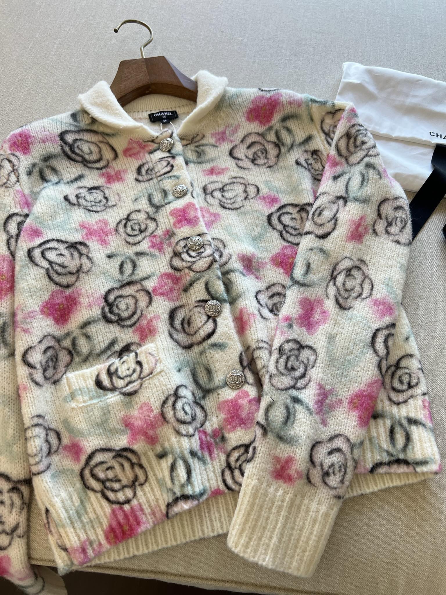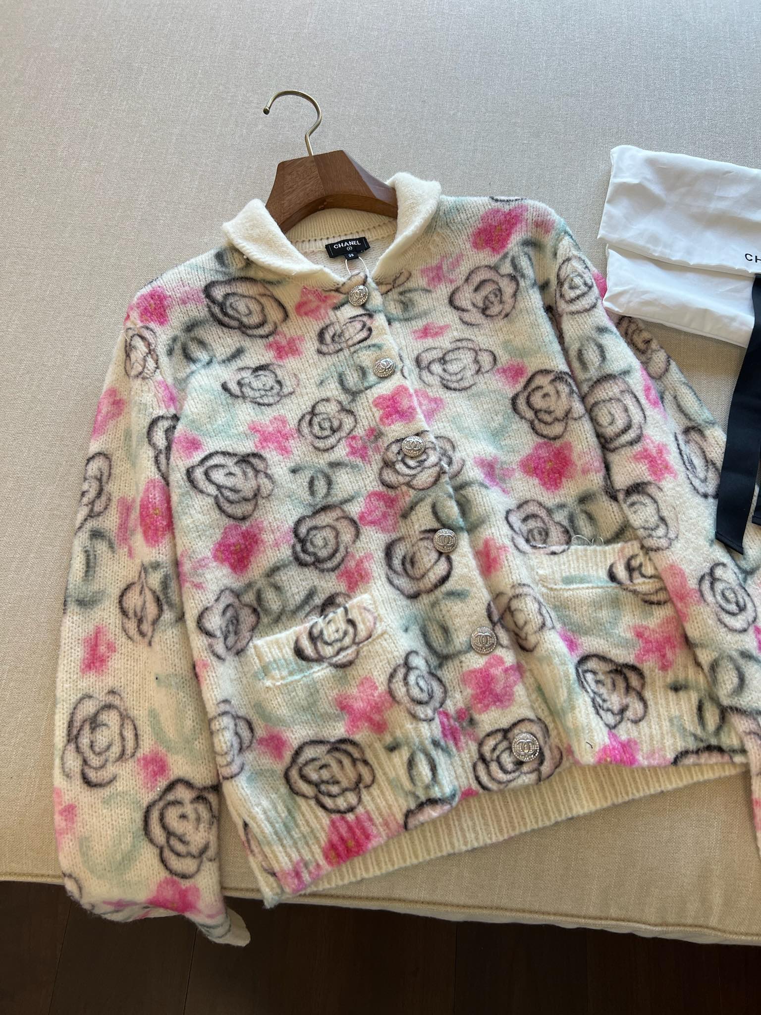 这款衣服是AAAAA 1:1 质量 (非常棒). 使用了和原版一模一样的材料. 商标部分也保持了和香奈儿/Chanel一样. 图片拍摄是实物衣服拍摄, 您所收到的实物保证和我们图片一模一样.