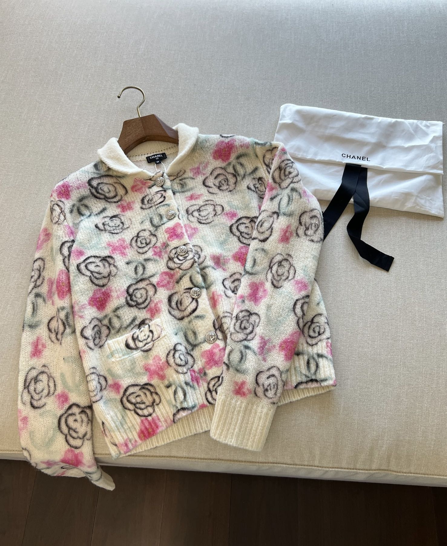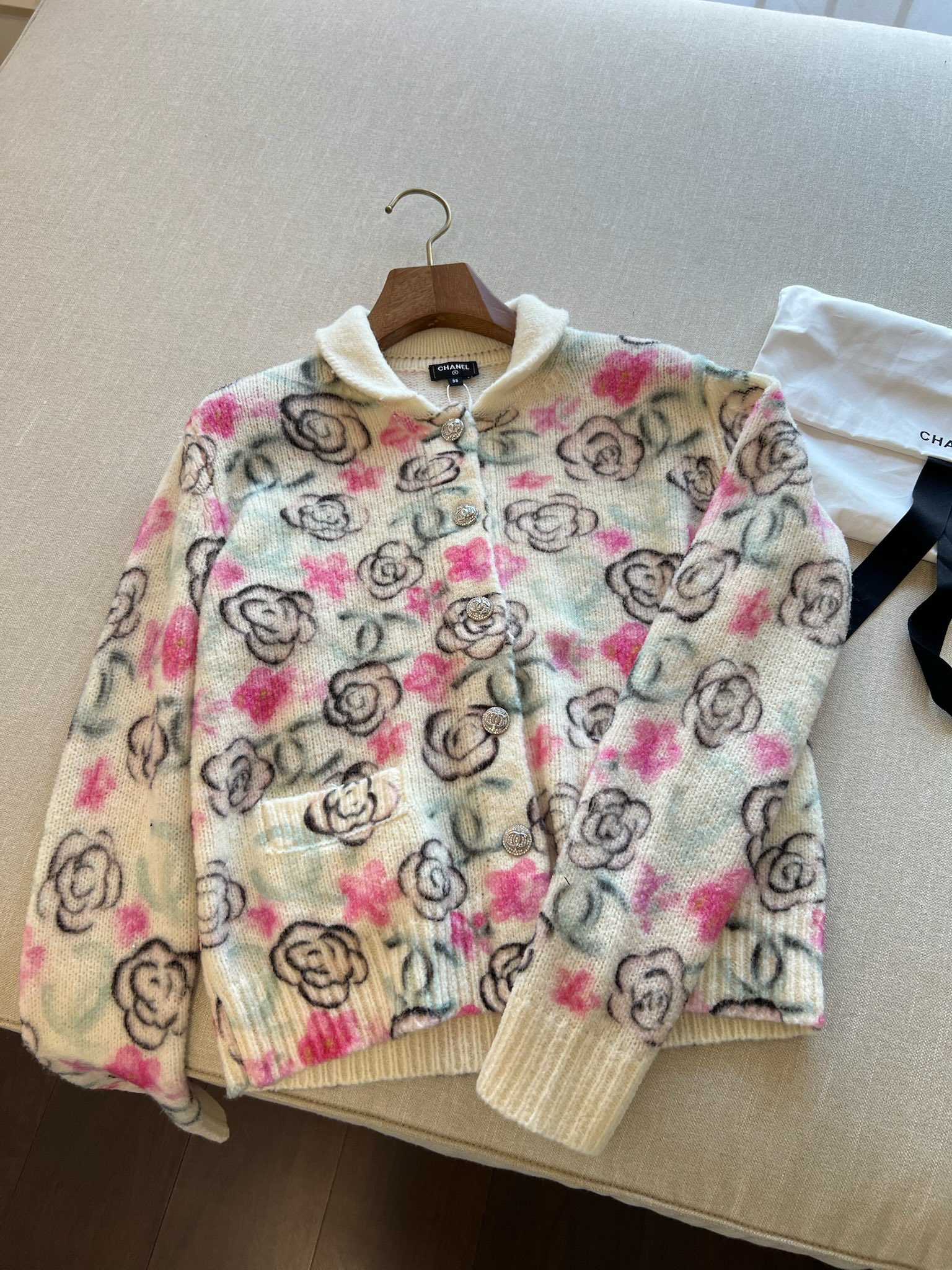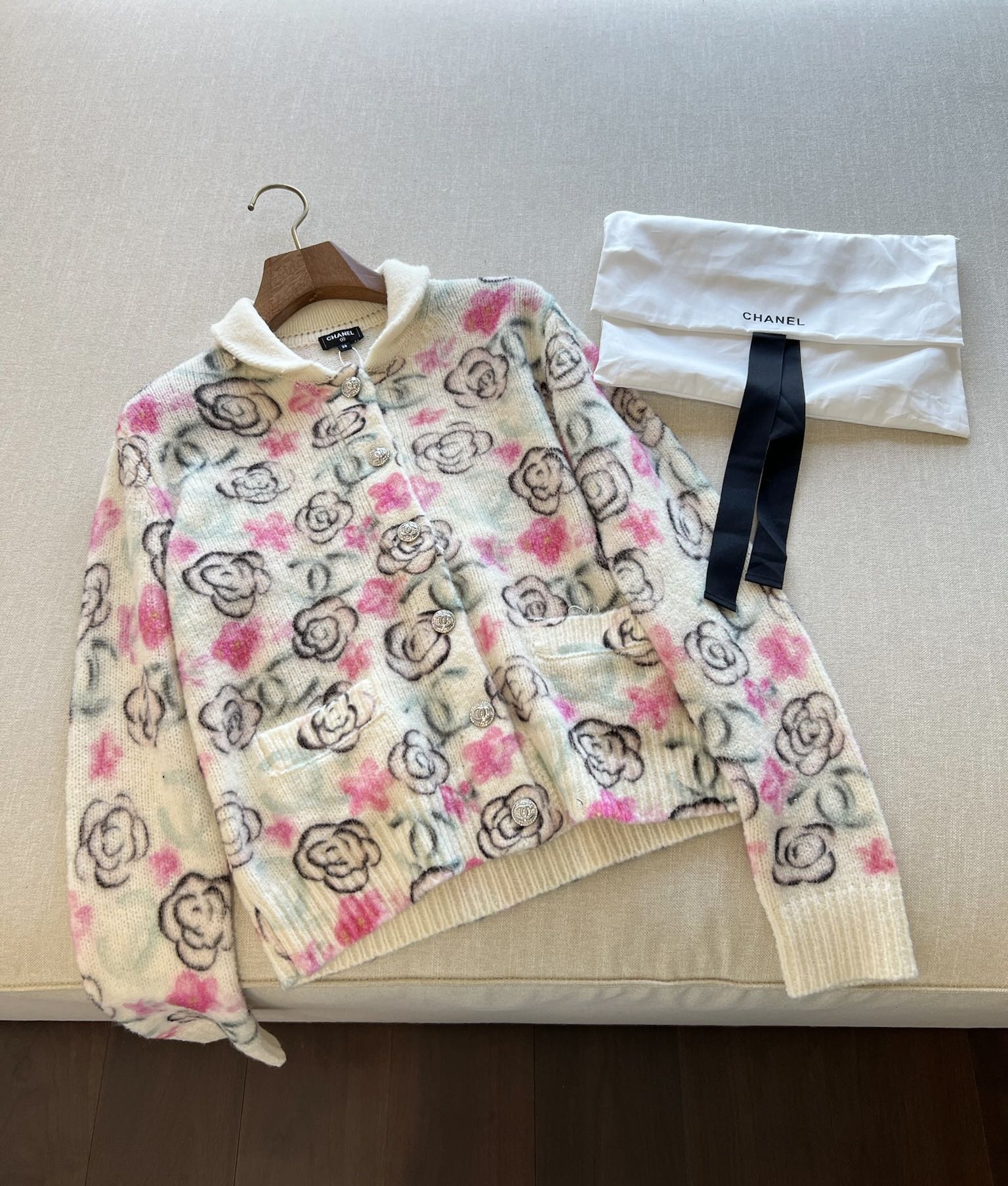 这款衣服是AAAAA 1:1 质量 (非常棒). 使用了和原版一模一样的材料. 商标部分也保持了和香奈儿/Chanel一样. 图片拍摄是实物衣服拍摄, 您所收到的实物保证和我们图片一模一样.