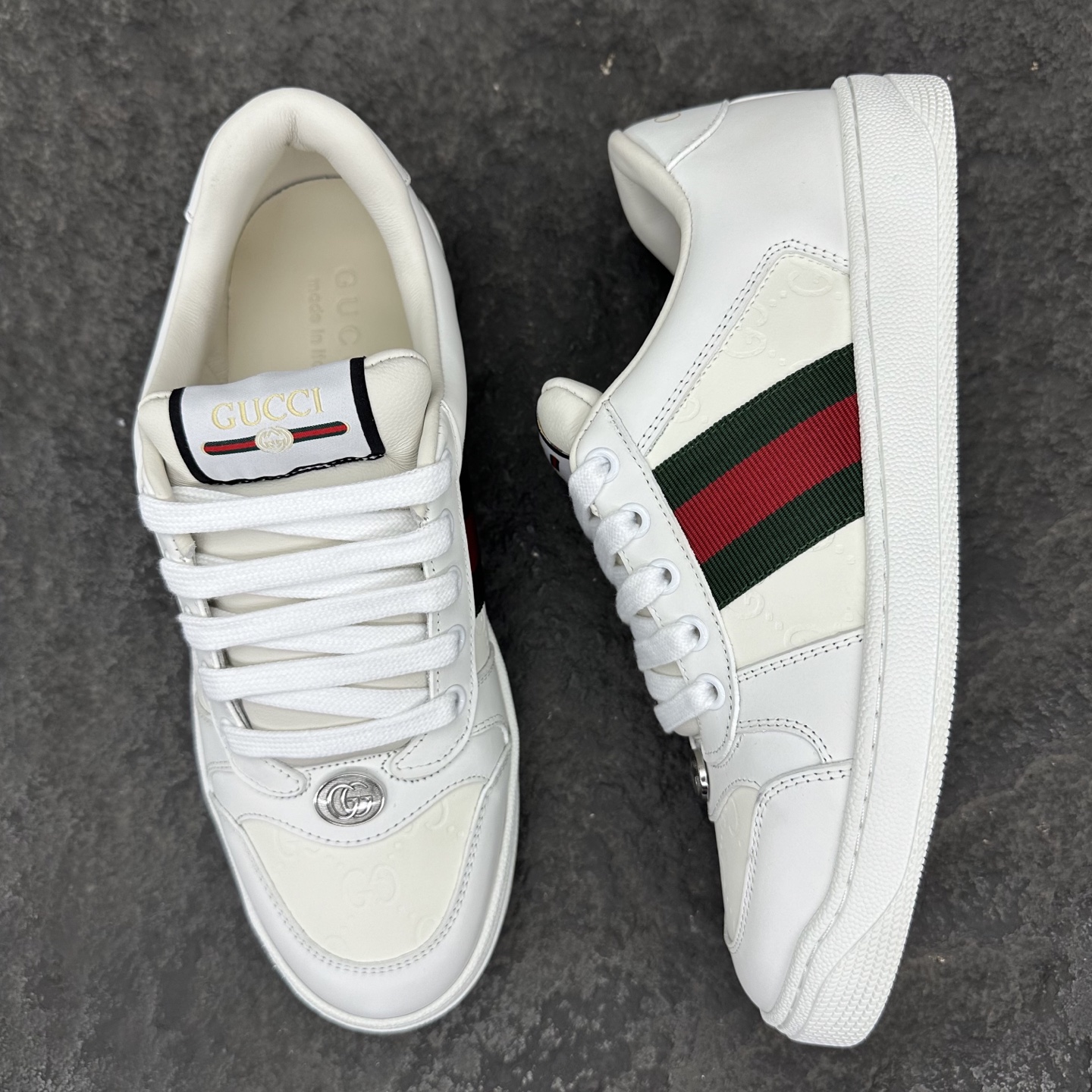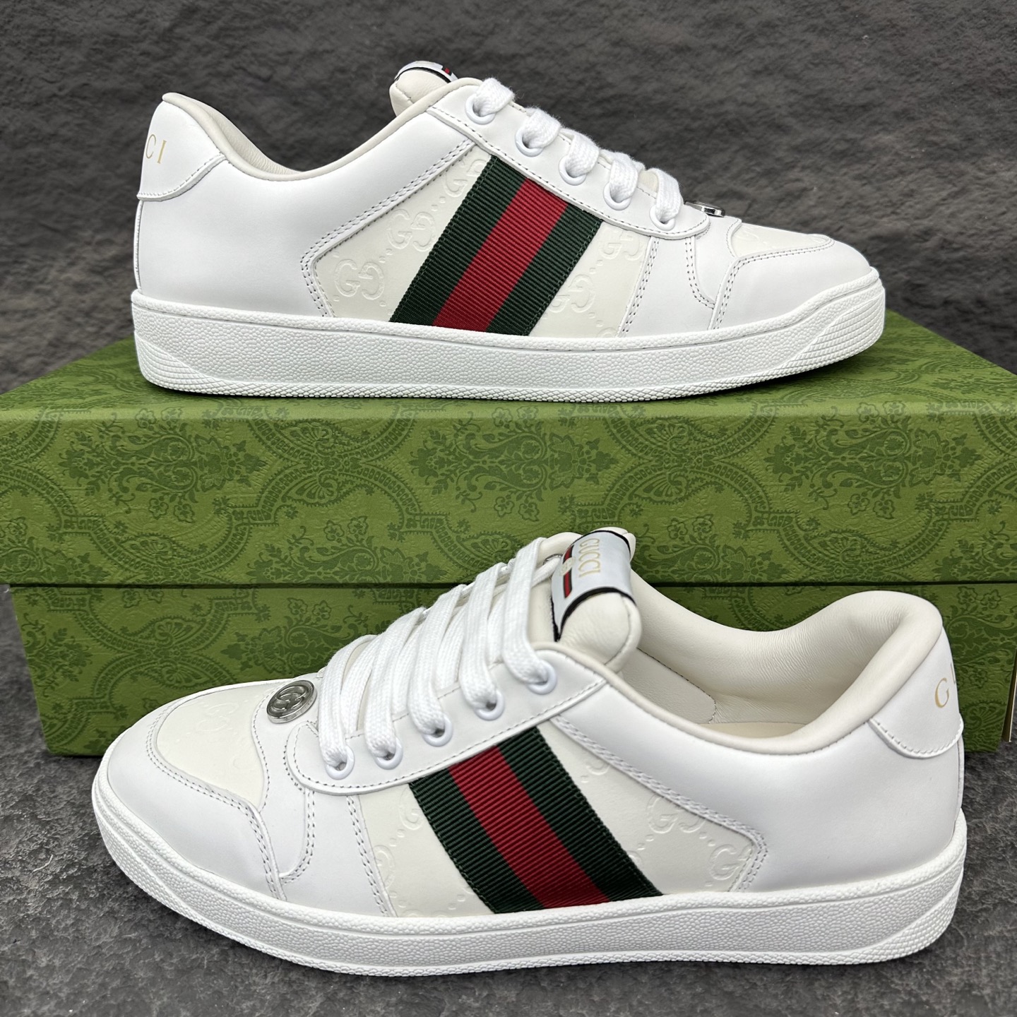 这款鞋子是AAAAA 1:1 质量 (非常棒). 使用了和原版一模一样的材料. 商标部分也保持了和古奇/Gucci一样. 图片拍摄是实物鞋子拍摄, 您所收到的实物保证和我们图片一模一样.