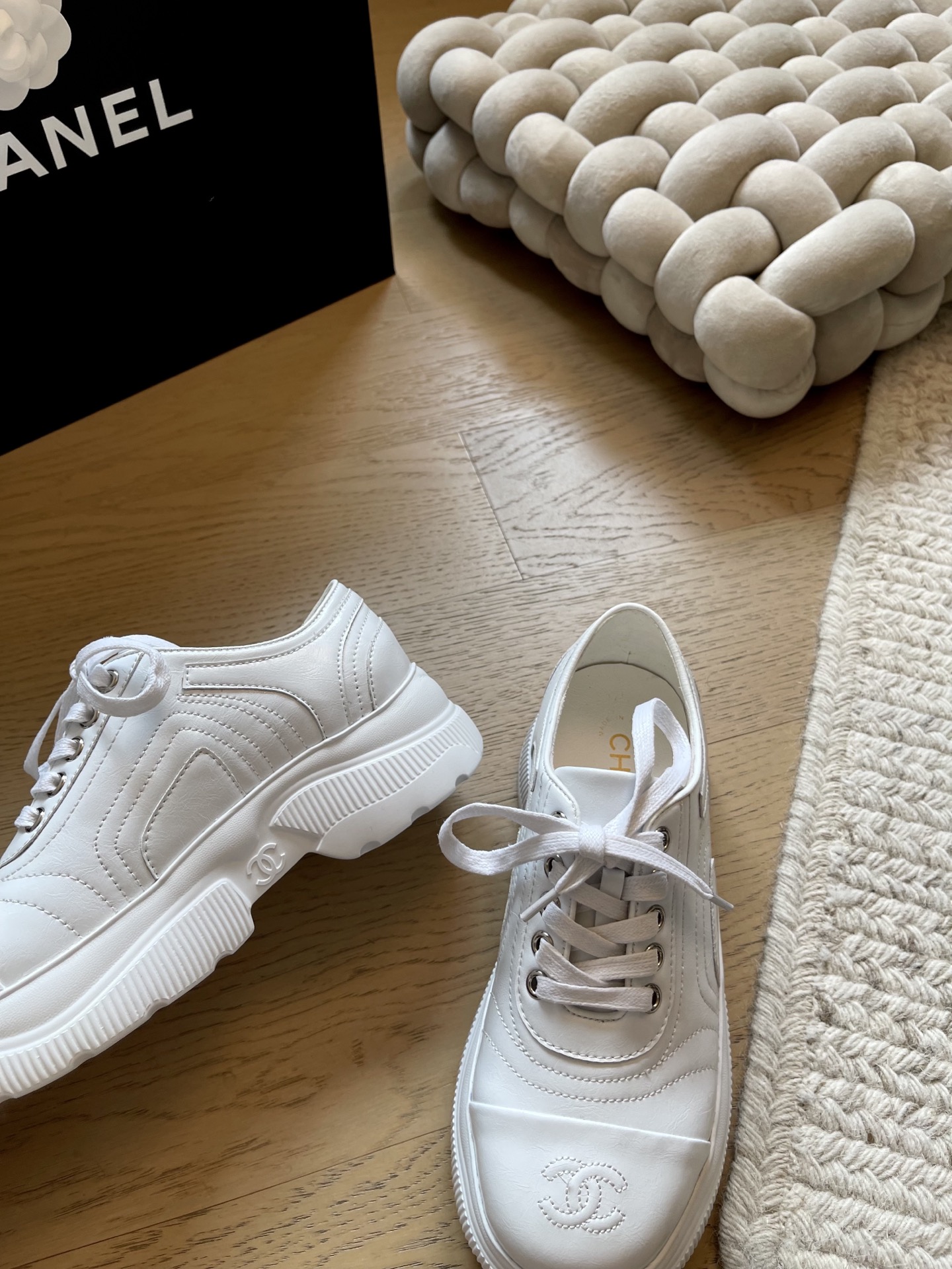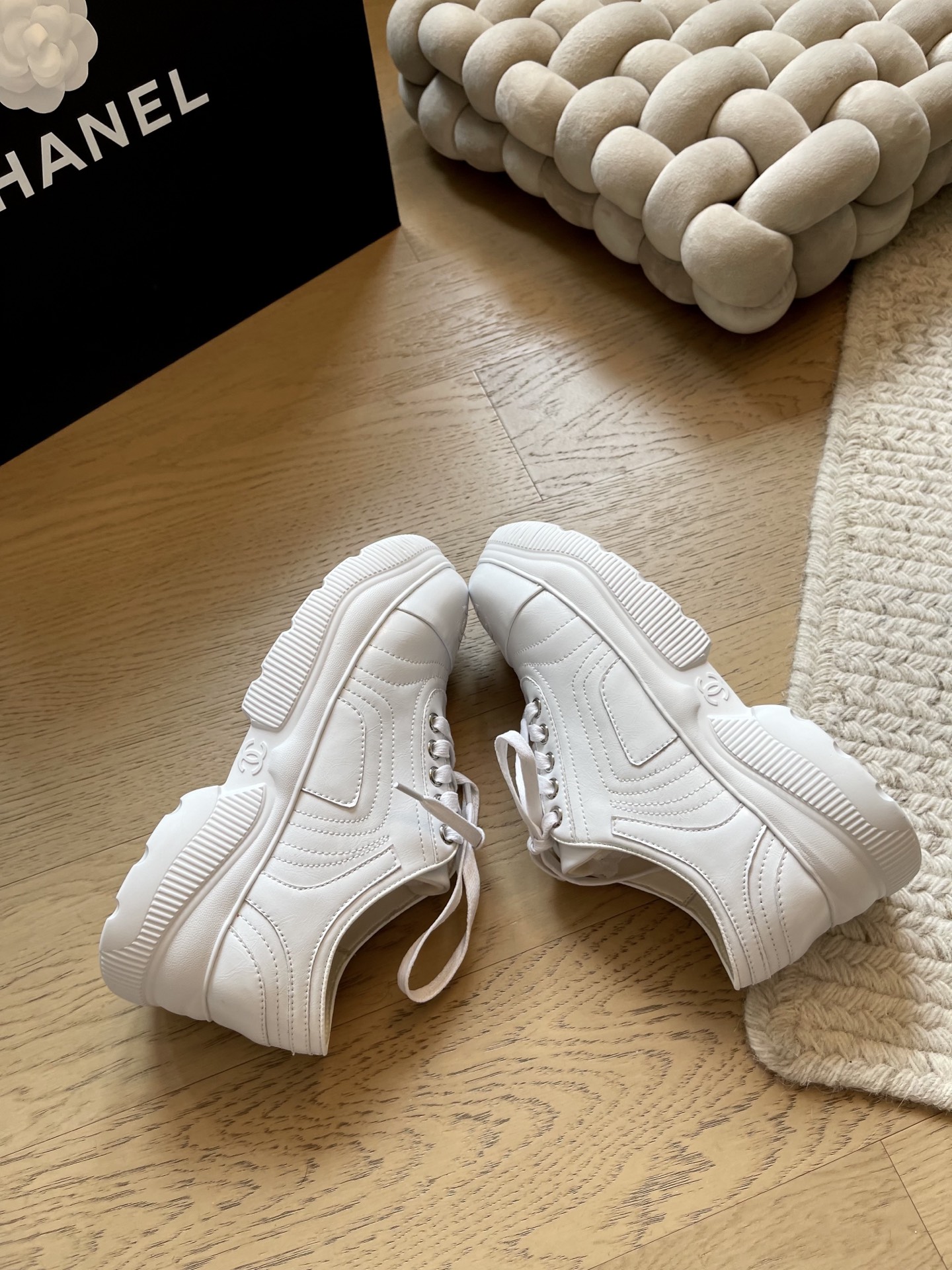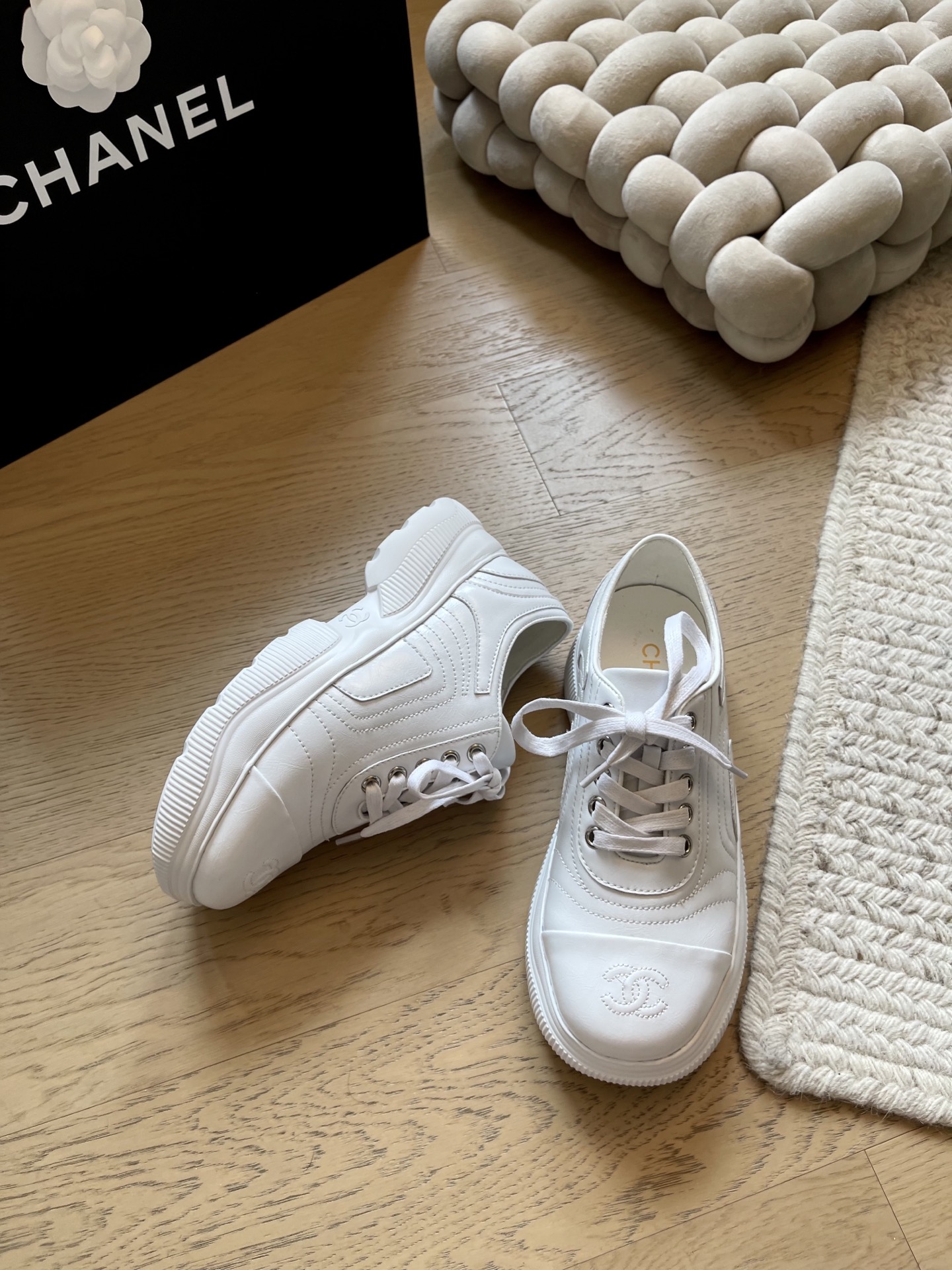 这款鞋子是AAAAA 1:1 质量 (非常棒). 使用了和原版一模一样的材料. 商标部分也保持了和香奈儿/Chanel一样. 图片拍摄是实物鞋子拍摄, 您所收到的实物保证和我们图片一模一样.