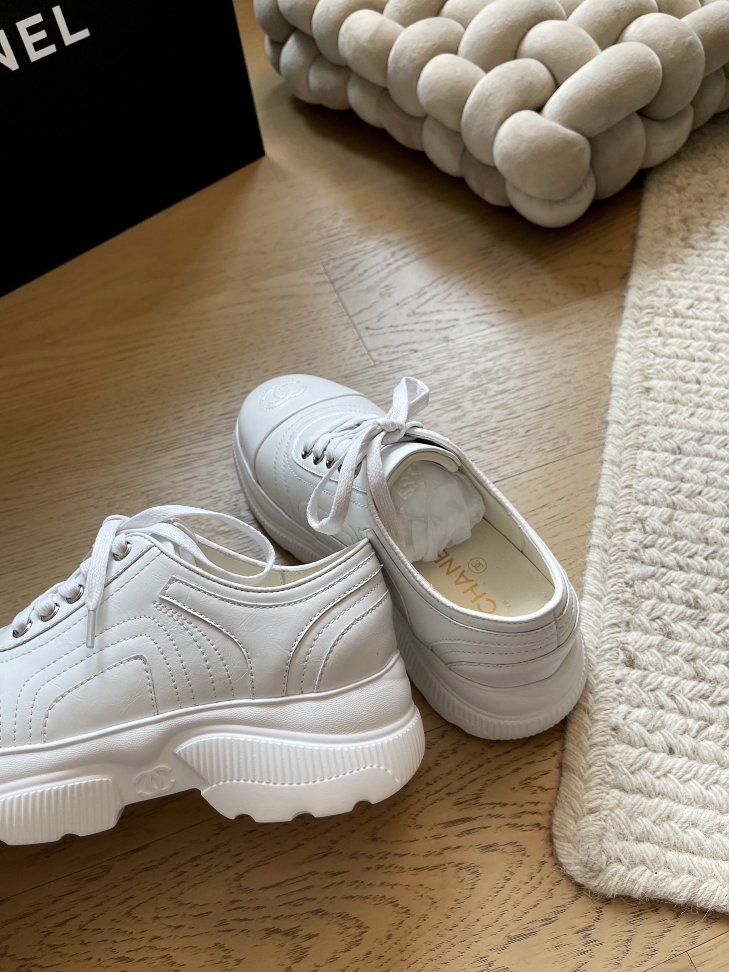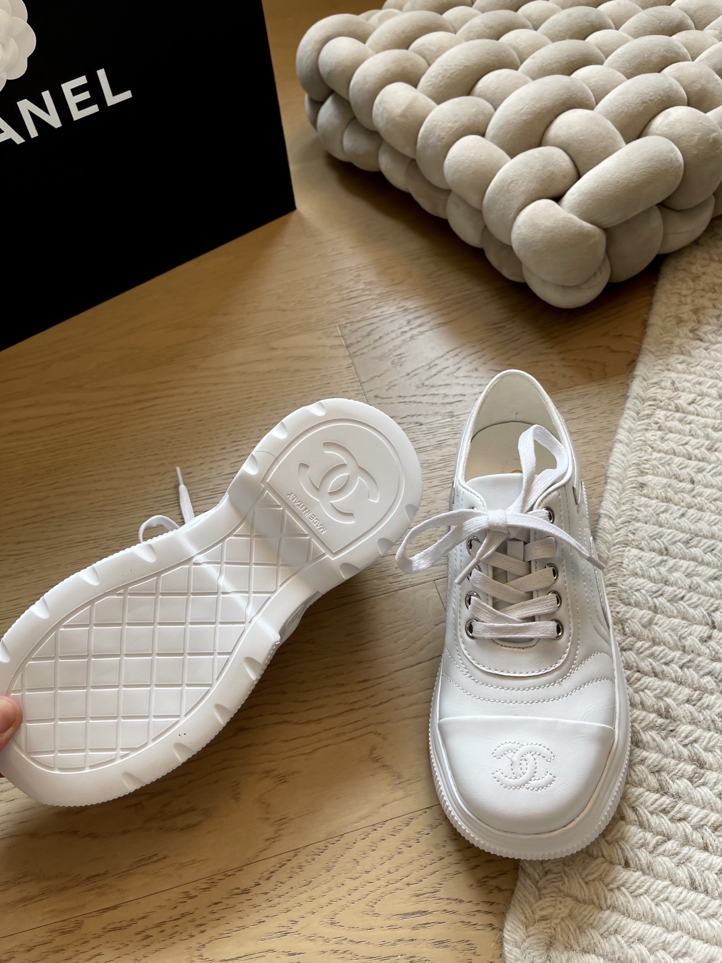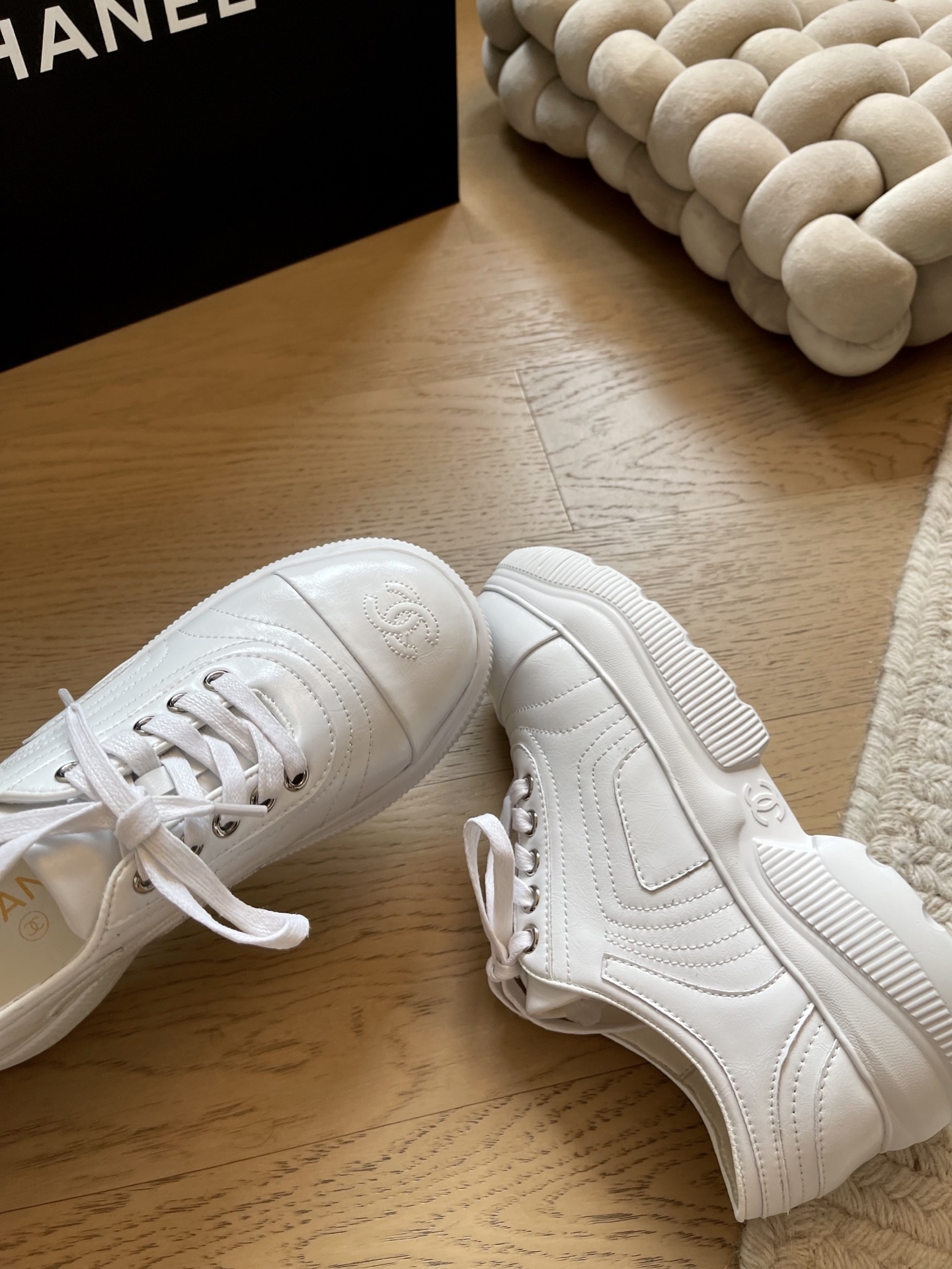 这款鞋子是AAAAA 1:1 质量 (非常棒). 使用了和原版一模一样的材料. 商标部分也保持了和香奈儿/Chanel一样. 图片拍摄是实物鞋子拍摄, 您所收到的实物保证和我们图片一模一样.