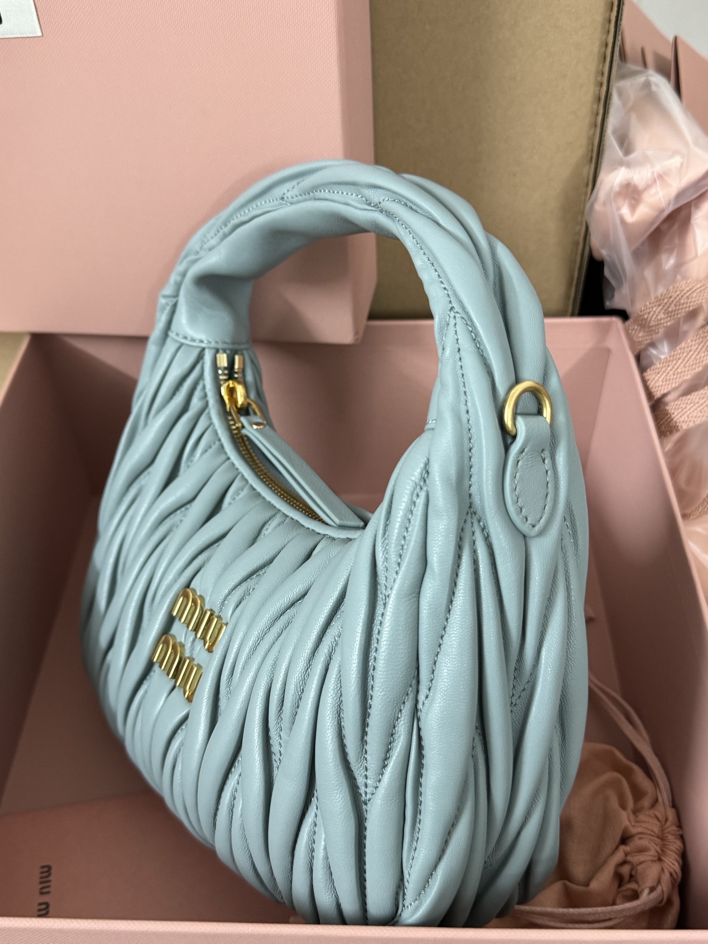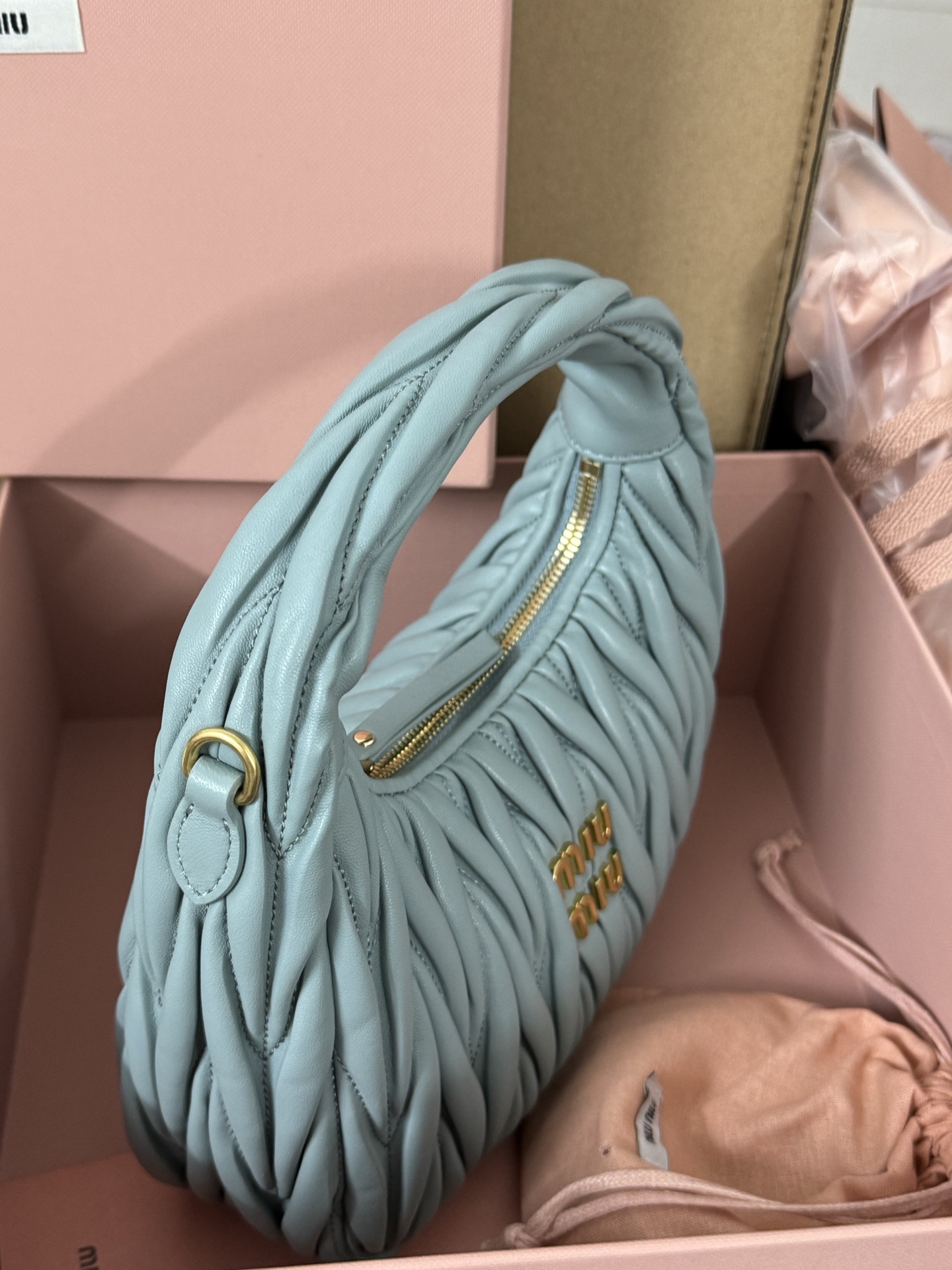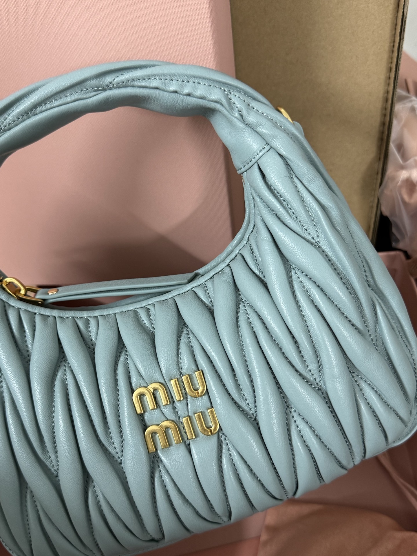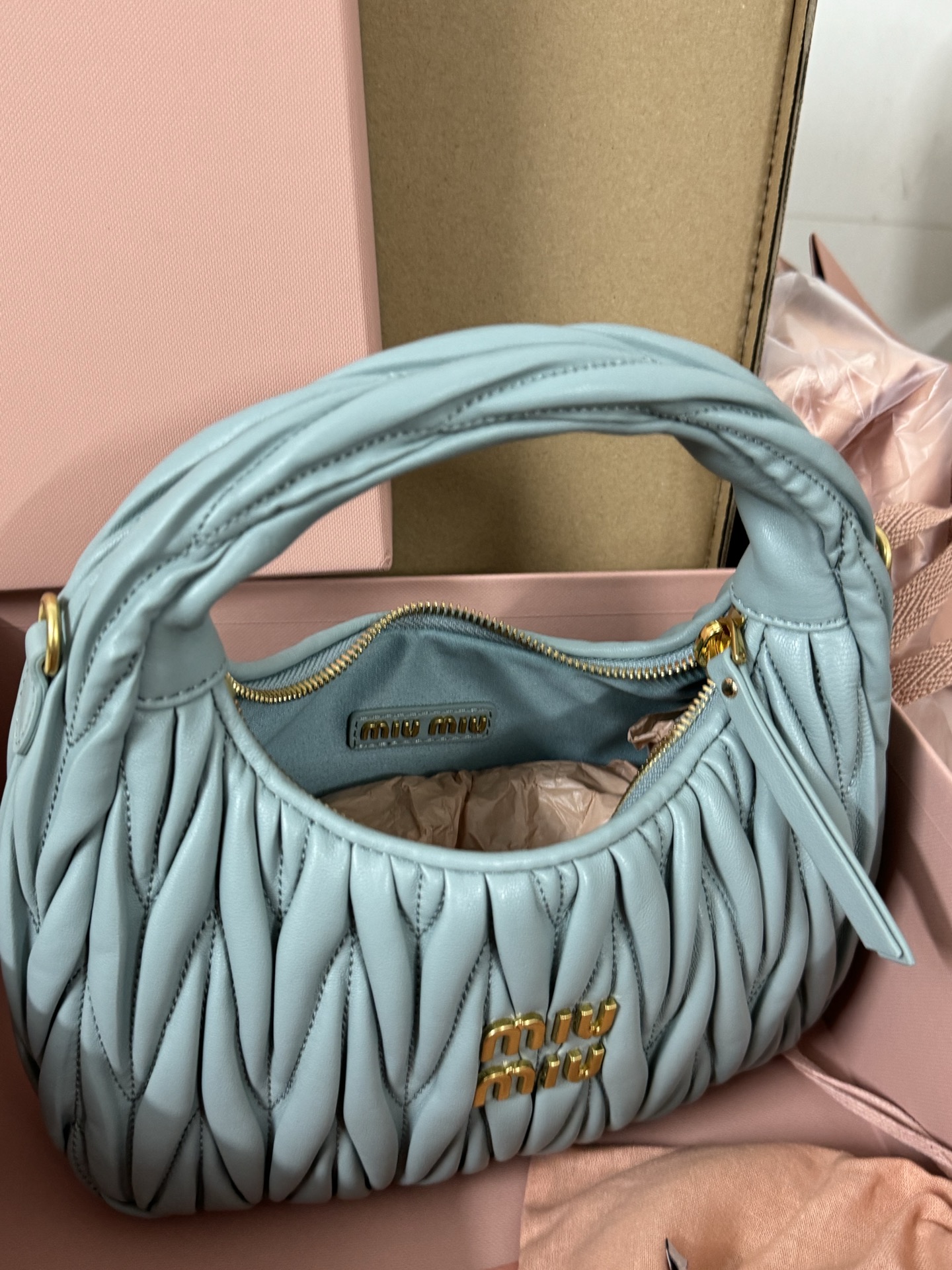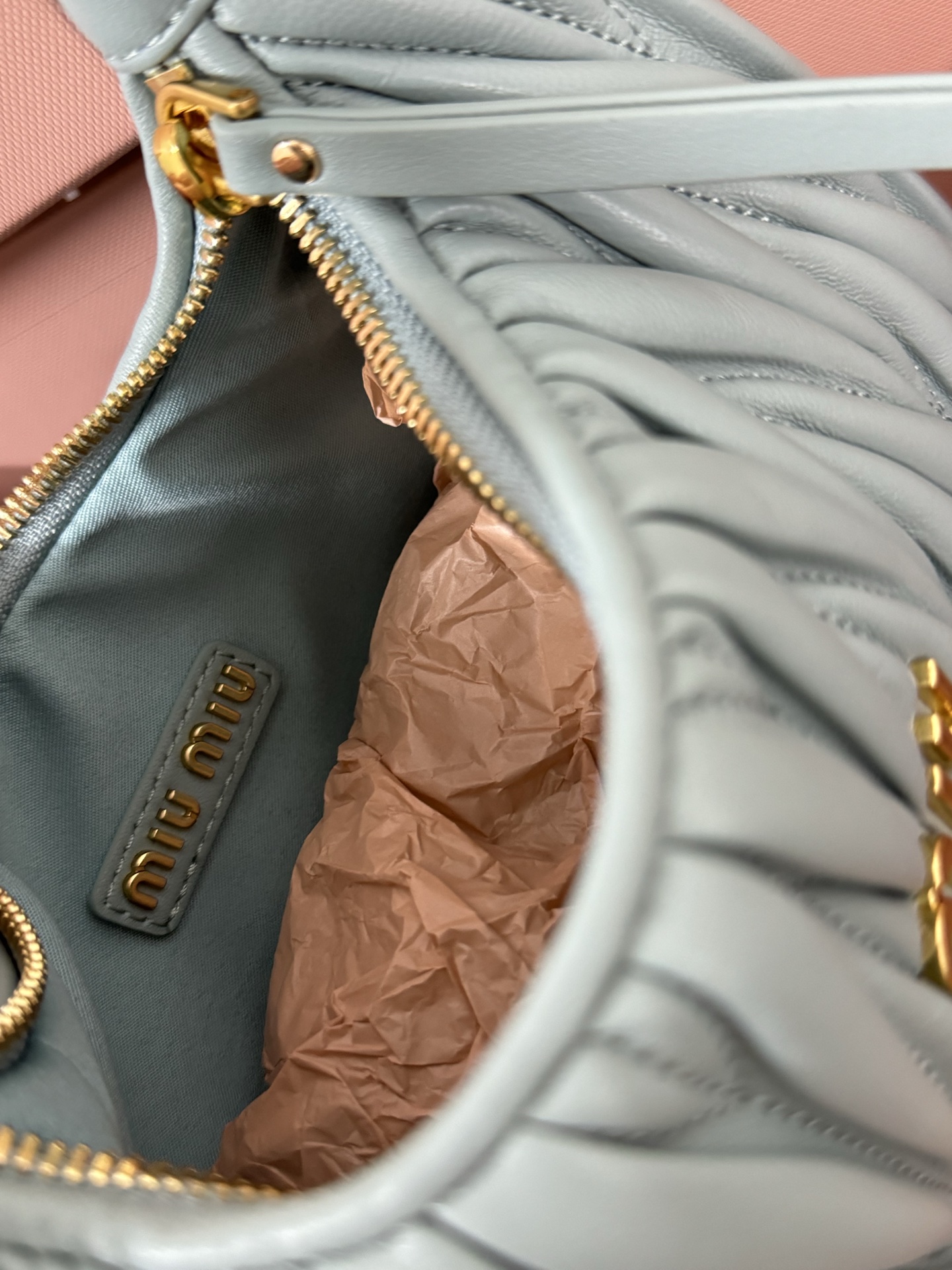 这款包包是AAAAA 1:1 质量 (非常棒). 使用了和原版一模一样的材料. 商标部分也保持了和缪缪/Miu Miu一样. 图片拍摄是实物包包拍摄, 您所收到的实物保证和我们图片一模一样.