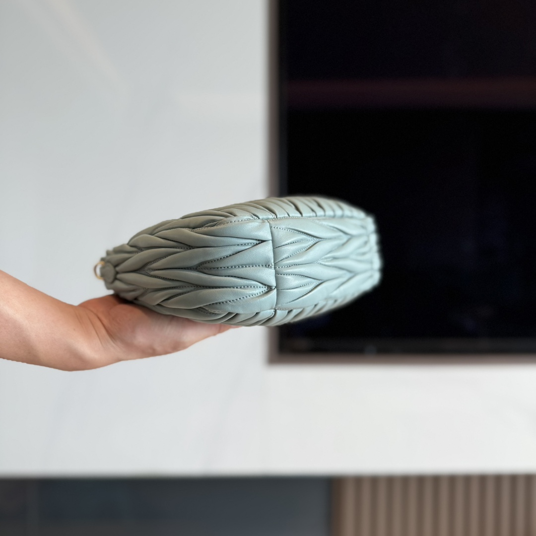 这款包包是AAAAA 1:1 质量 (非常棒). 使用了和原版一模一样的材料. 商标部分也保持了和缪缪/Miu Miu一样. 图片拍摄是实物包包拍摄, 您所收到的实物保证和我们图片一模一样.