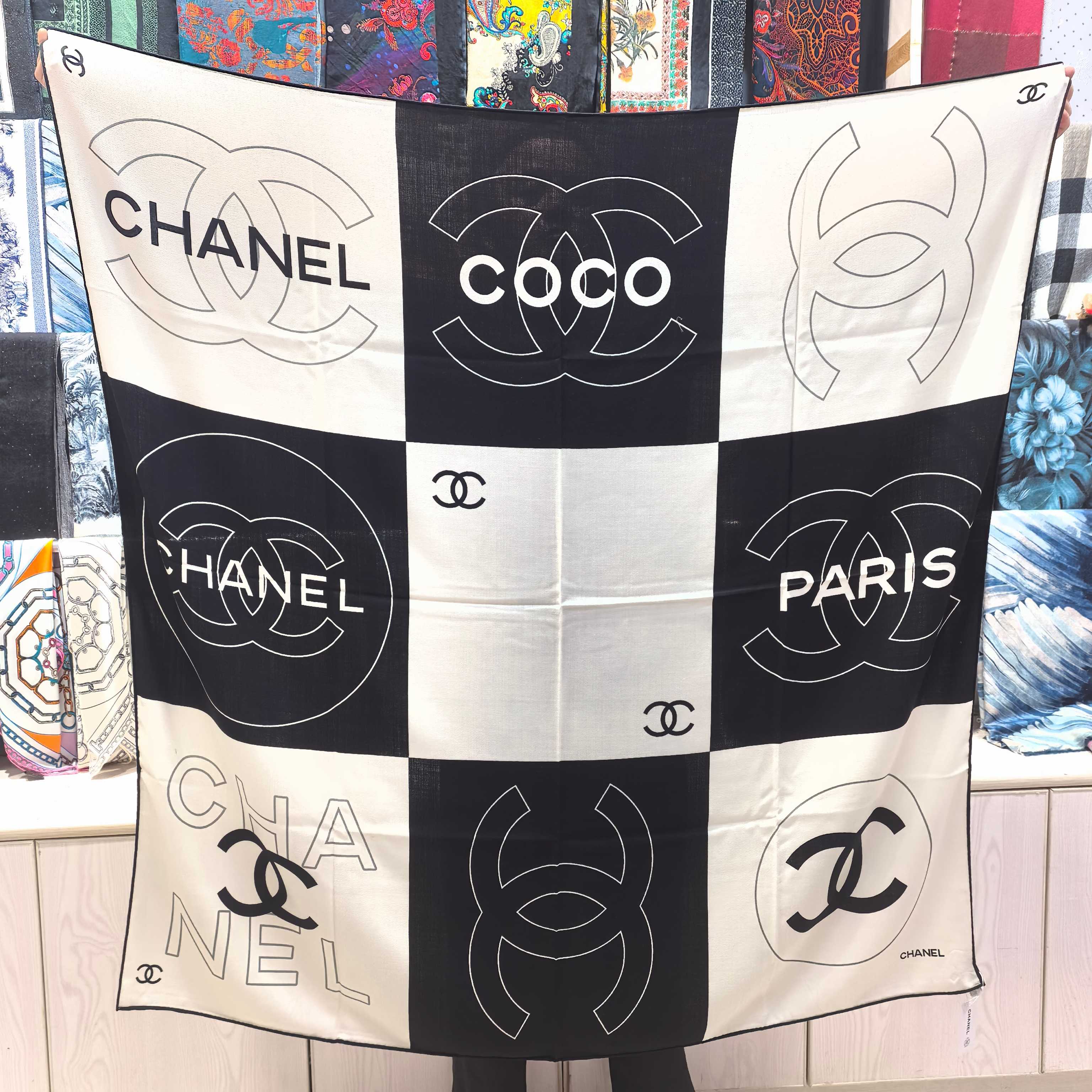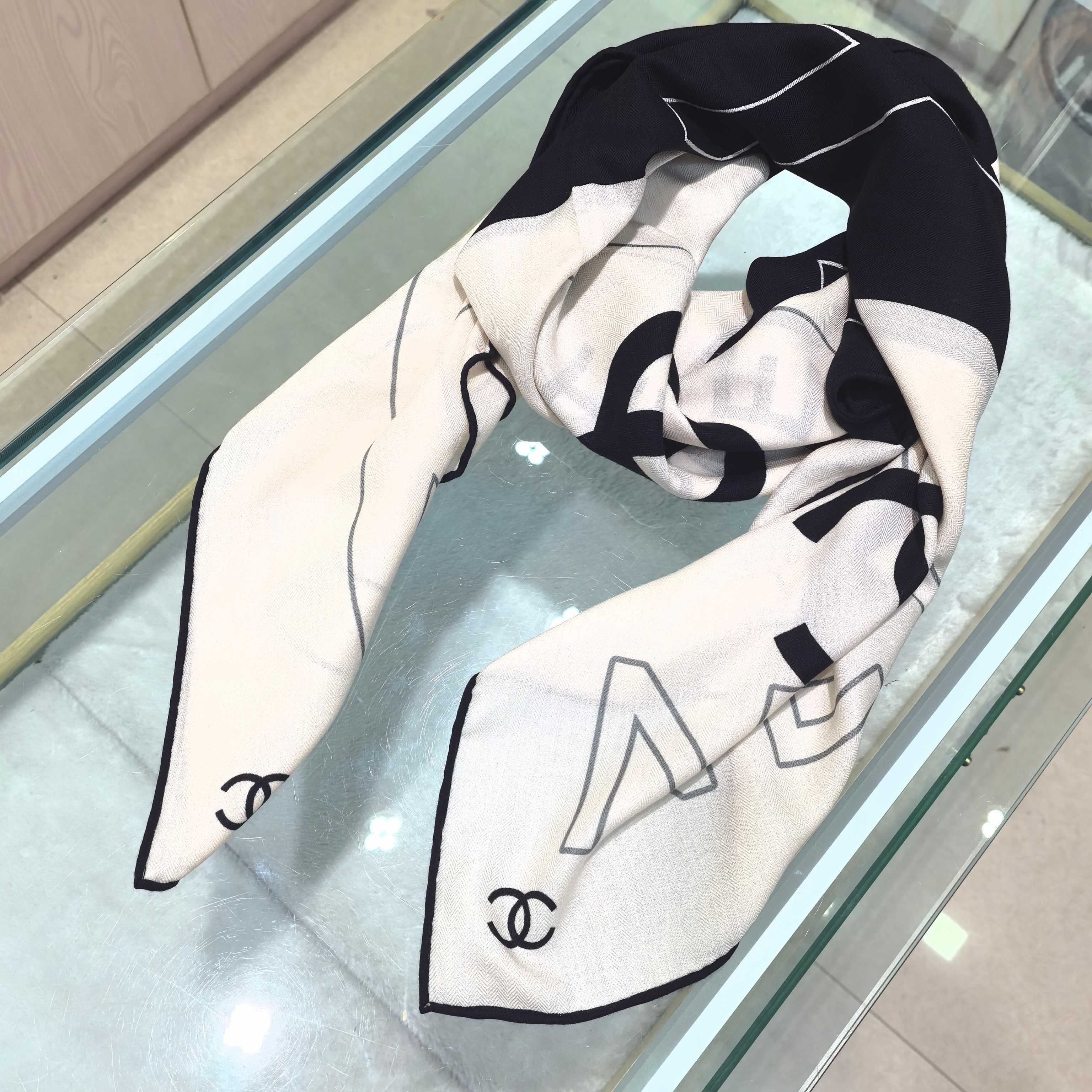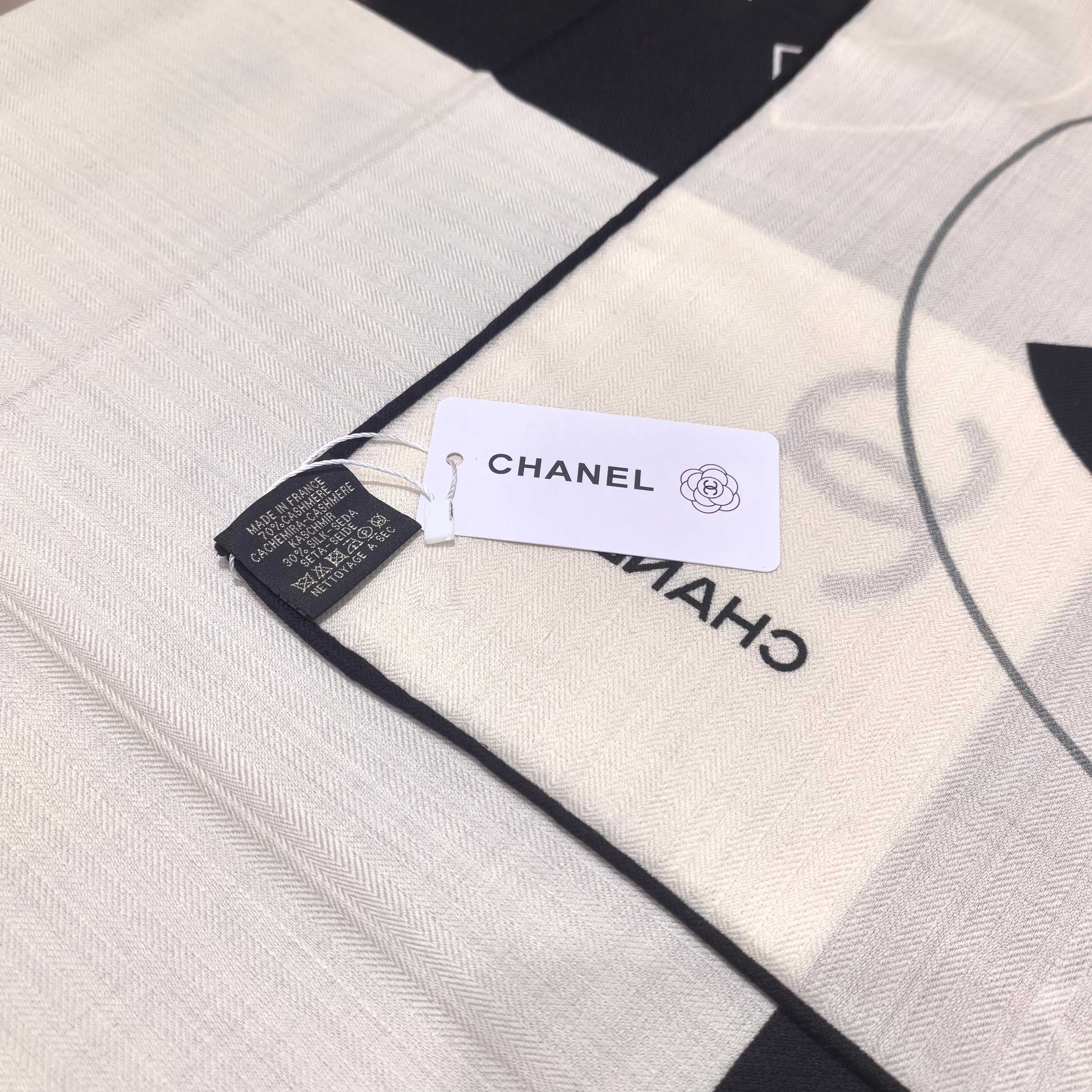 这款围巾是AAAAA 1:1 质量 (非常棒). 使用了和原版一模一样的材料. 商标部分也保持了和香奈儿/Chanel一样. 图片拍摄是实物围巾拍摄, 您所收到的实物保证和我们图片一模一样.