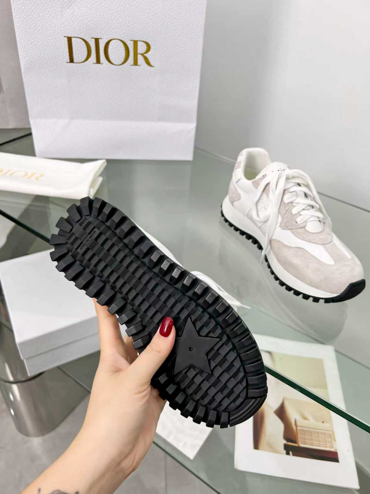 这款鞋子是AAAAA 1:1 质量 (非常棒). 使用了和原版一模一样的材料. 商标部分也保持了和迪奥/Dior一样. 图片拍摄是实物鞋子拍摄, 您所收到的实物保证和我们图片一模一样.