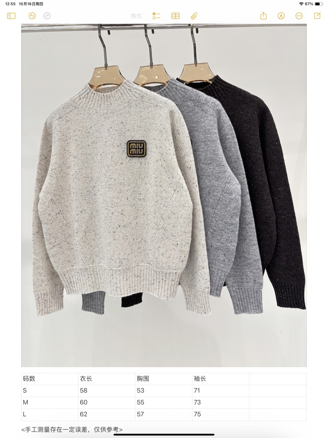 这款衣服是AAAAA 1:1 质量 (非常棒). 使用了和原版一模一样的材料. 商标部分也保持了和缪缪/Miu Miu一样. 图片拍摄是实物衣服拍摄, 您所收到的实物保证和我们图片一模一样.