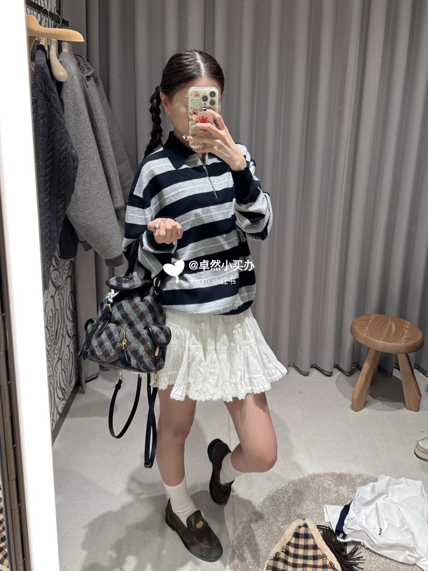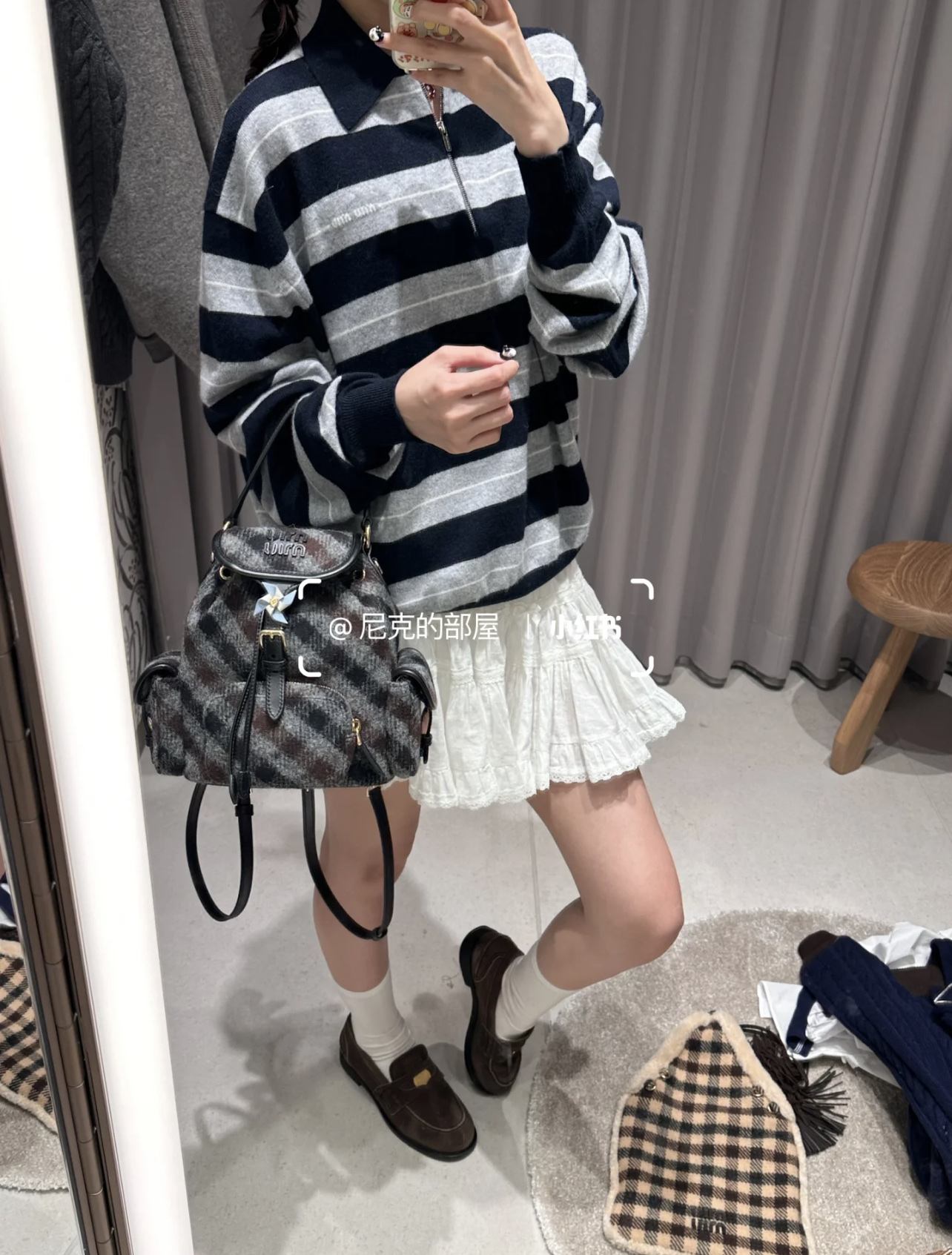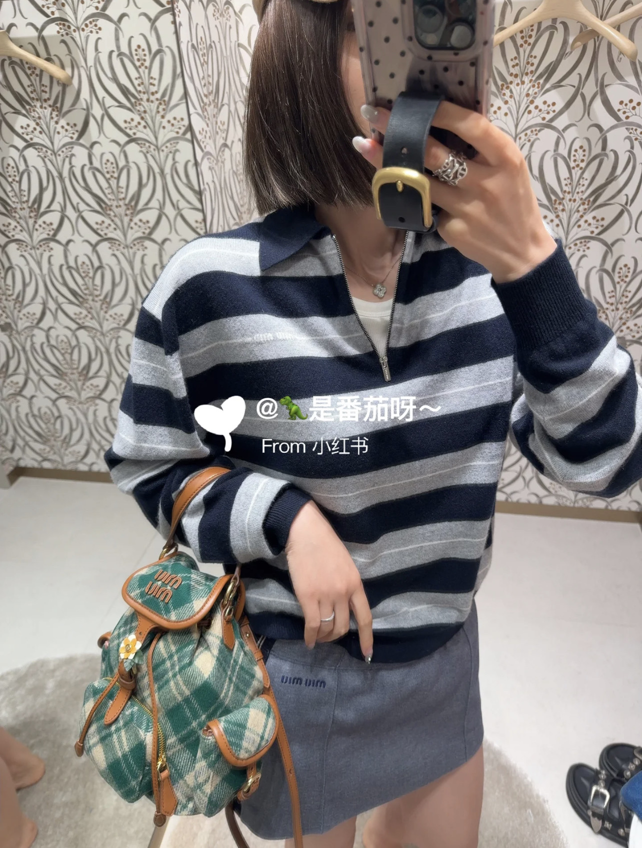 这款衣服是AAAAA 1:1 质量 (非常棒). 使用了和原版一模一样的材料. 商标部分也保持了和缪缪/Miu Miu一样. 图片拍摄是实物衣服拍摄, 您所收到的实物保证和我们图片一模一样.