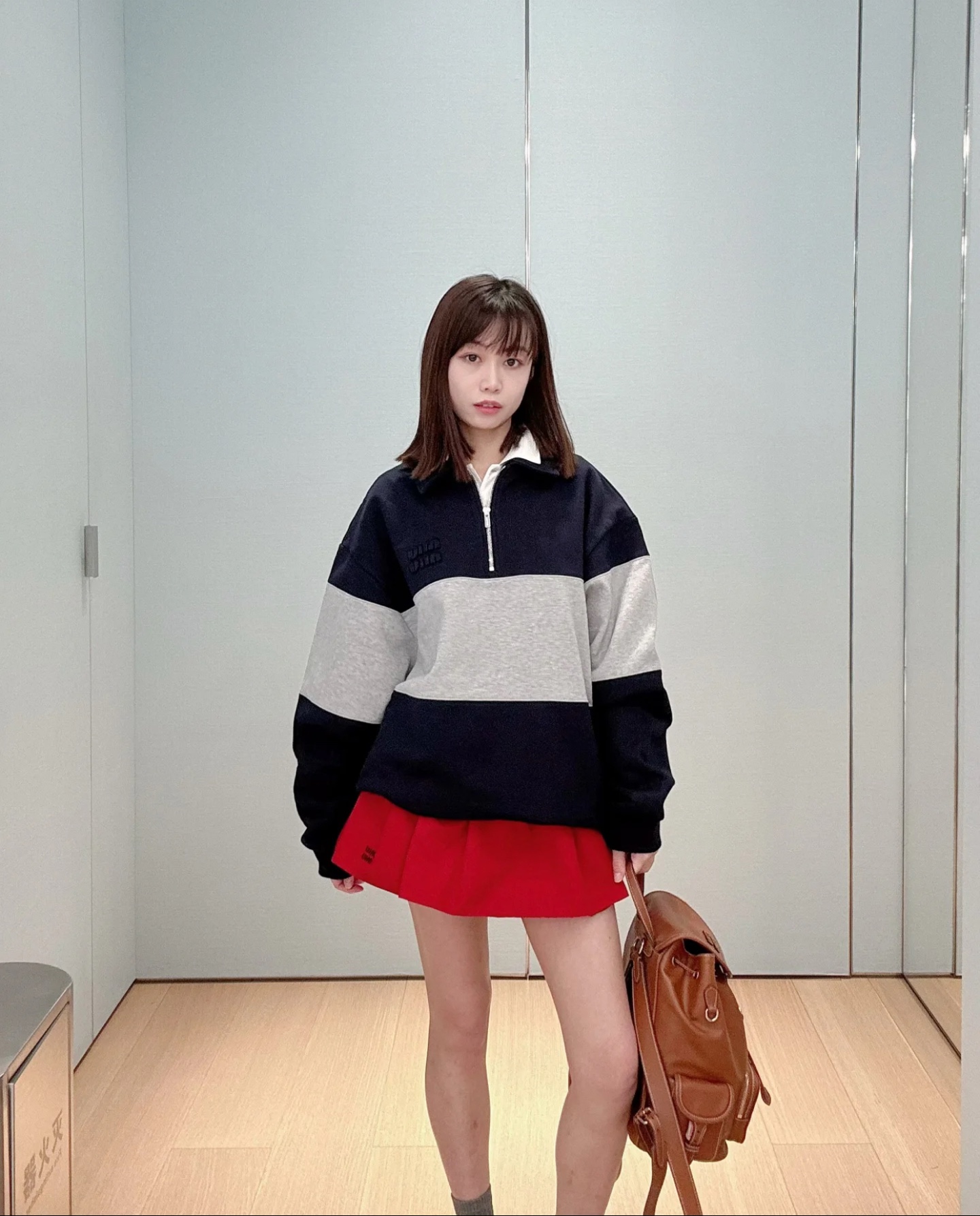 这款衣服是AAAAA 1:1 质量 (非常棒). 使用了和原版一模一样的材料. 商标部分也保持了和缪缪/Miu Miu一样. 图片拍摄是实物衣服拍摄, 您所收到的实物保证和我们图片一模一样.