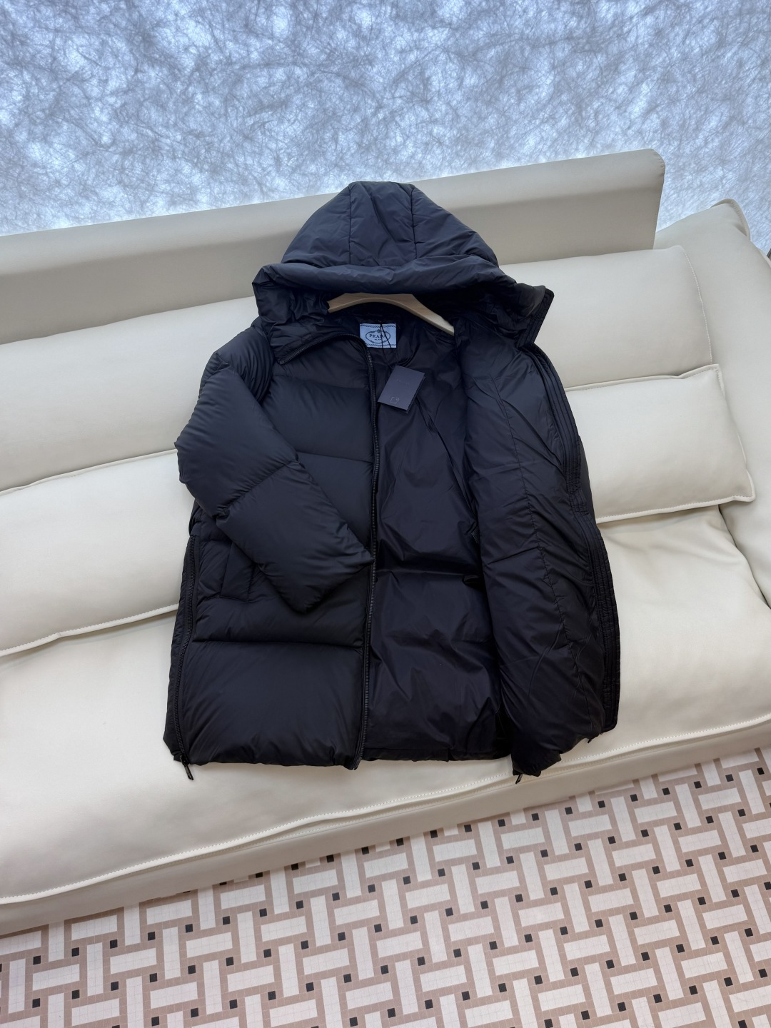 这款衣服是AAAAA 1:1 质量 (非常棒). 使用了和原版一模一样的材料. 商标部分也保持了和普拉达/Prada一样. 图片拍摄是实物衣服拍摄, 您所收到的实物保证和我们图片一模一样.