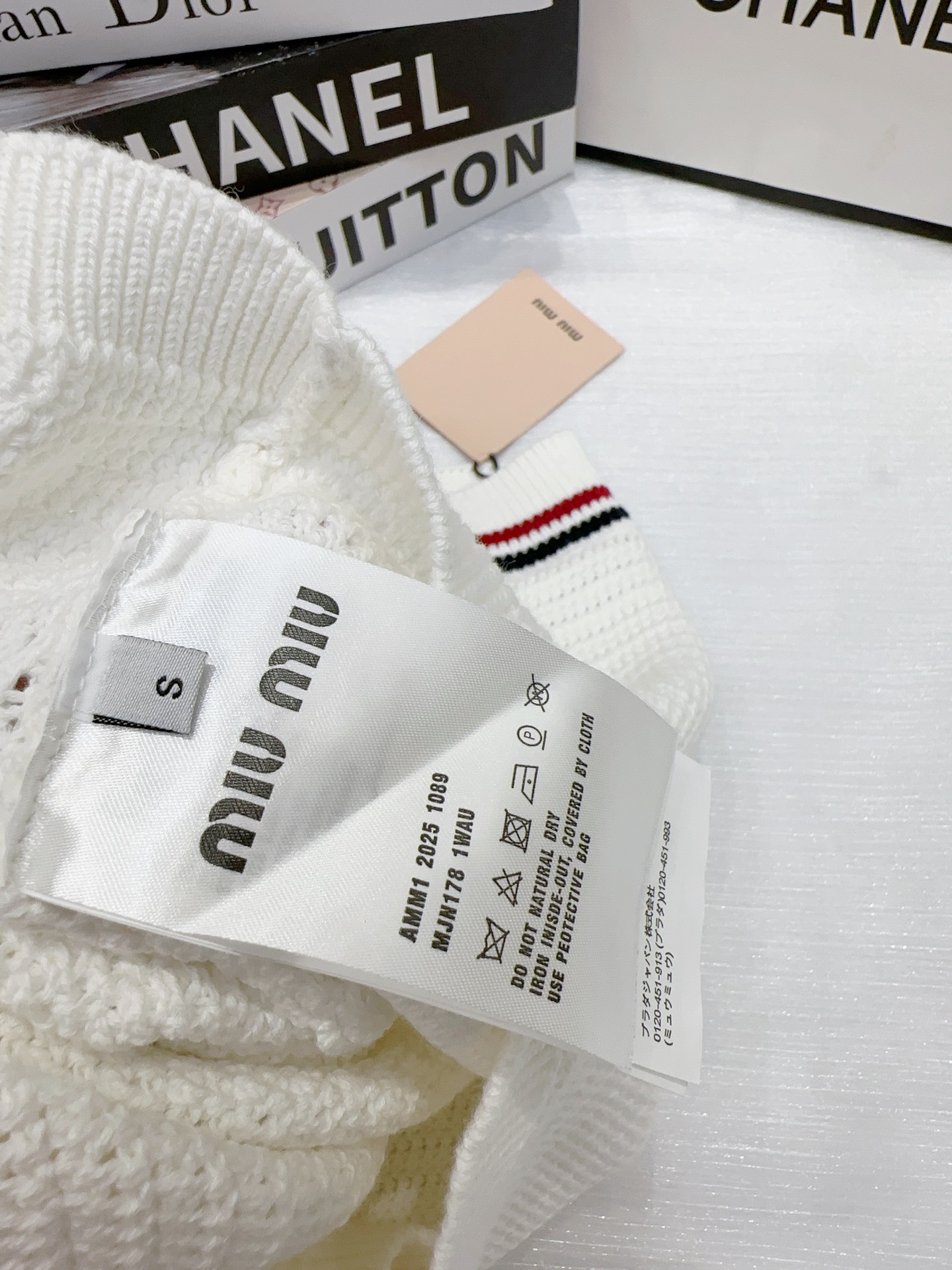 这款衣服是AAAAA 1:1 质量 (非常棒). 使用了和原版一模一样的材料. 商标部分也保持了和缪缪/Miu Miu一样. 图片拍摄是实物衣服拍摄, 您所收到的实物保证和我们图片一模一样.