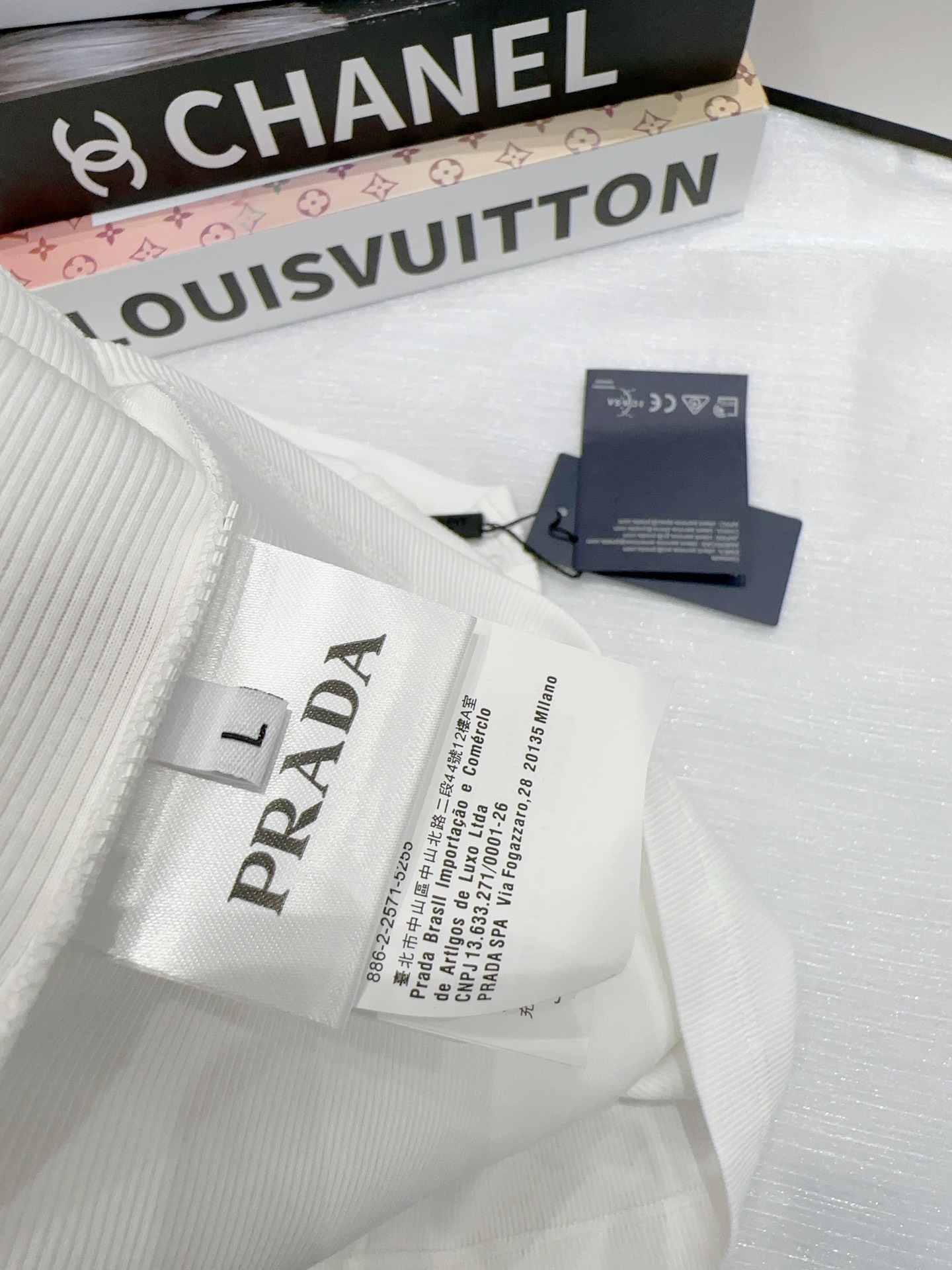 这款衣服是AAAAA 1:1 质量 (非常棒). 使用了和原版一模一样的材料. 商标部分也保持了和普拉达/Prada一样. 图片拍摄是实物衣服拍摄, 您所收到的实物保证和我们图片一模一样.
