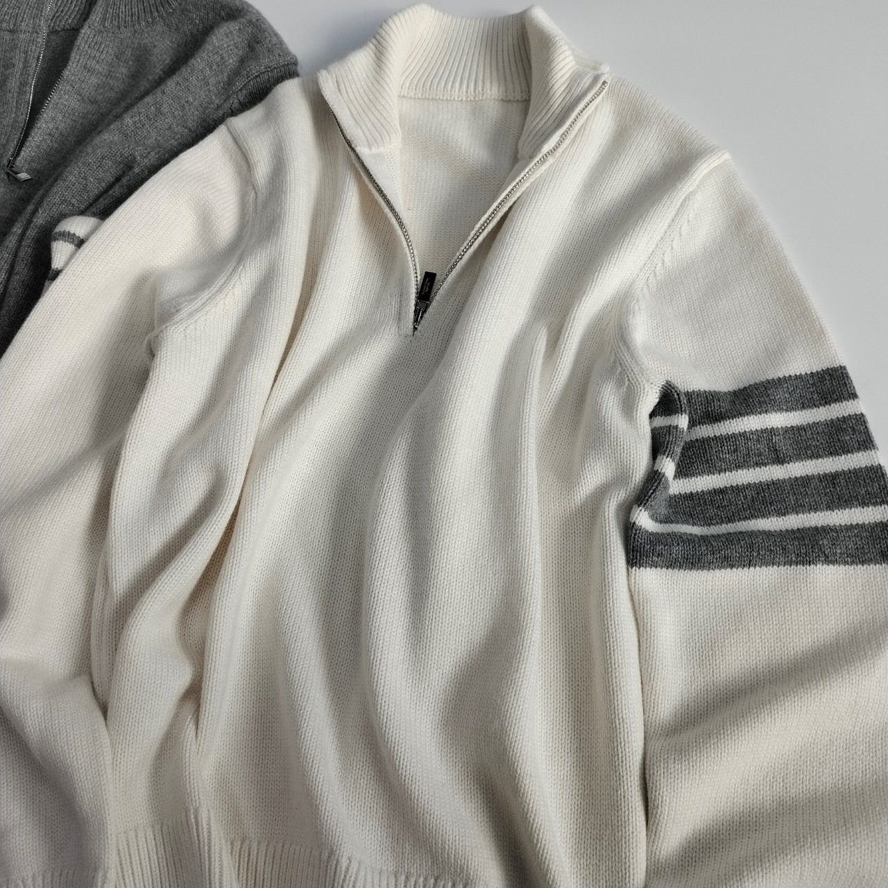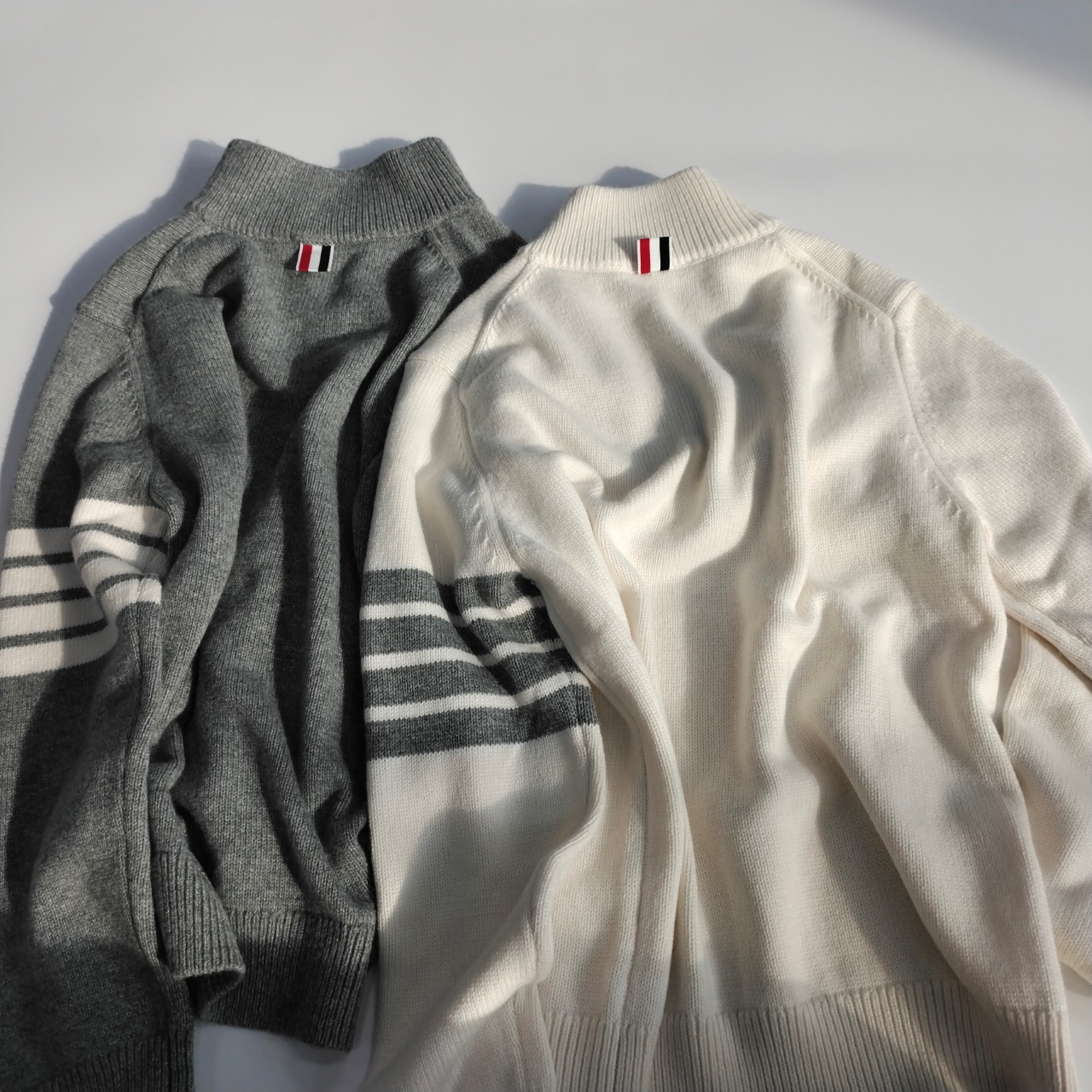 这款衣服是AAAAA 1:1 质量 (非常棒). 使用了和原版一模一样的材料. 商标部分也保持了和汤姆布朗/Thom Browne一样. 图片拍摄是实物衣服拍摄, 您所收到的实物保证和我们图片一模一样.