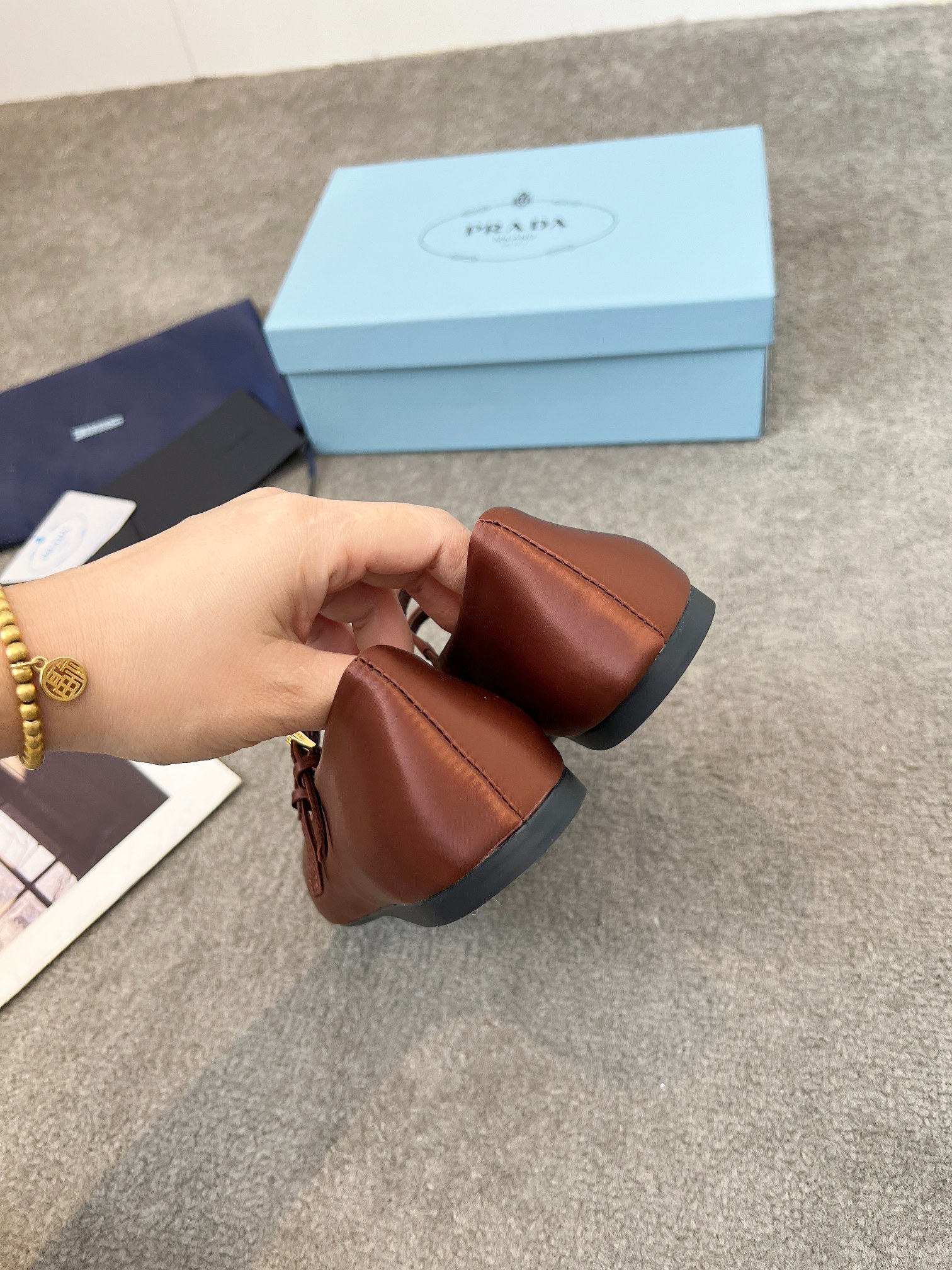 这款鞋子是AAAAA 1:1 质量 (非常棒). 使用了和原版一模一样的材料. 商标部分也保持了和普拉达/Prada一样. 图片拍摄是实物鞋子拍摄, 您所收到的实物保证和我们图片一模一样.