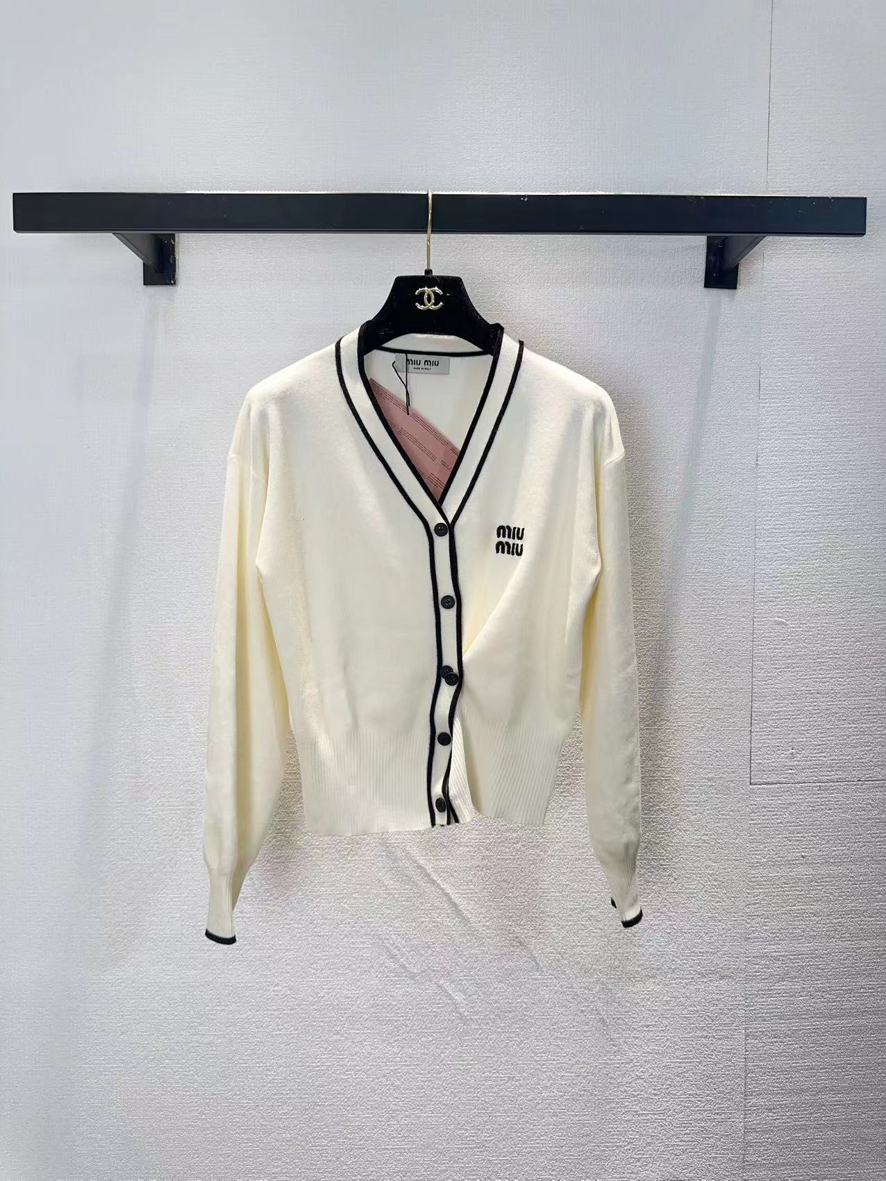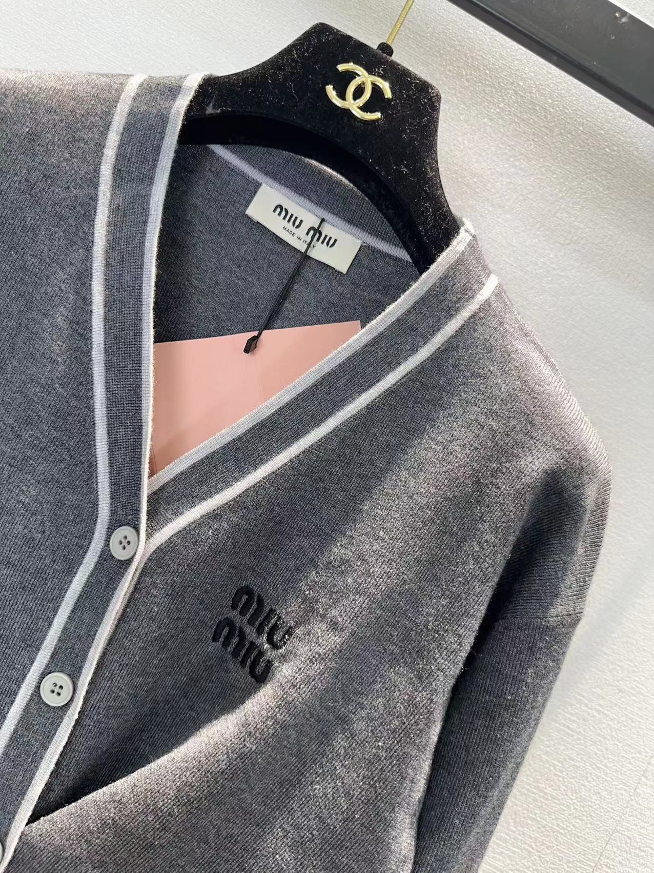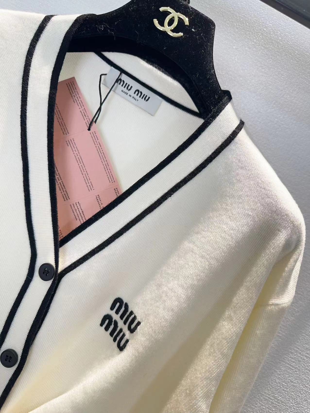 这款衣服是AAAAA 1:1 质量 (非常棒). 使用了和原版一模一样的材料. 商标部分也保持了和缪缪/Miu Miu一样. 图片拍摄是实物衣服拍摄, 您所收到的实物保证和我们图片一模一样.