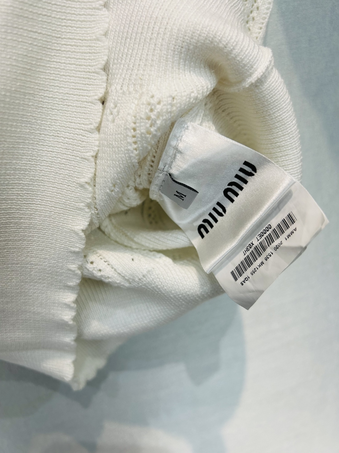 这款衣服是AAAAA 1:1 质量 (非常棒). 使用了和原版一模一样的材料. 商标部分也保持了和缪缪/Miu Miu一样. 图片拍摄是实物衣服拍摄, 您所收到的实物保证和我们图片一模一样.