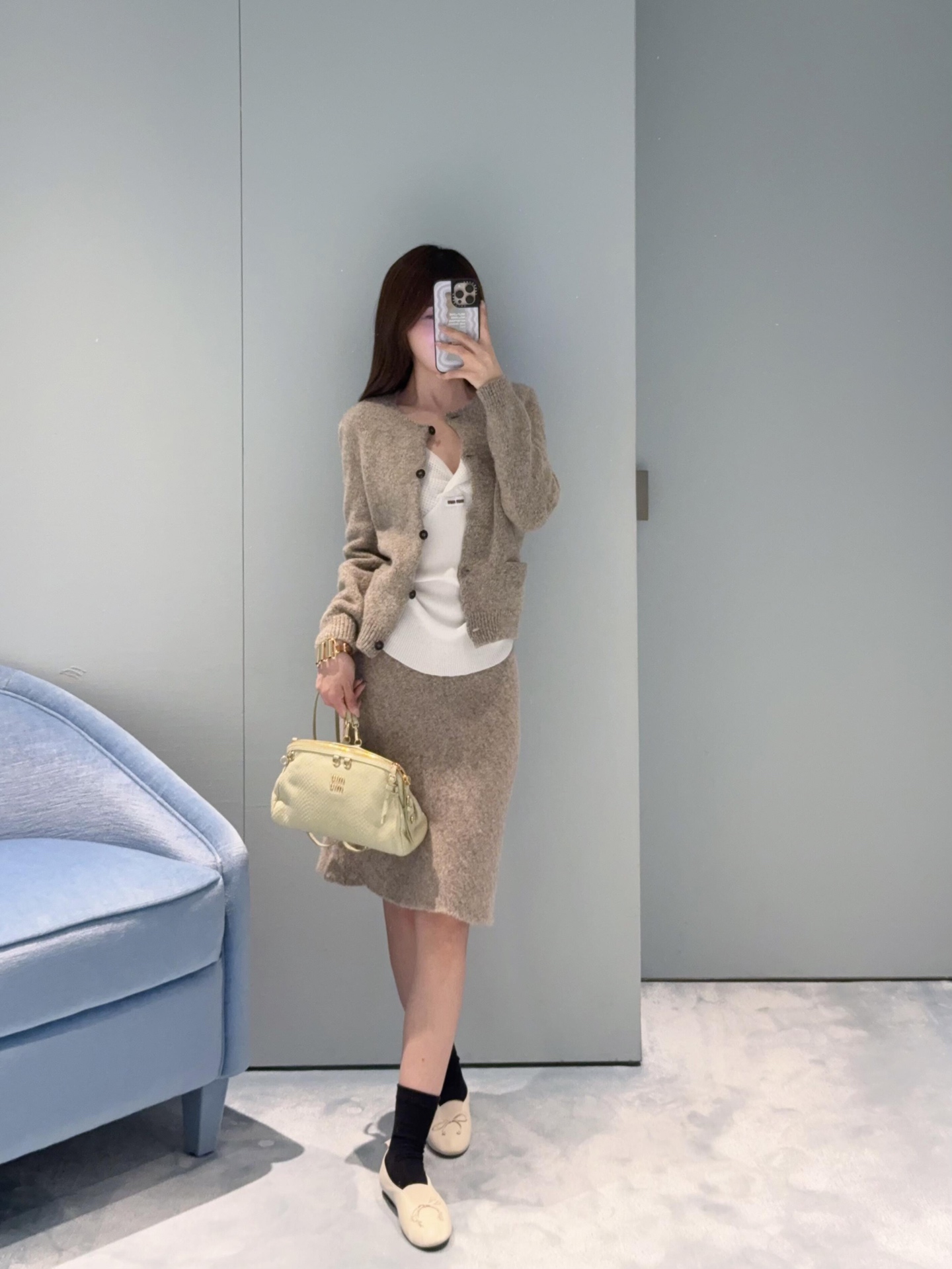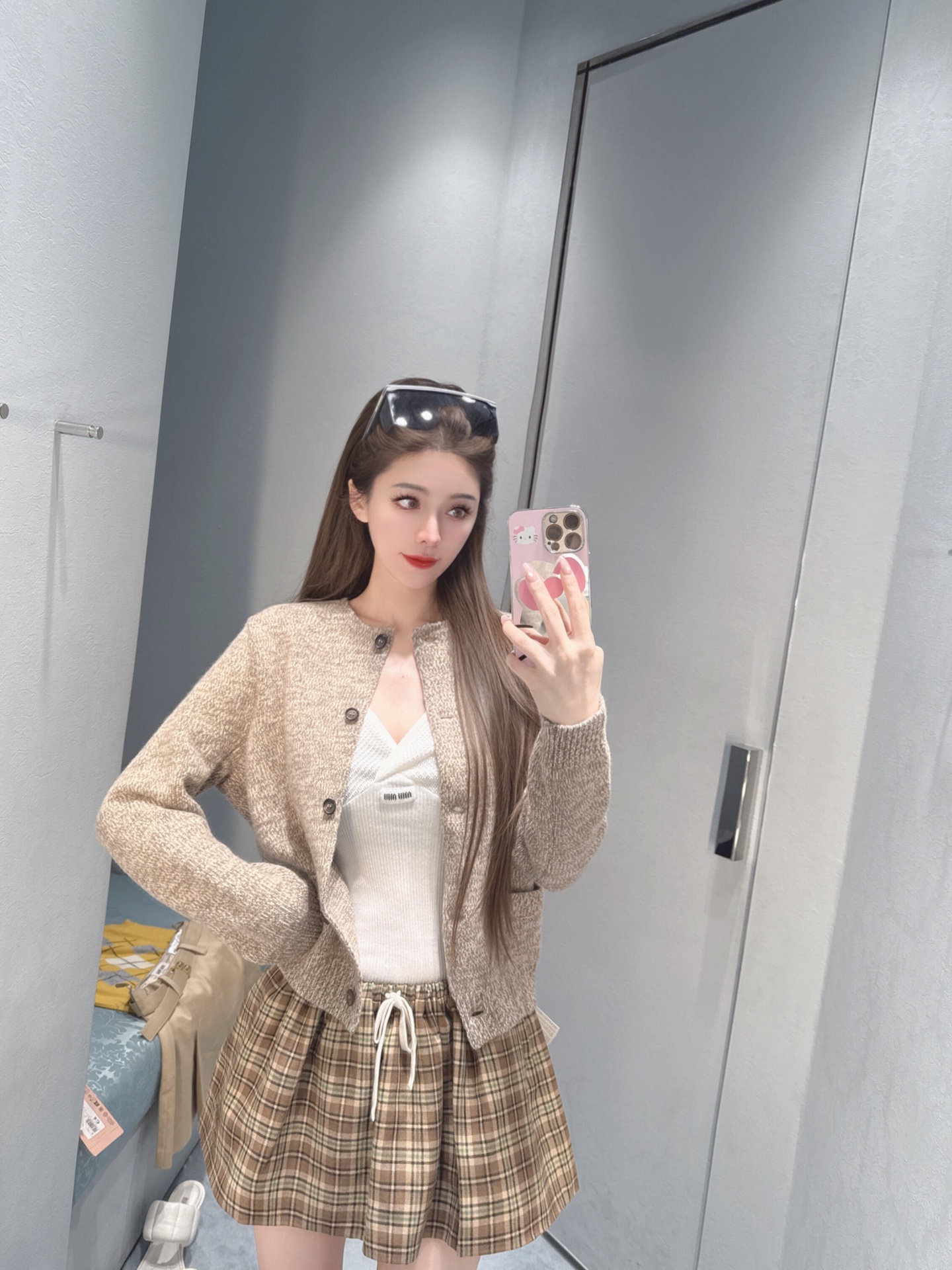 这款衣服是AAAAA 1:1 质量 (非常棒). 使用了和原版一模一样的材料. 商标部分也保持了和缪缪/Miu Miu一样. 图片拍摄是实物衣服拍摄, 您所收到的实物保证和我们图片一模一样.