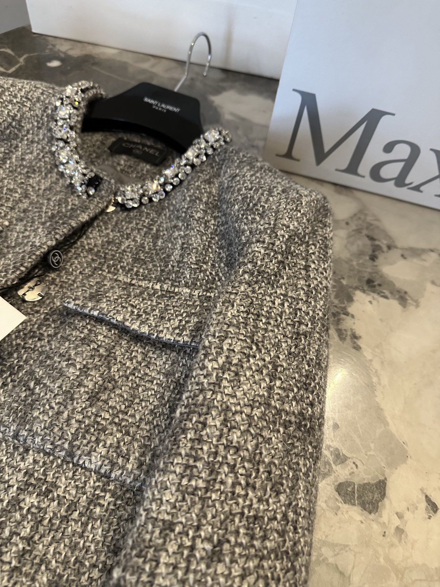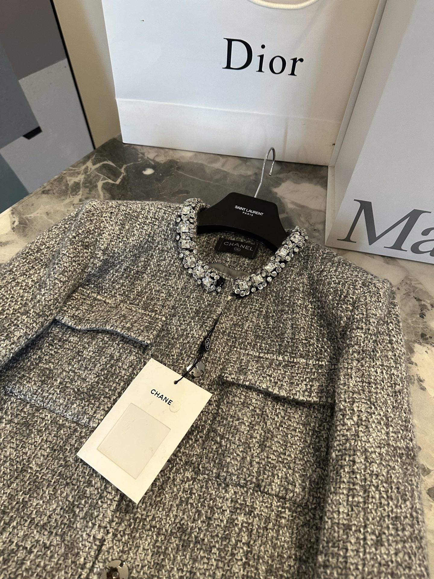 这款衣服是AAAAA 1:1 质量 (非常棒). 使用了和原版一模一样的材料. 商标部分也保持了和香奈儿/Chanel一样. 图片拍摄是实物衣服拍摄, 您所收到的实物保证和我们图片一模一样.