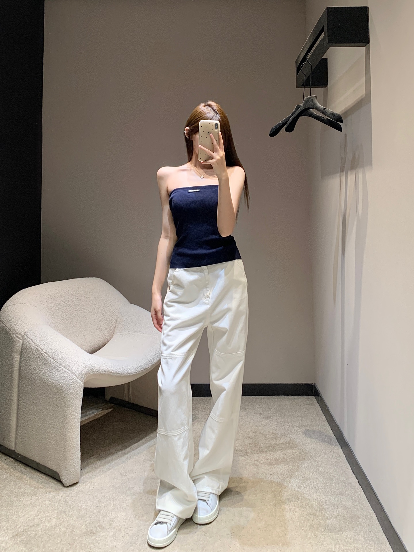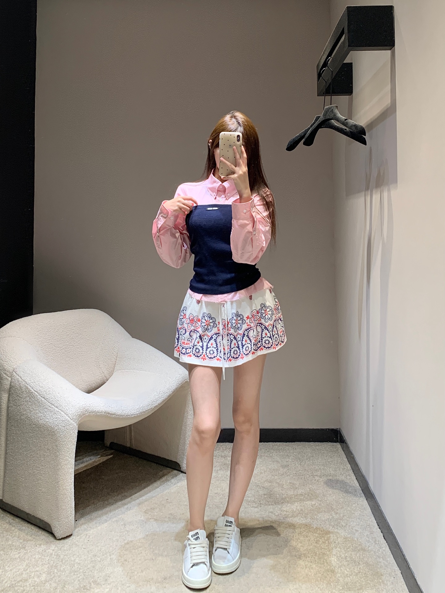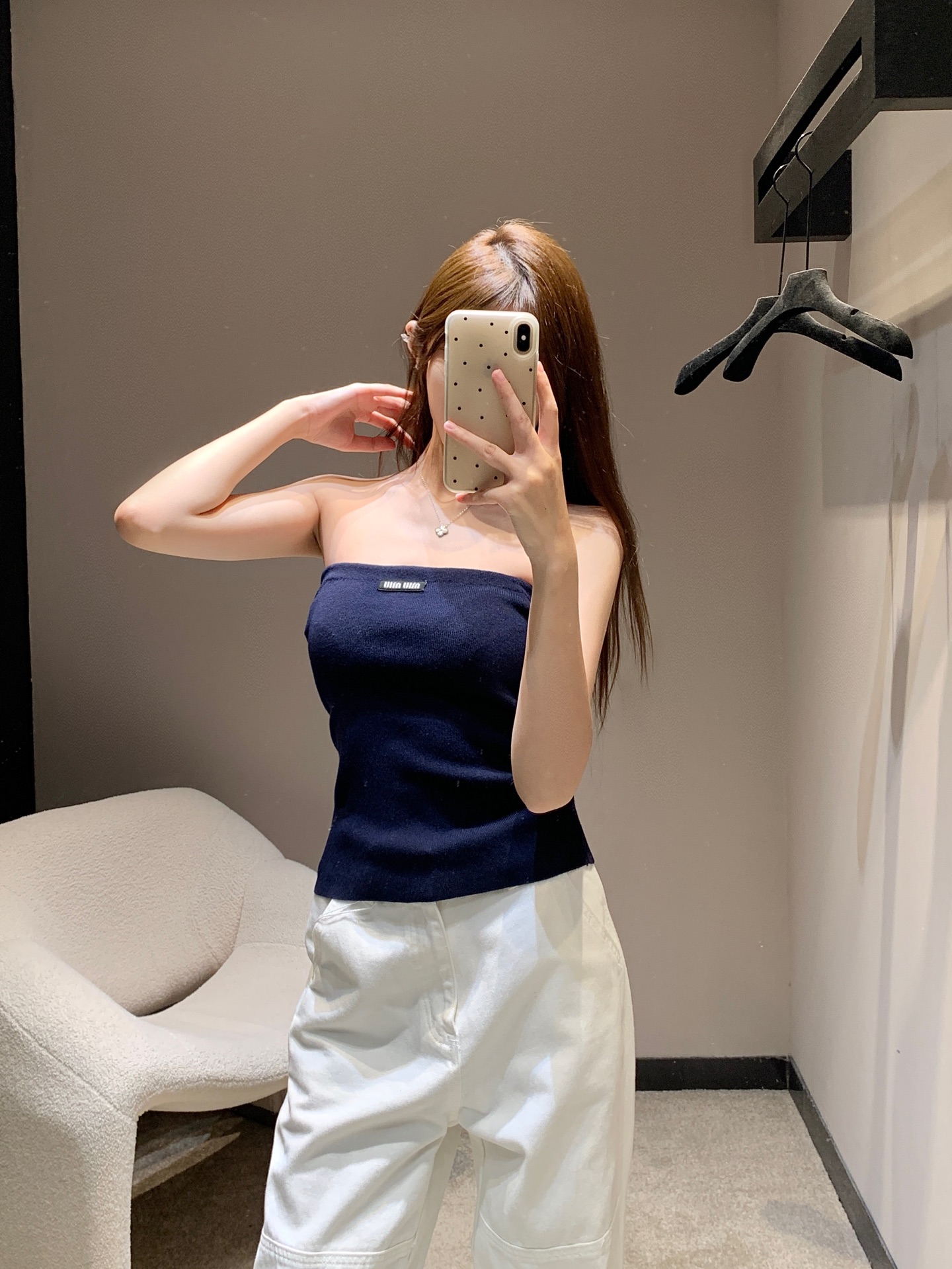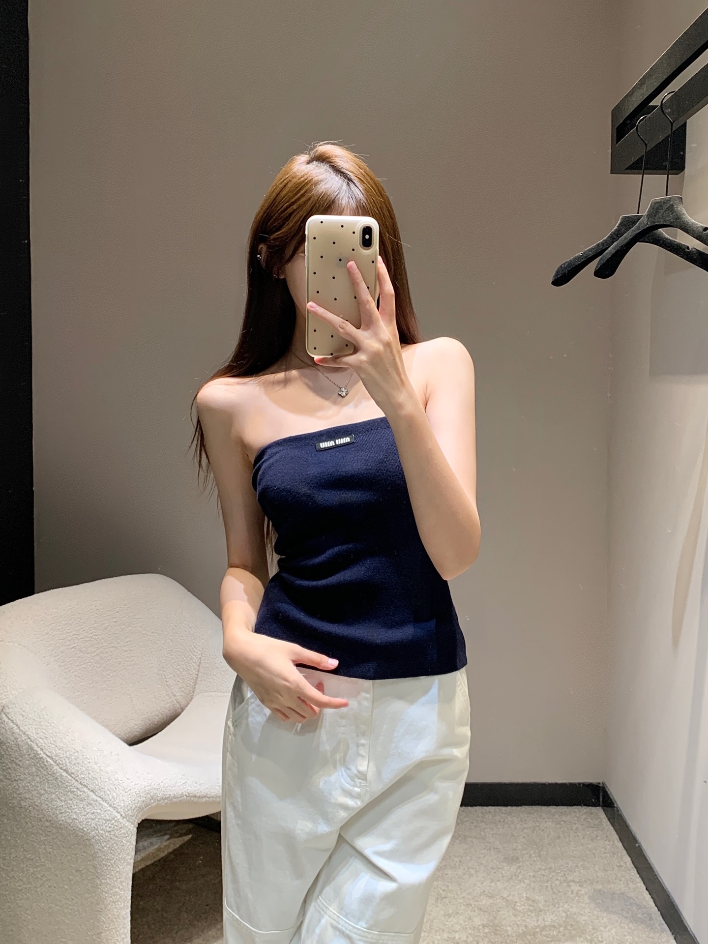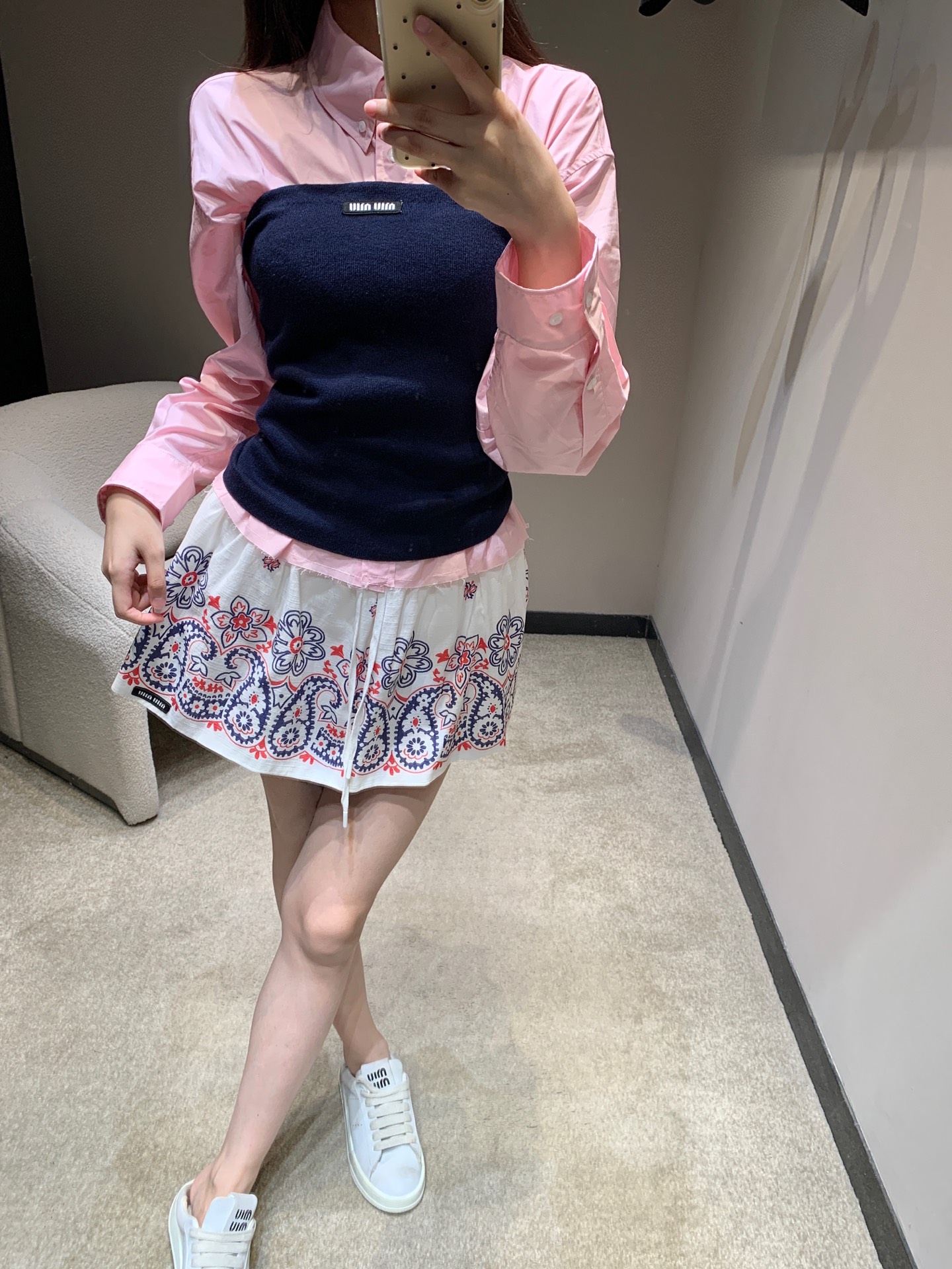 这款衣服是AAAAA 1:1 质量 (非常棒). 使用了和原版一模一样的材料. 商标部分也保持了和缪缪/Miu Miu一样. 图片拍摄是实物衣服拍摄, 您所收到的实物保证和我们图片一模一样.