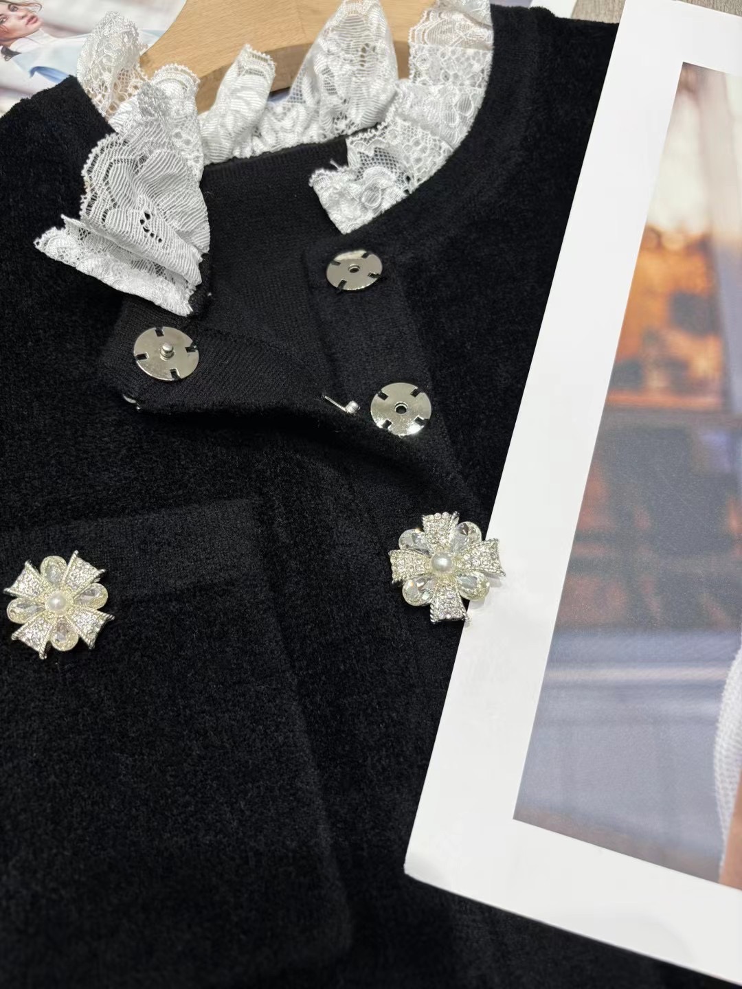 这款衣服是AAAAA 1:1 质量 (非常棒). 使用了和原版一模一样的材料. 商标部分也保持了和Self-Portrait一样. 图片拍摄是实物衣服拍摄, 您所收到的实物保证和我们图片一模一样.