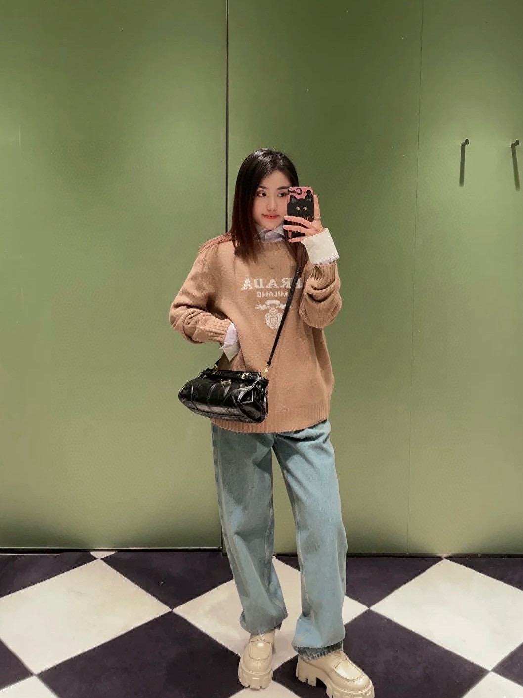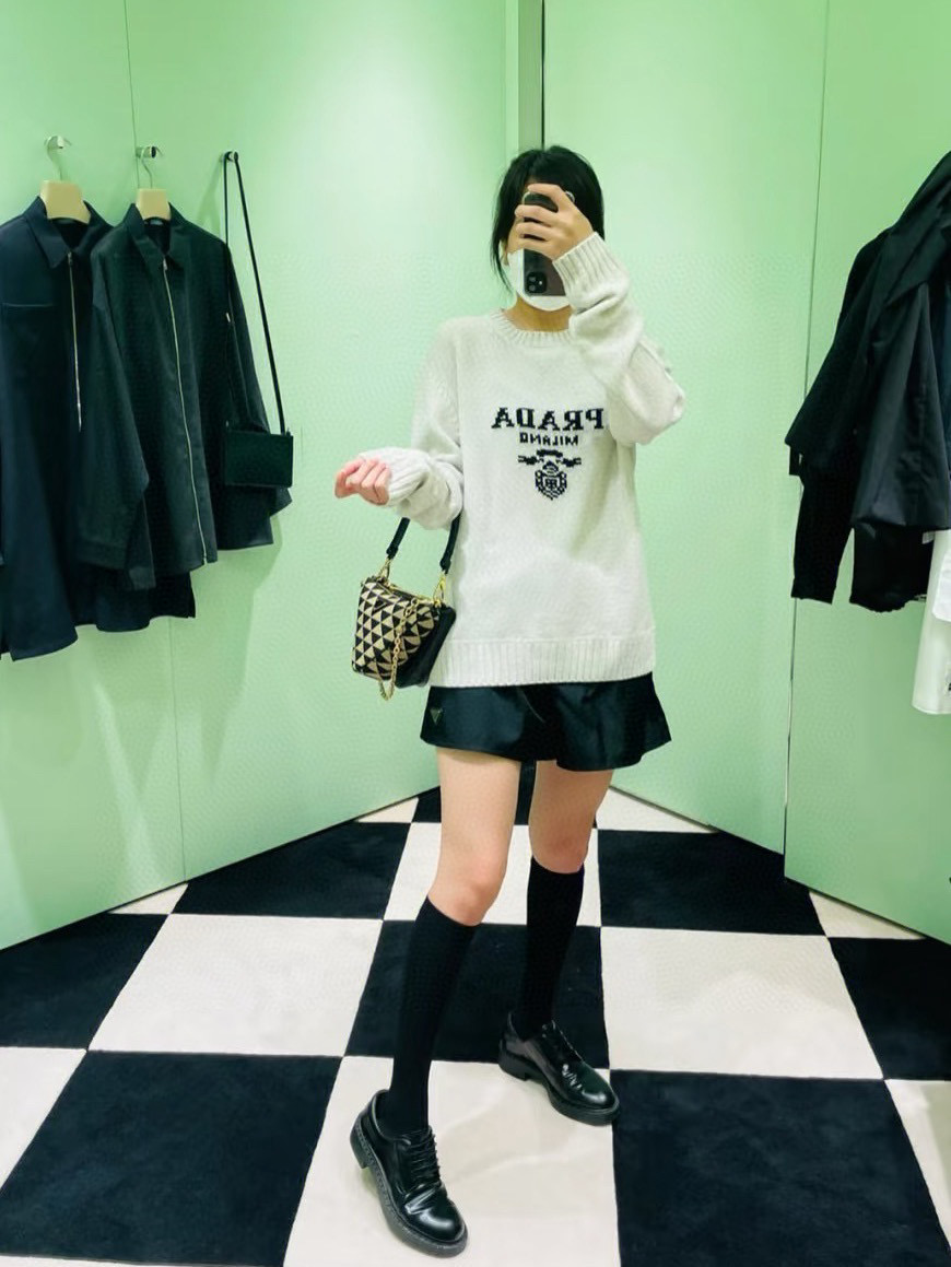 这款衣服是AAAAA 1:1 质量 (非常棒). 使用了和原版一模一样的材料. 商标部分也保持了和普拉达/Prada一样. 图片拍摄是实物衣服拍摄, 您所收到的实物保证和我们图片一模一样.