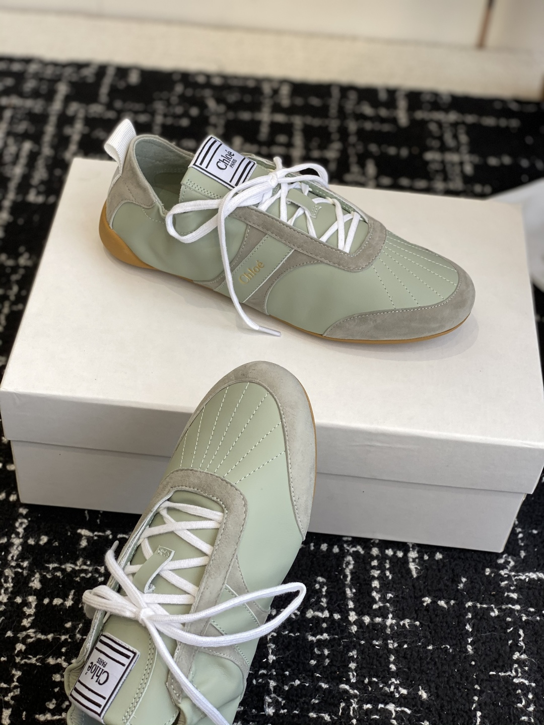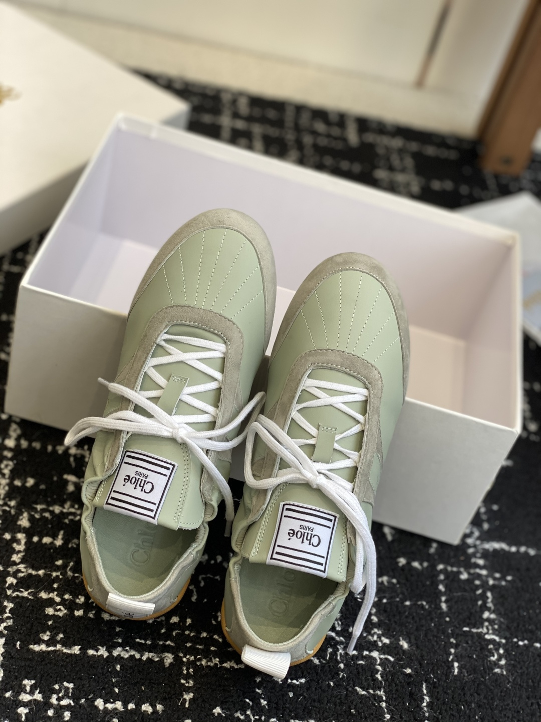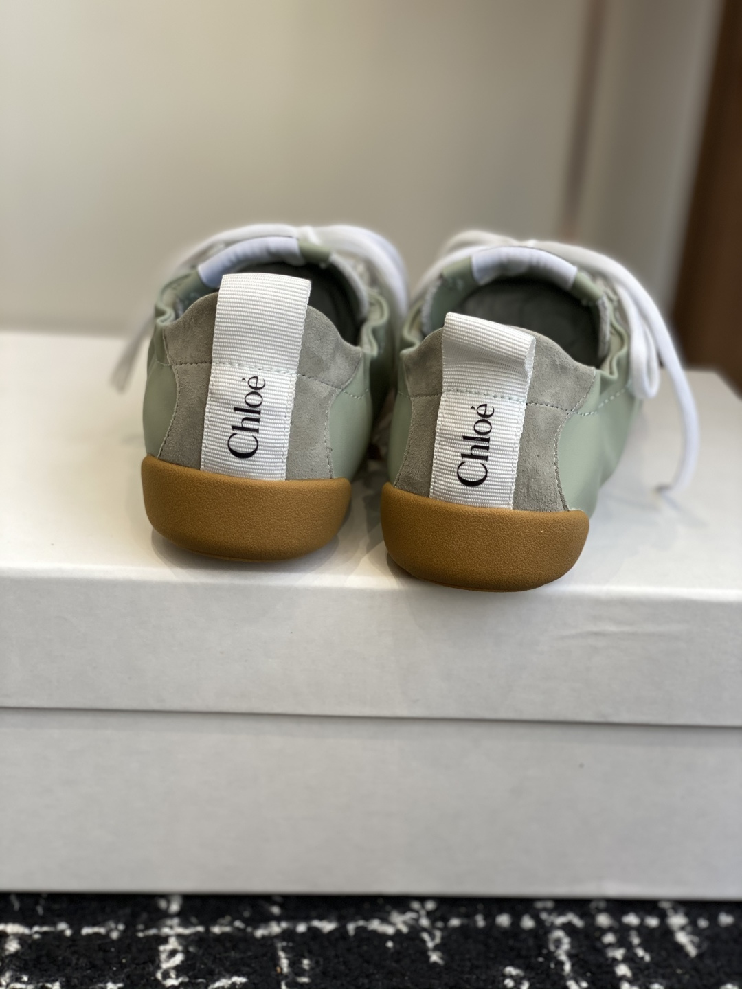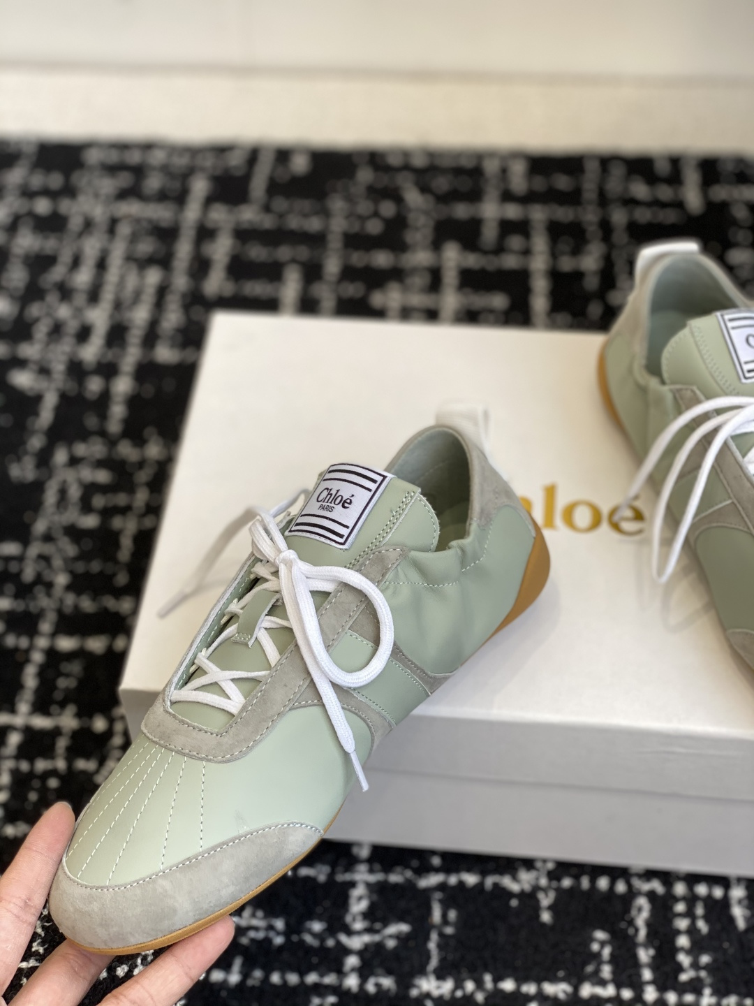 这款鞋子是AAAAA 1:1 质量 (非常棒). 使用了和原版一模一样的材料. 商标部分也保持了和克洛伊/Chloe一样. 图片拍摄是实物鞋子拍摄, 您所收到的实物保证和我们图片一模一样.