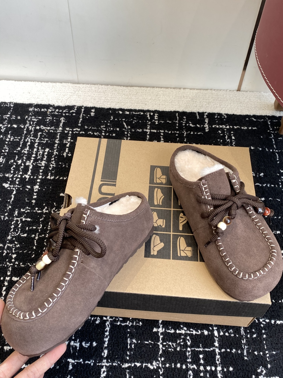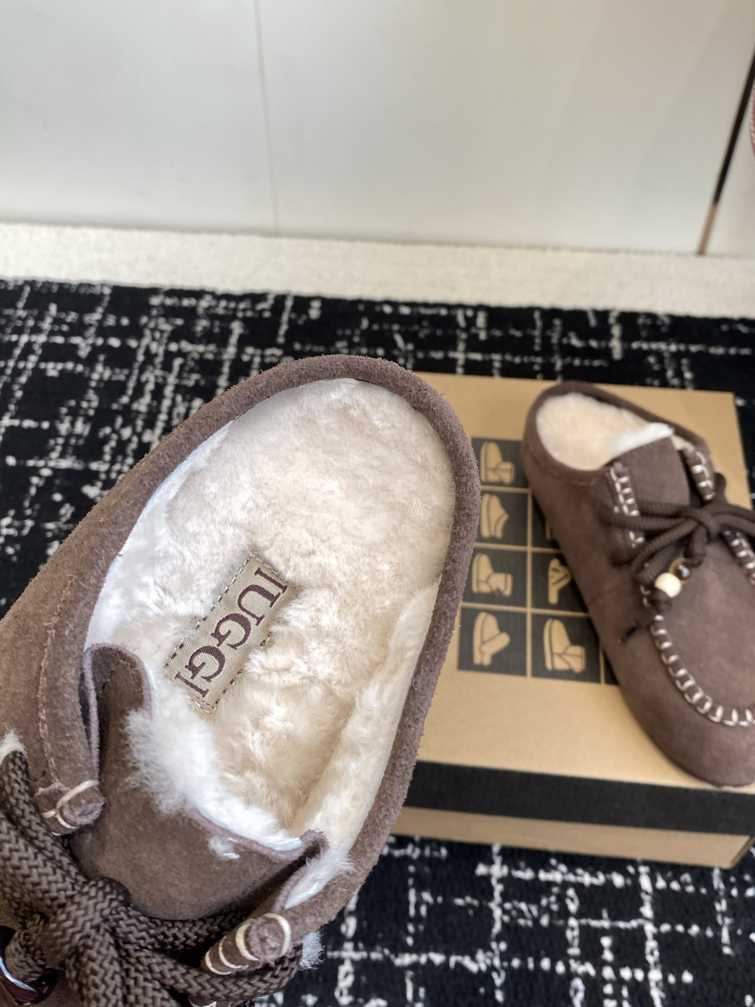 这款鞋子是AAAAA 1:1 质量 (非常棒). 使用了和原版一模一样的材料. 商标部分也保持了和UGG雪地靴一样. 图片拍摄是实物鞋子拍摄, 您所收到的实物保证和我们图片一模一样.